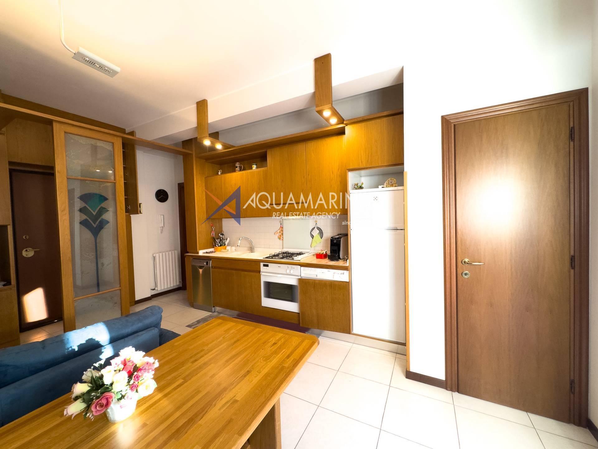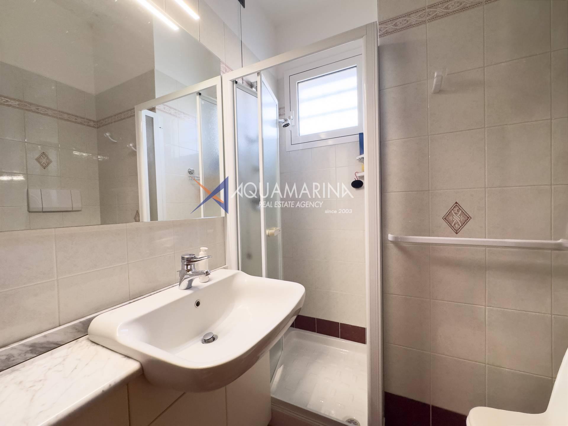 Situé au deuxième étage, l'appartement comprend une entrée directe sur un salon lumineux avec kitchenette, qui s'ouvre directement sur la terrasse, créant une continuité entre les espaces intérieurs et extérieurs, deux chambres, dont une avec salle de bains privative, et une deuxième salle de bains.