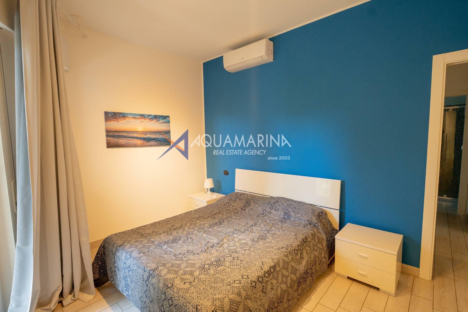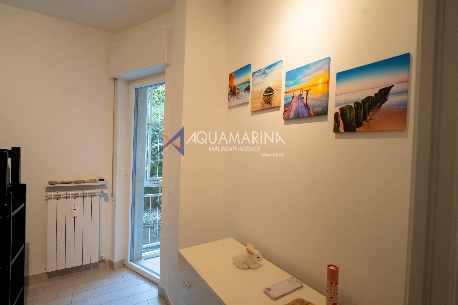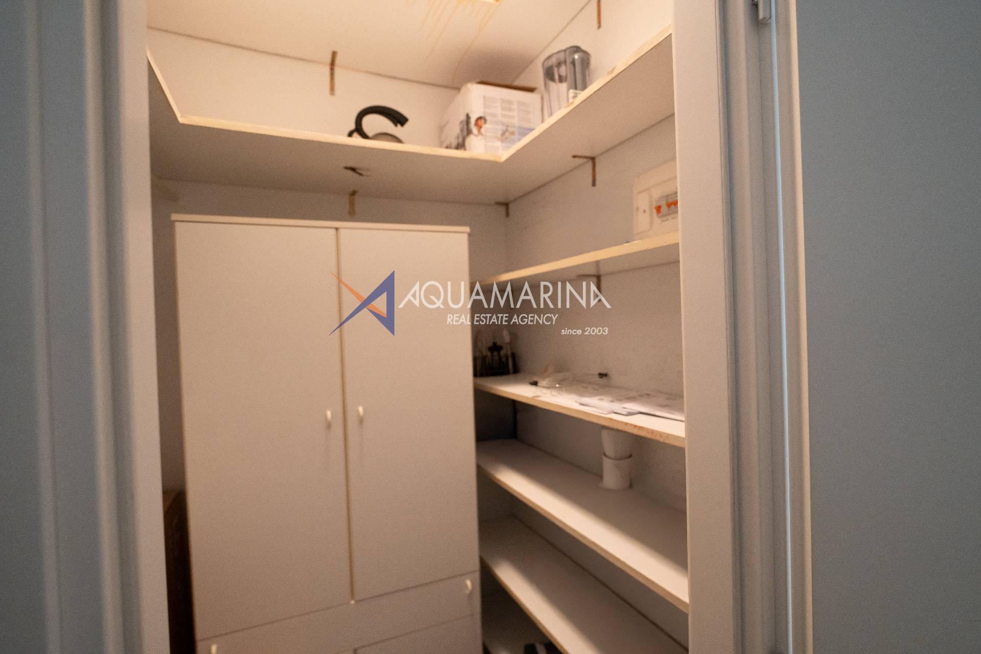 La propriété comprend un très grand séjour avec kitchenette, une chambre spacieuse, une chambre avec lits superposés, une salle de bains avec fenêtre, un débarras pratique, une petite terrasse idéale pour la lessive et une fantastique terrasse habitable avec vue sur la mer.