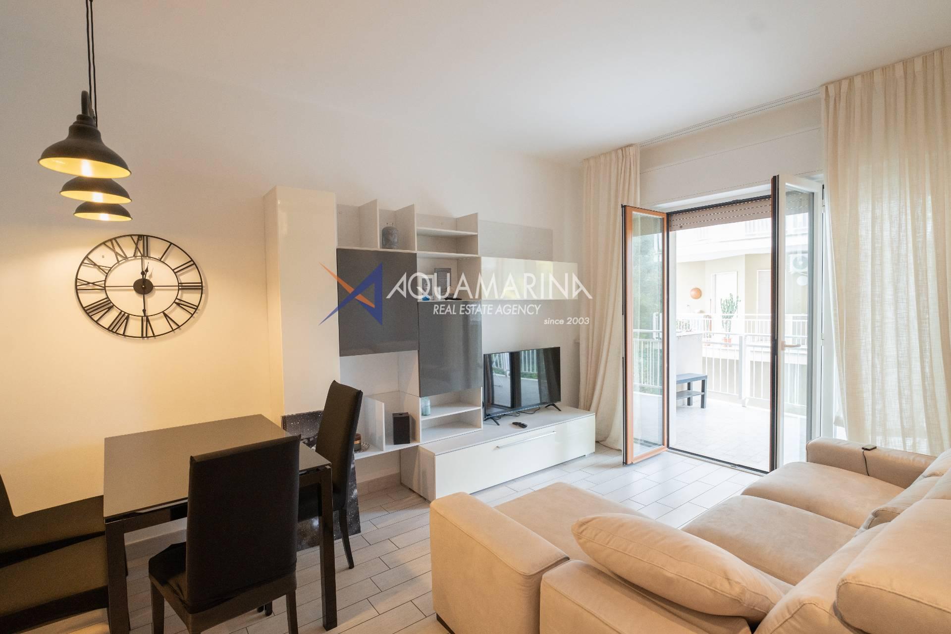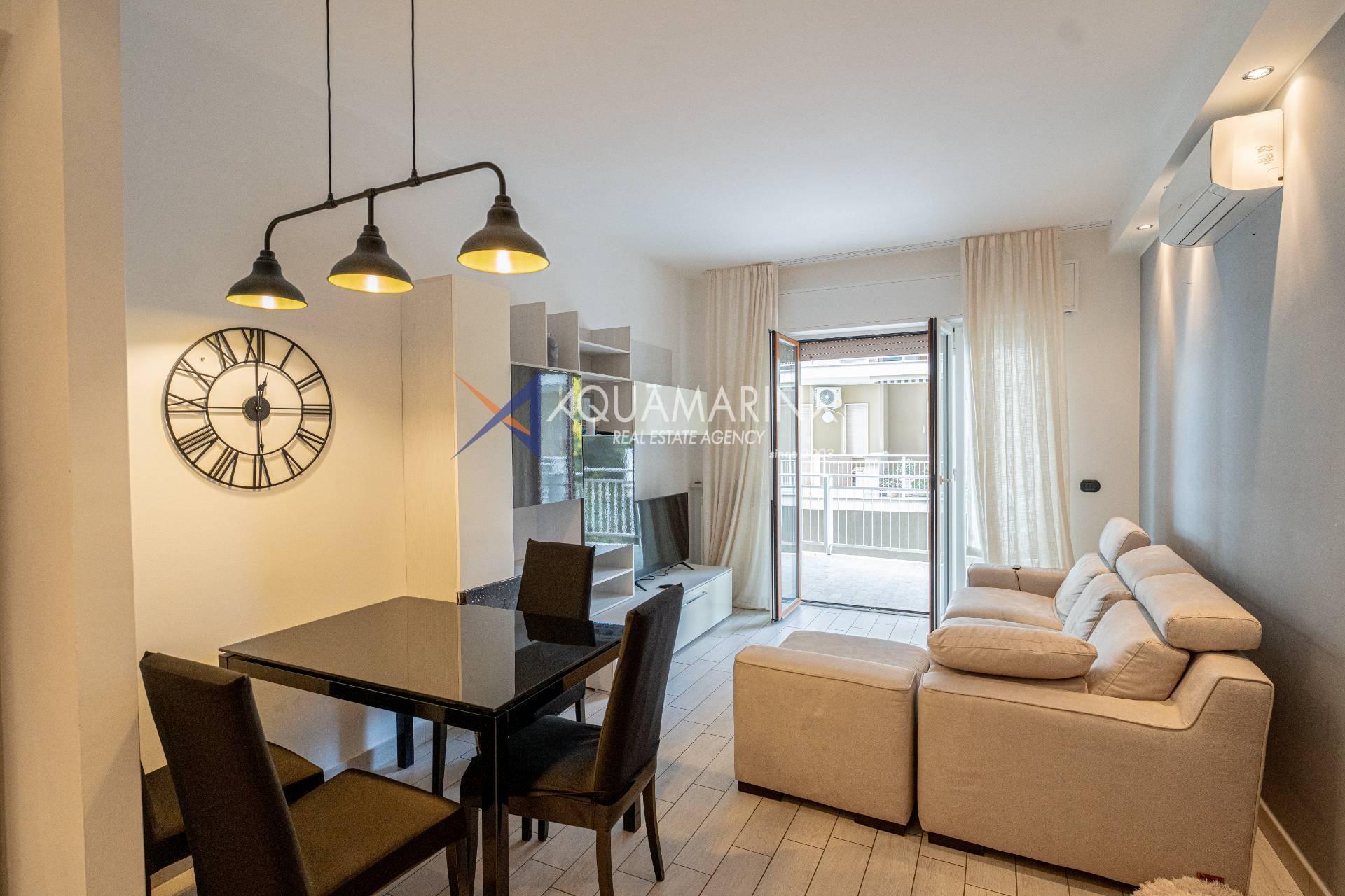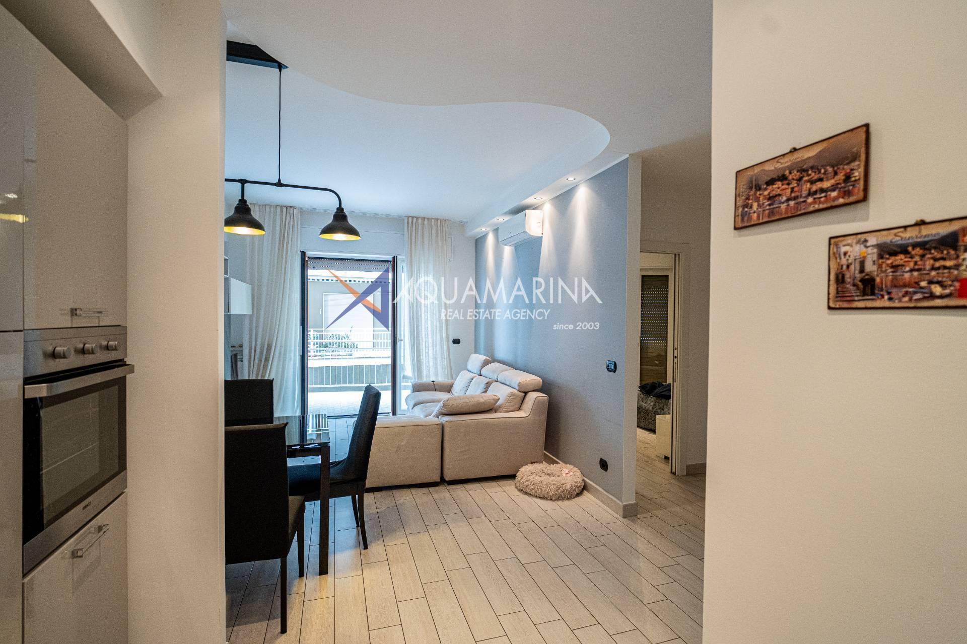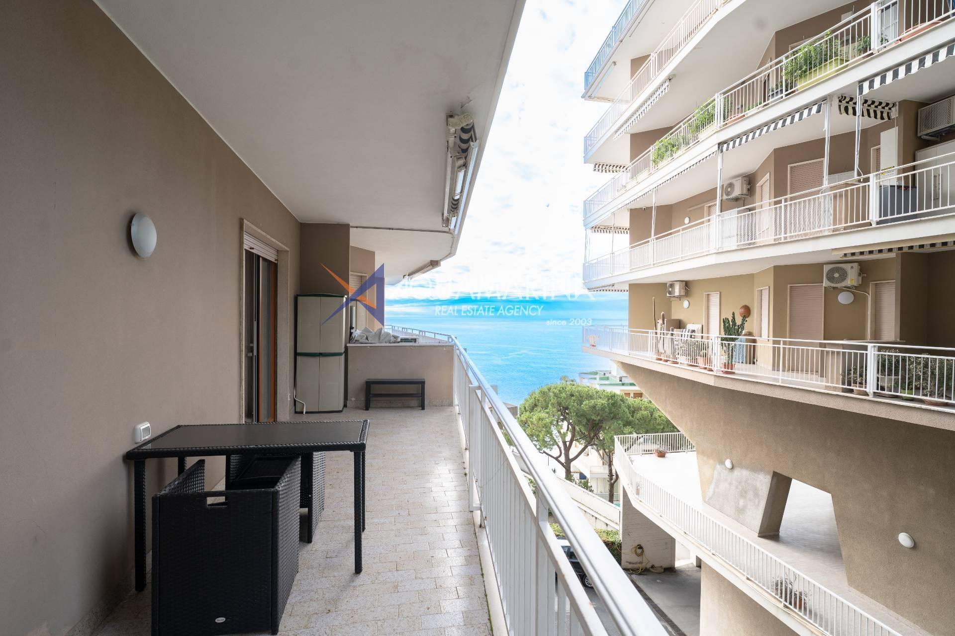 Appartement Ospedaletti avec vue sur mer à vendre, situé dans un quartier résidentiel calme et bien desservi.