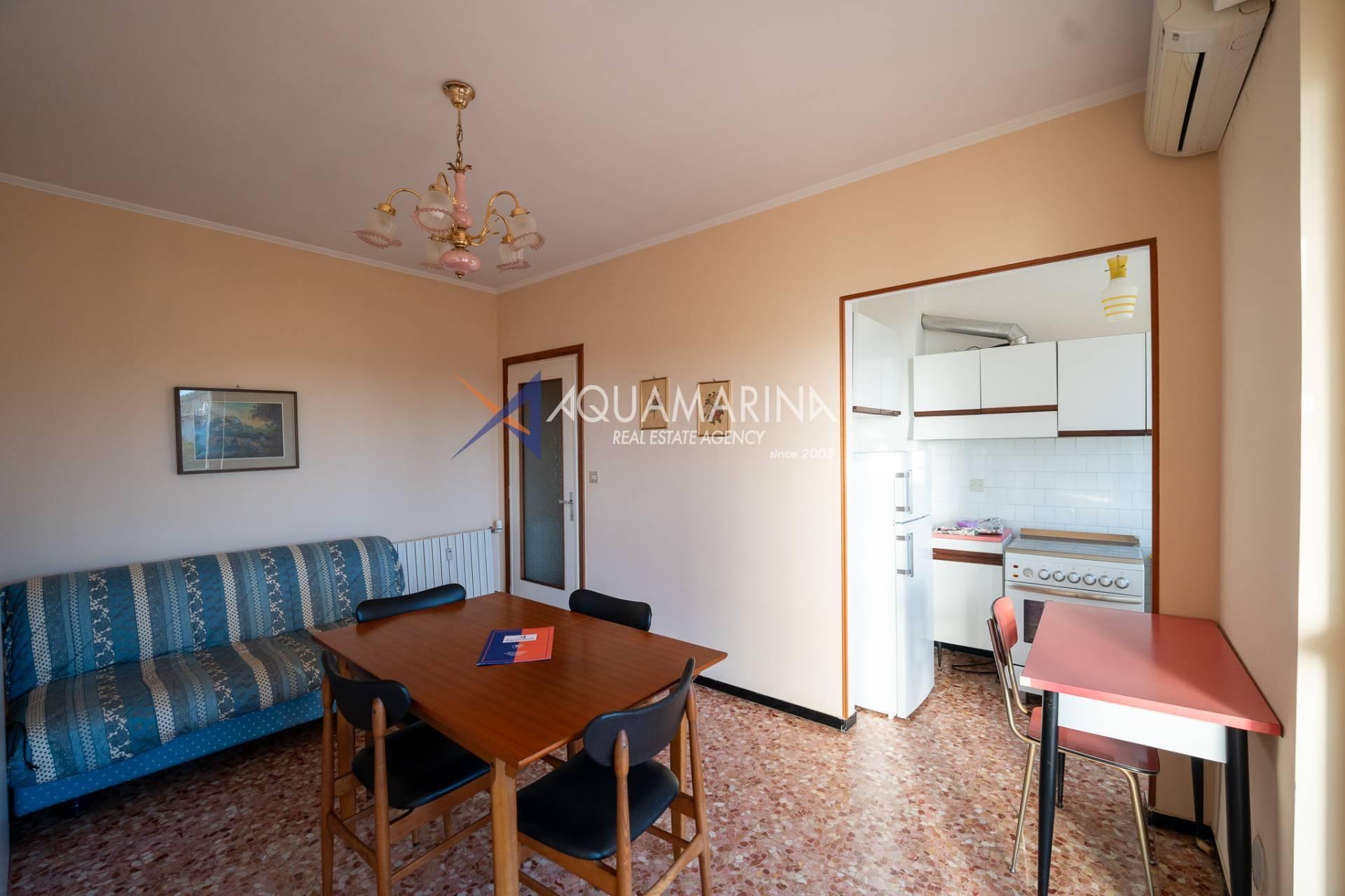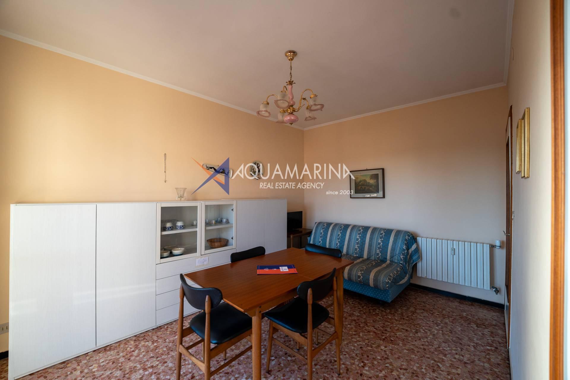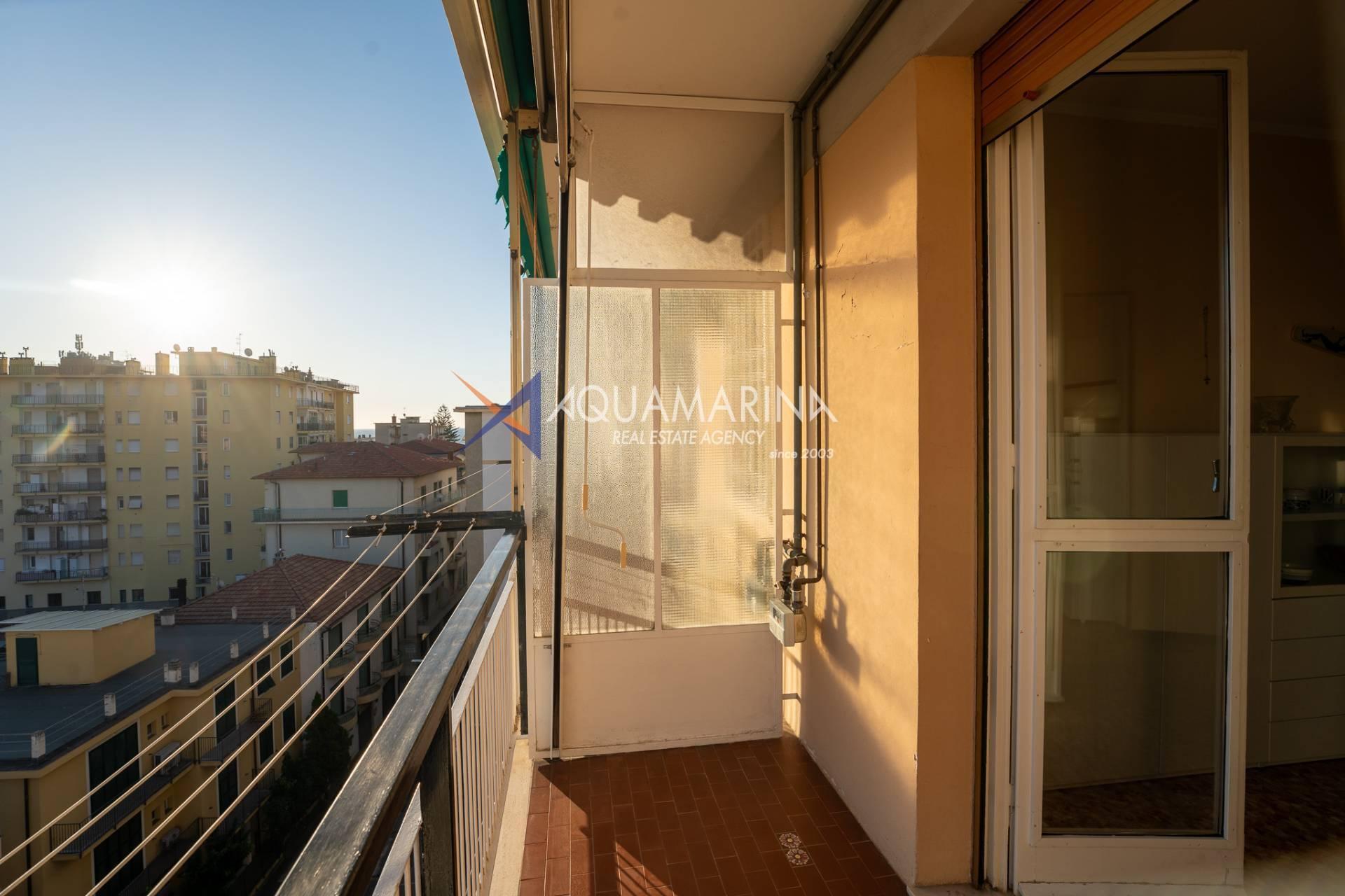 L'appartement est situé au sixième et dernier étage avec ascenseur, dans l'une des rues les plus centrales d'Arma di Taggia, à deux pas de la mer, et se compose comme suit :