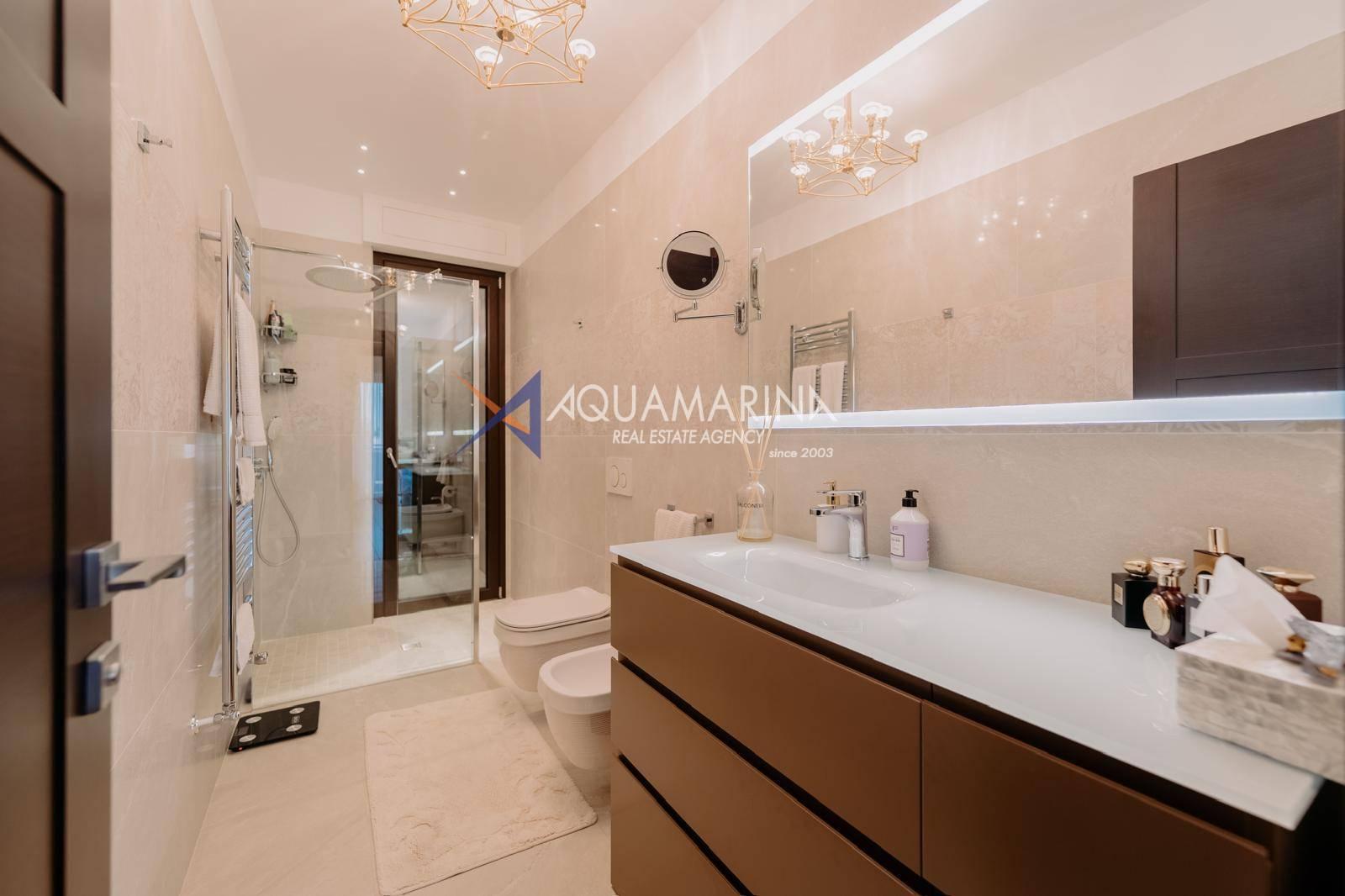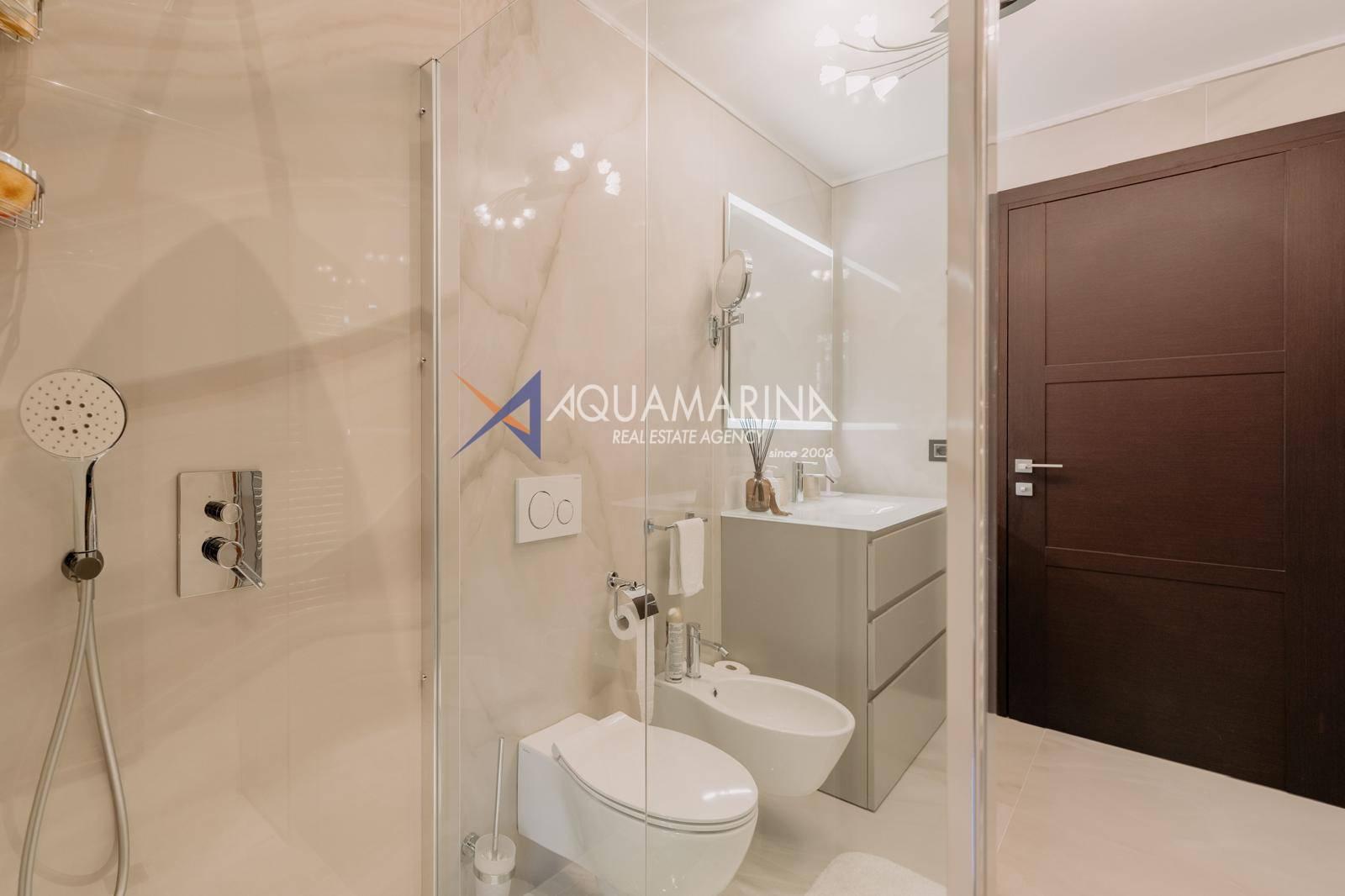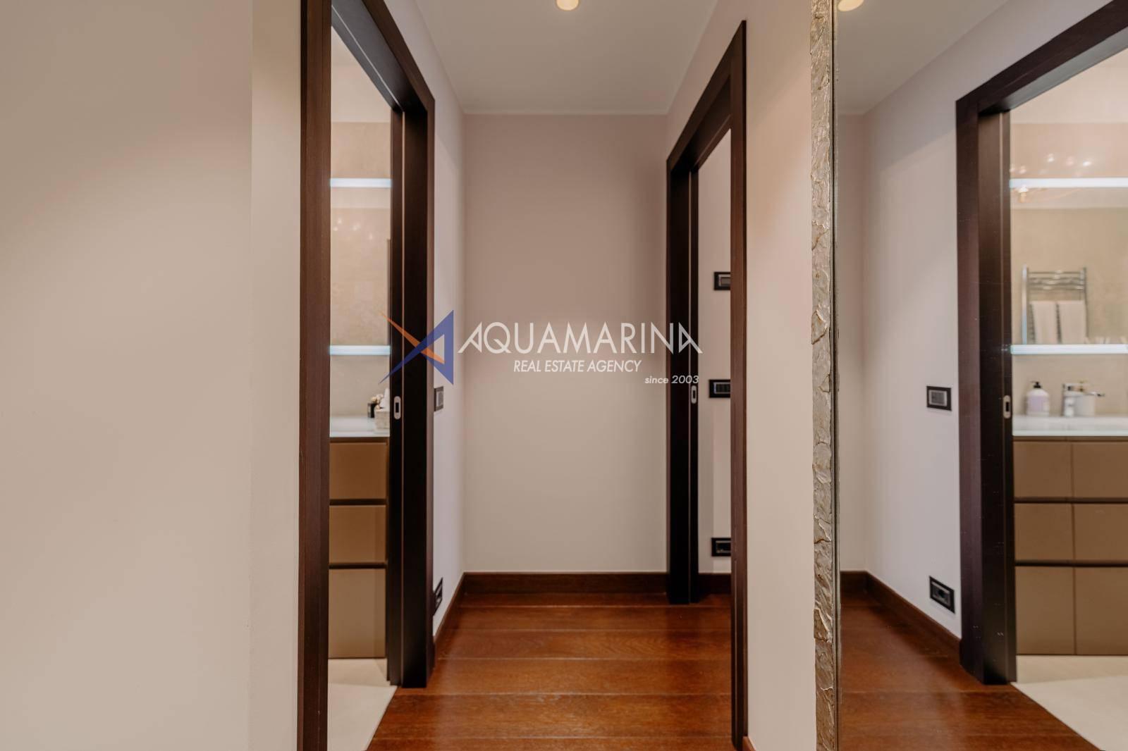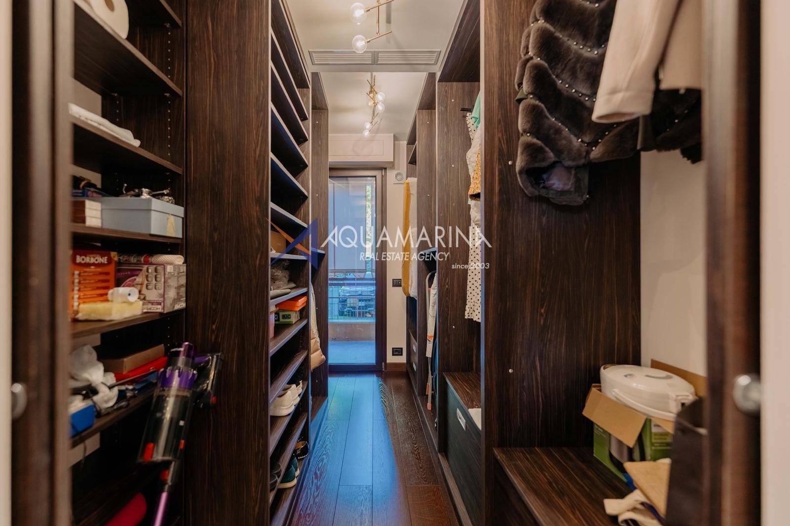 Le chauffage au sol et la climatisation indépendants garantissent calme et confort absolus. L'appartement est entièrement meublé et prêt à être habité.