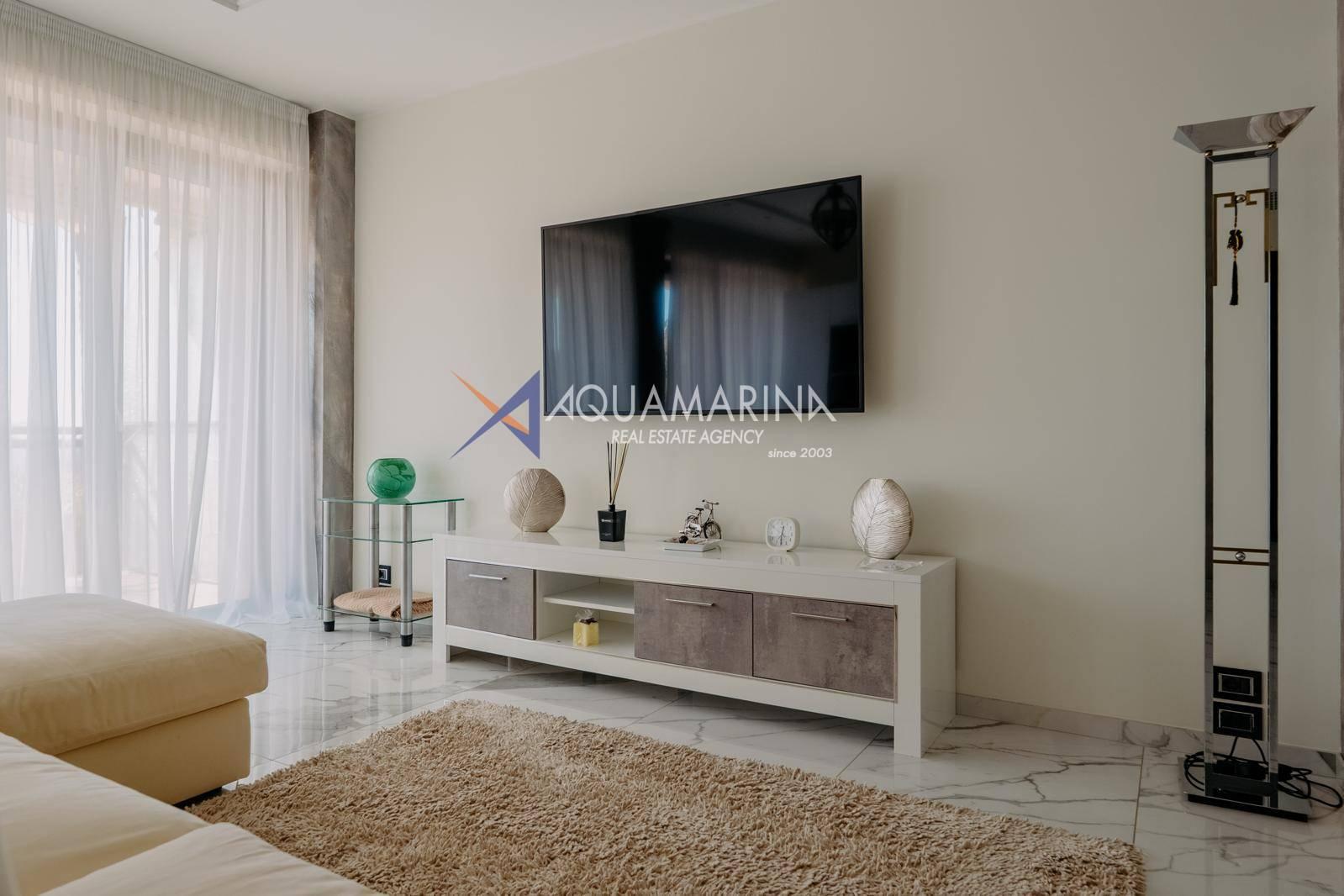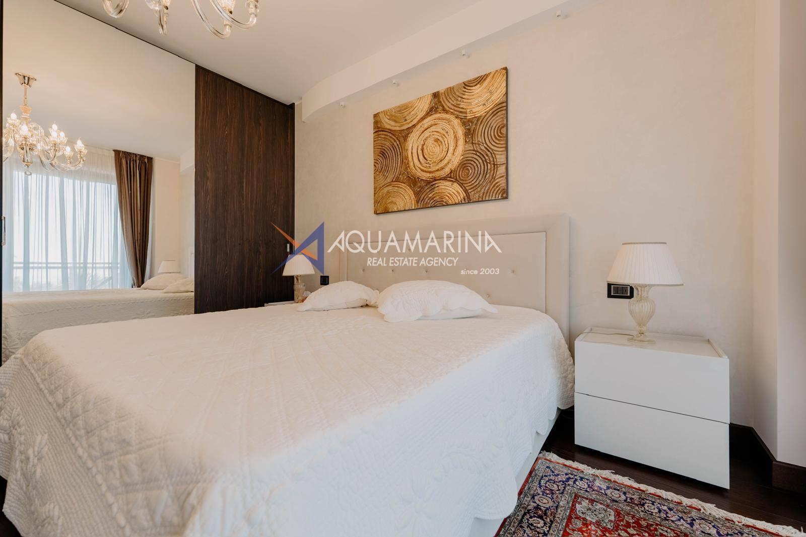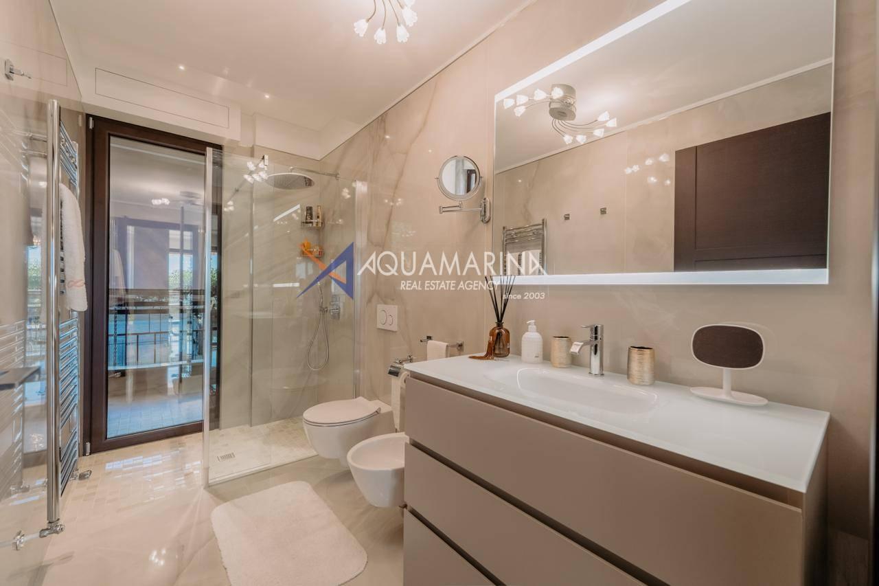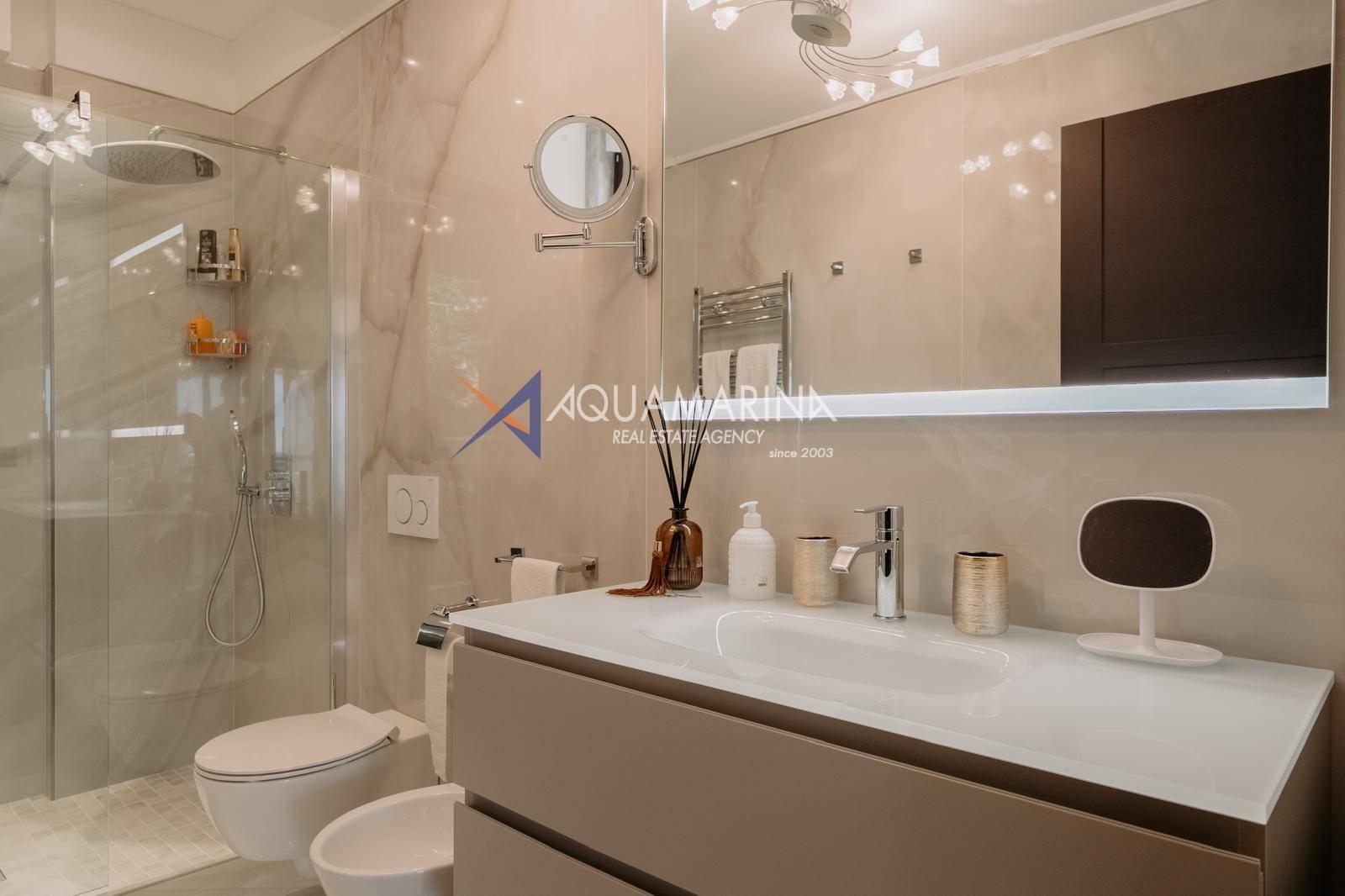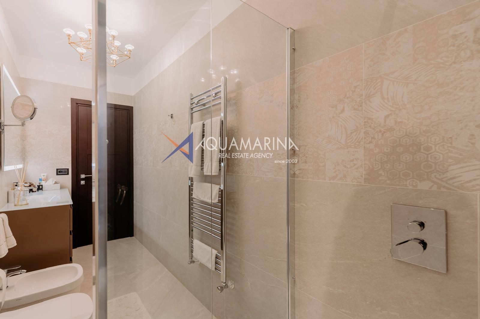Le chauffage au sol et la climatisation indépendants garantissent calme et confort absolus. L'appartement est entièrement meublé et prêt à être habité.