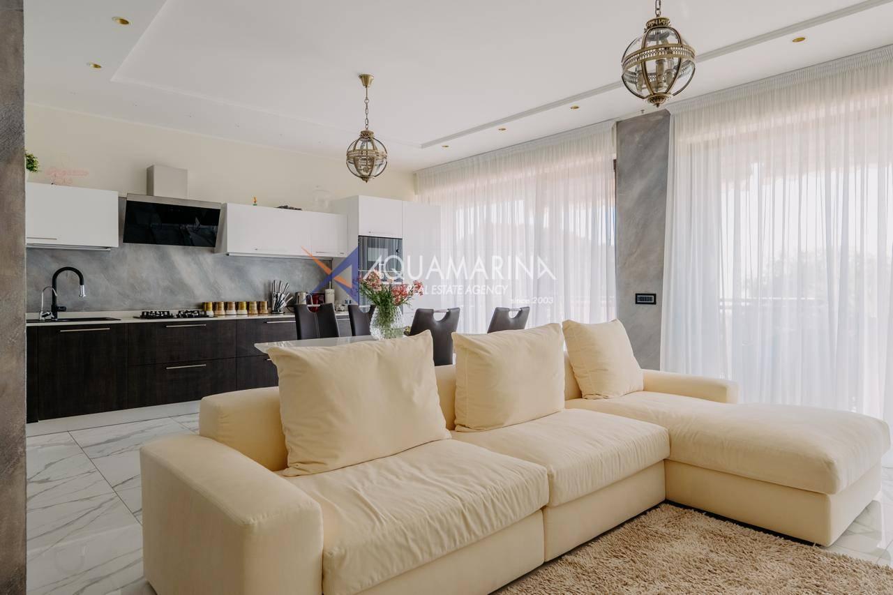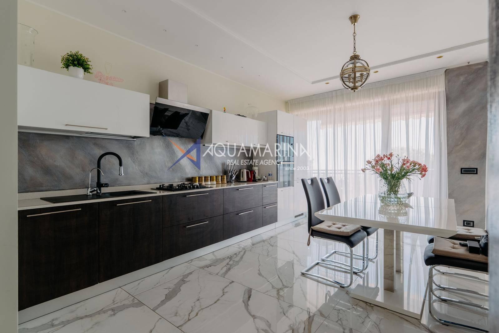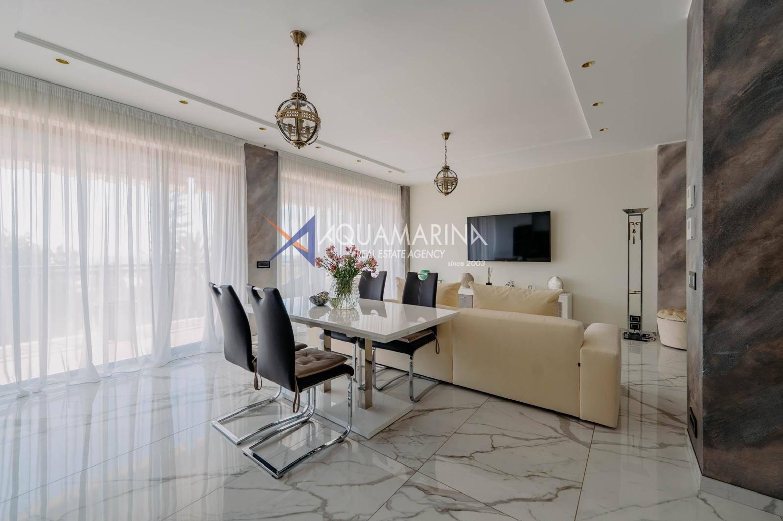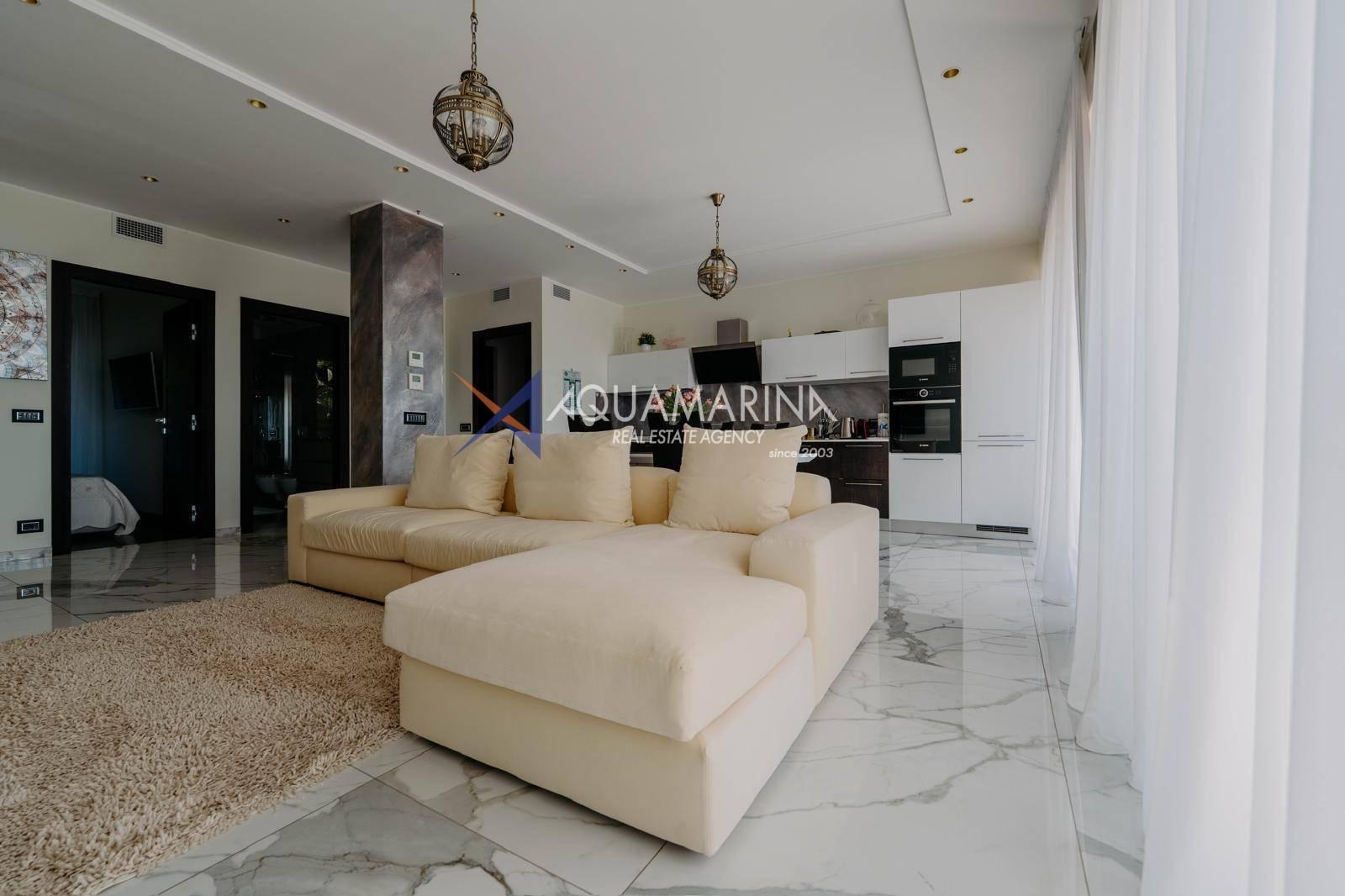 Le chauffage au sol et la climatisation indépendants garantissent calme et confort absolus. L'appartement est entièrement meublé et prêt à être habité.