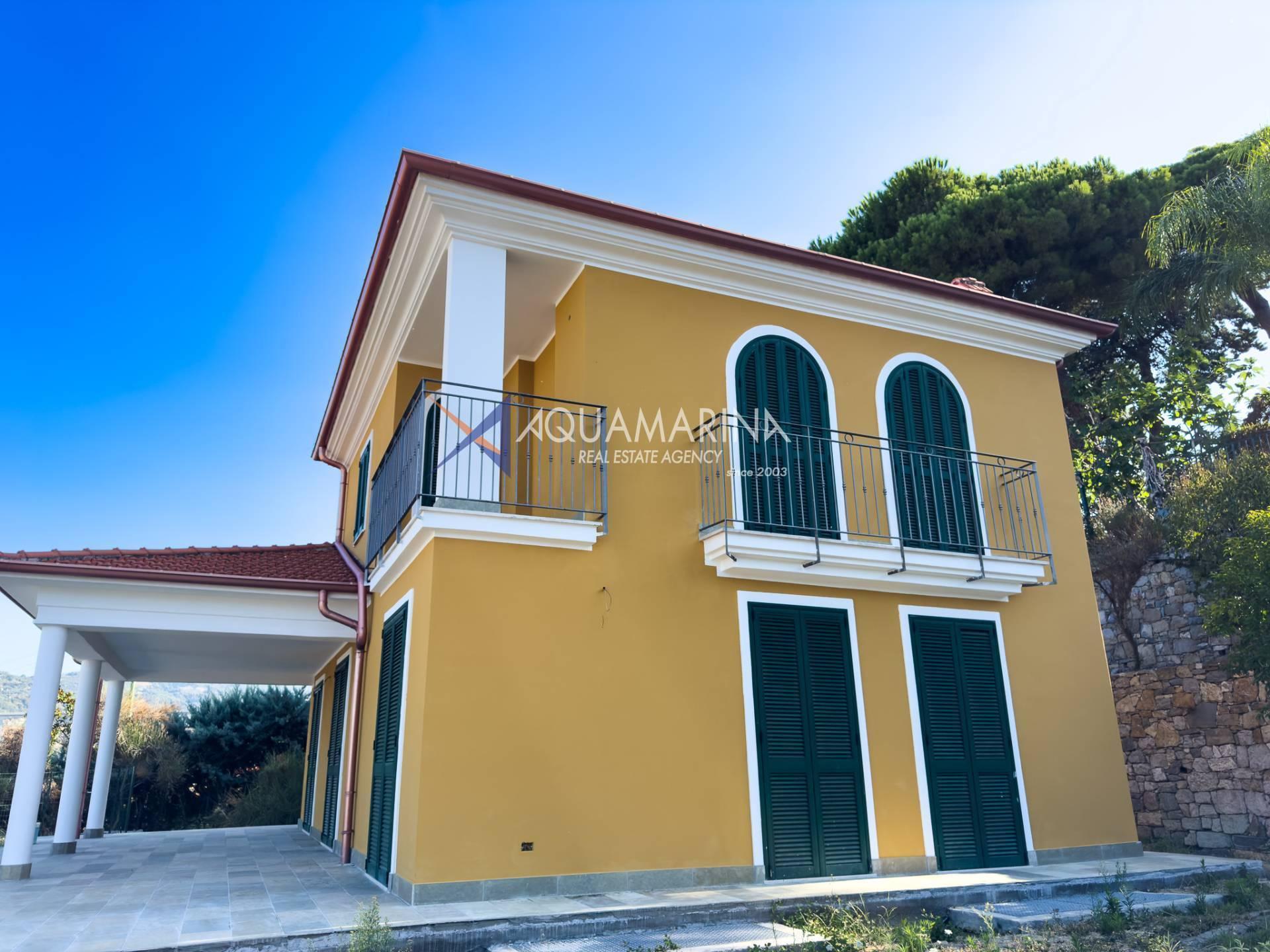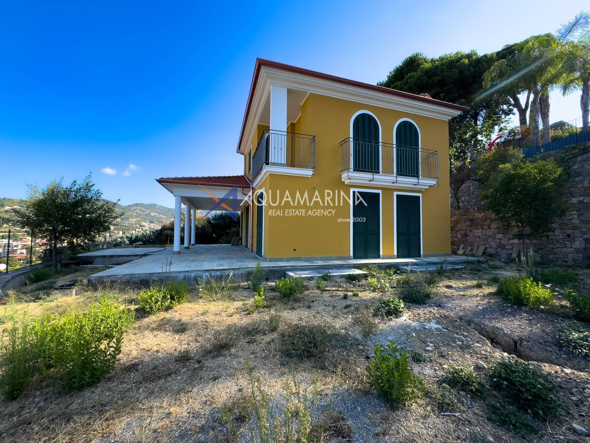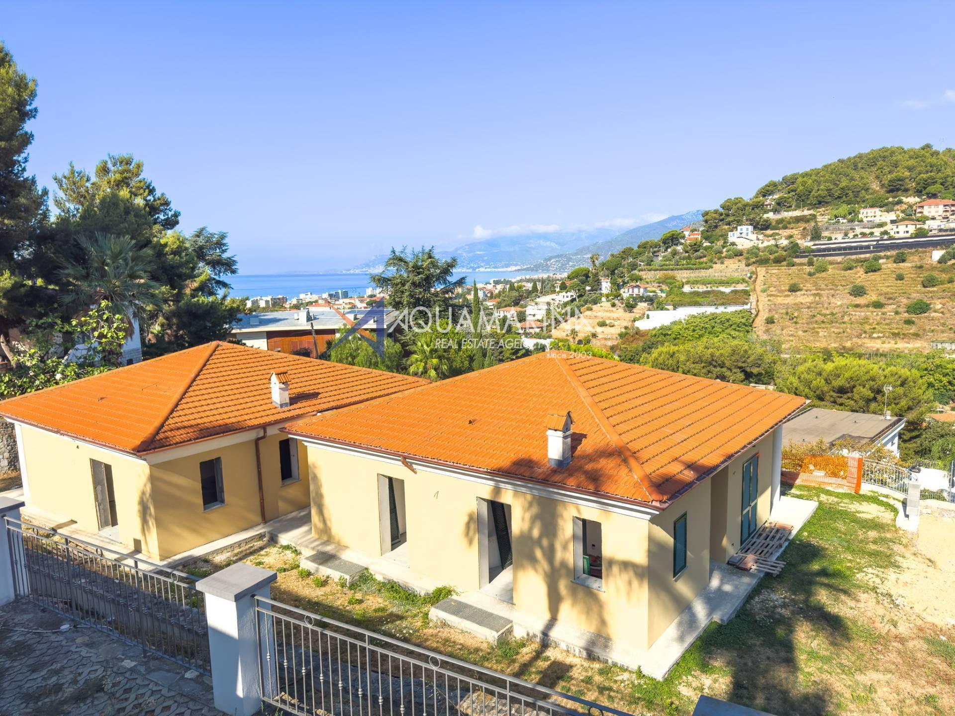 Sur la première colline panoramique de Bordighera, à quelques minutes à pied du centre et des plages, nous proposons à la vente cinq villas (une villa individuelle et deux villas jumelées) entourées de verdure avec une vue splendide sur la mer.