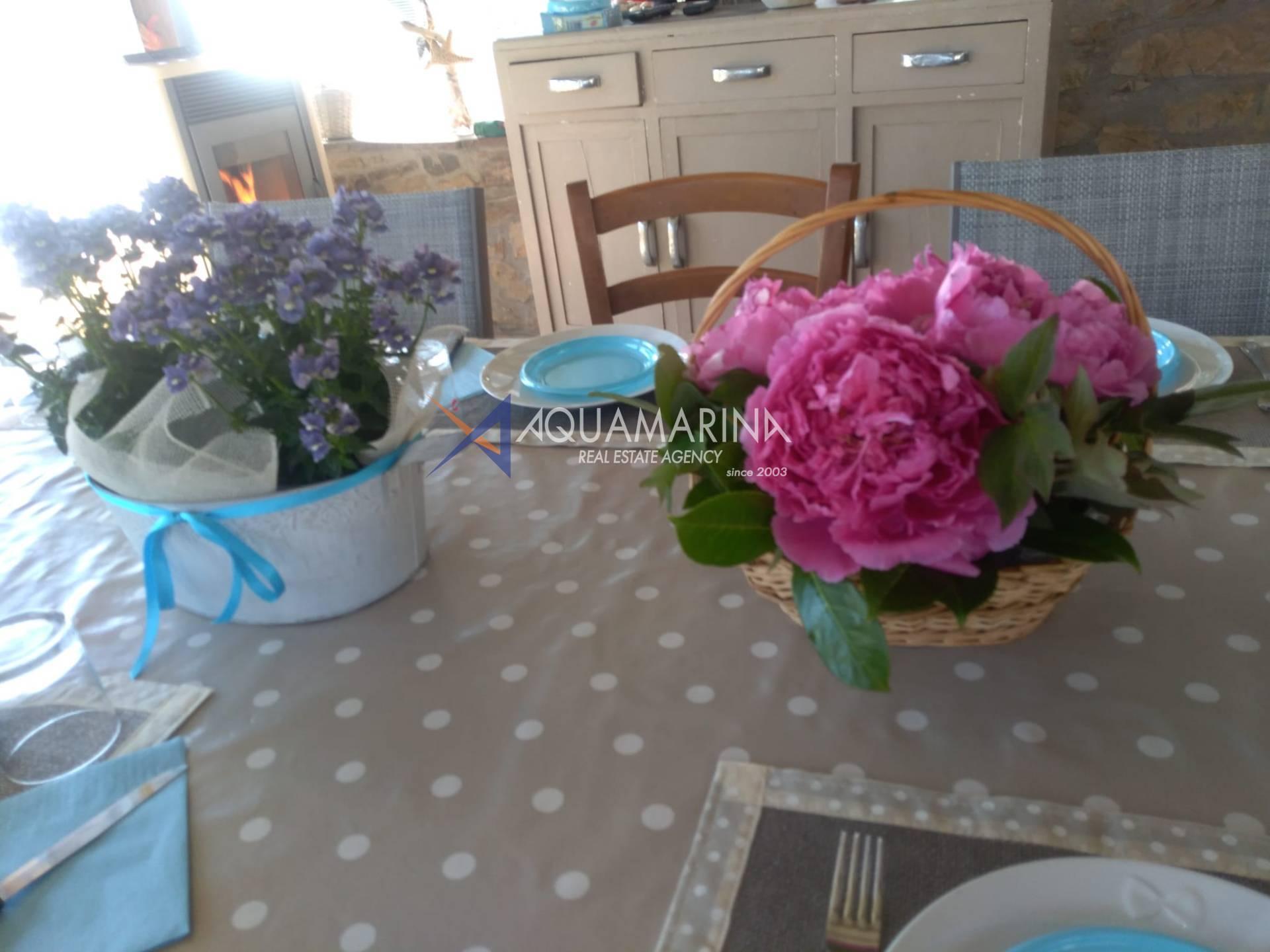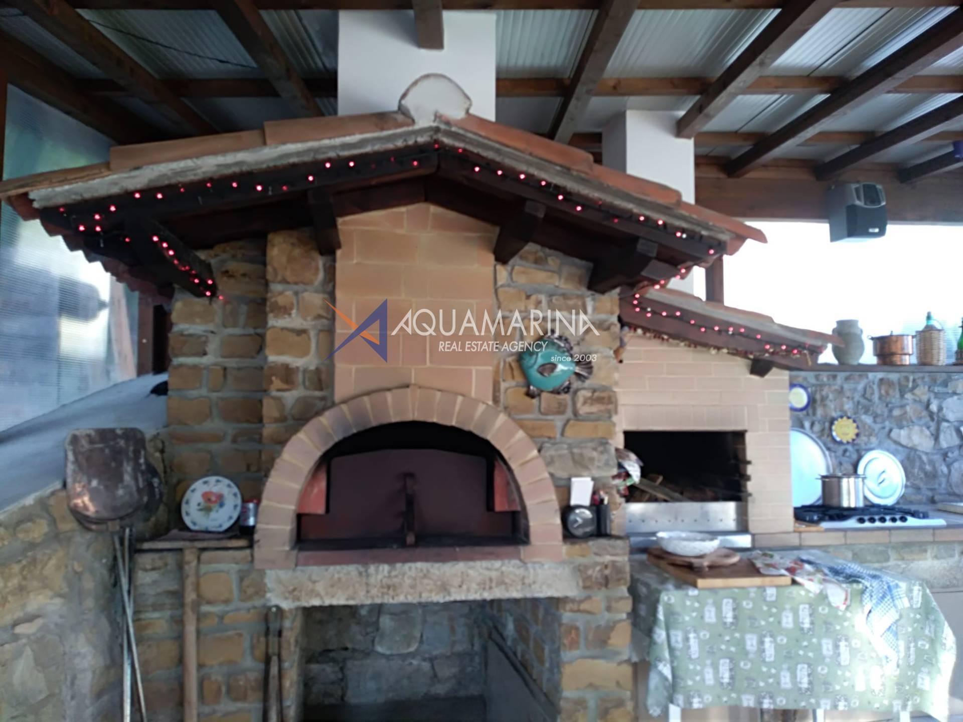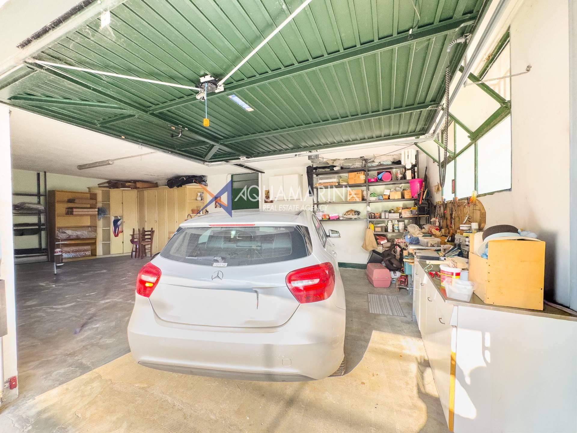 La propriété comprend une entrée, un séjour, une grande cuisine, une salle de bain avec douche, trois chambres, une seconde salle de bain avec baignoire et une terrasse panoramique. Un jardin privé d'environ 1 000 m² est agrémenté d'arbres fruitiers et d'un kiosque avec une cuisine d'été entièrement équipée et un four à bois. La propriété comprend également un grand garage d'environ 60 m² et une cave.