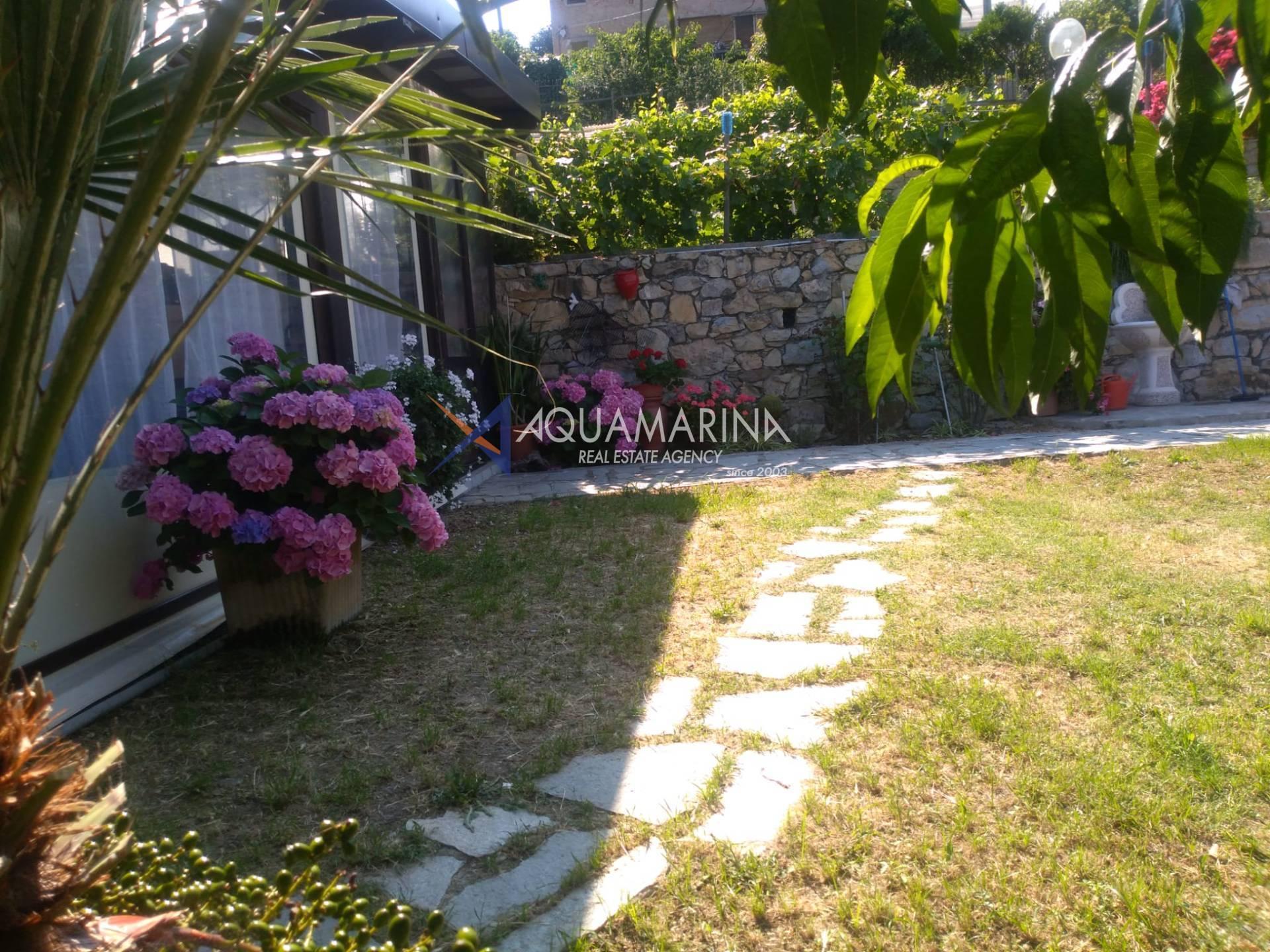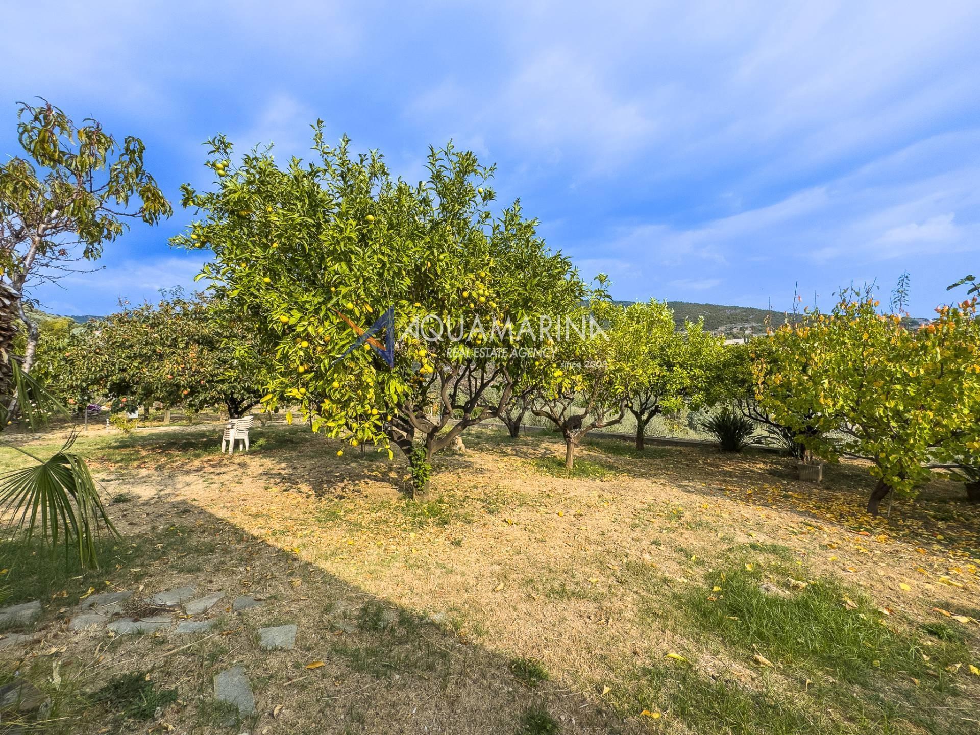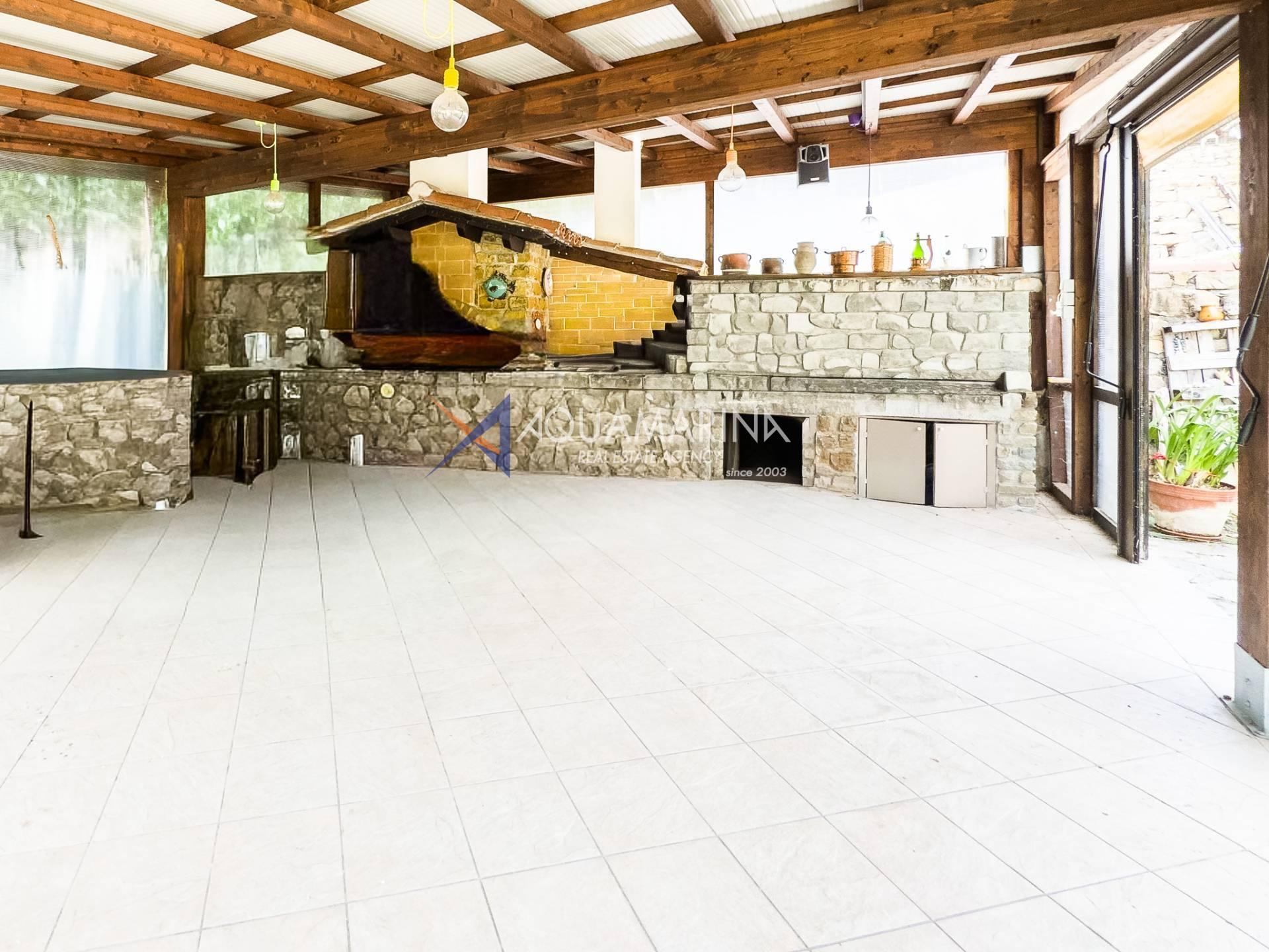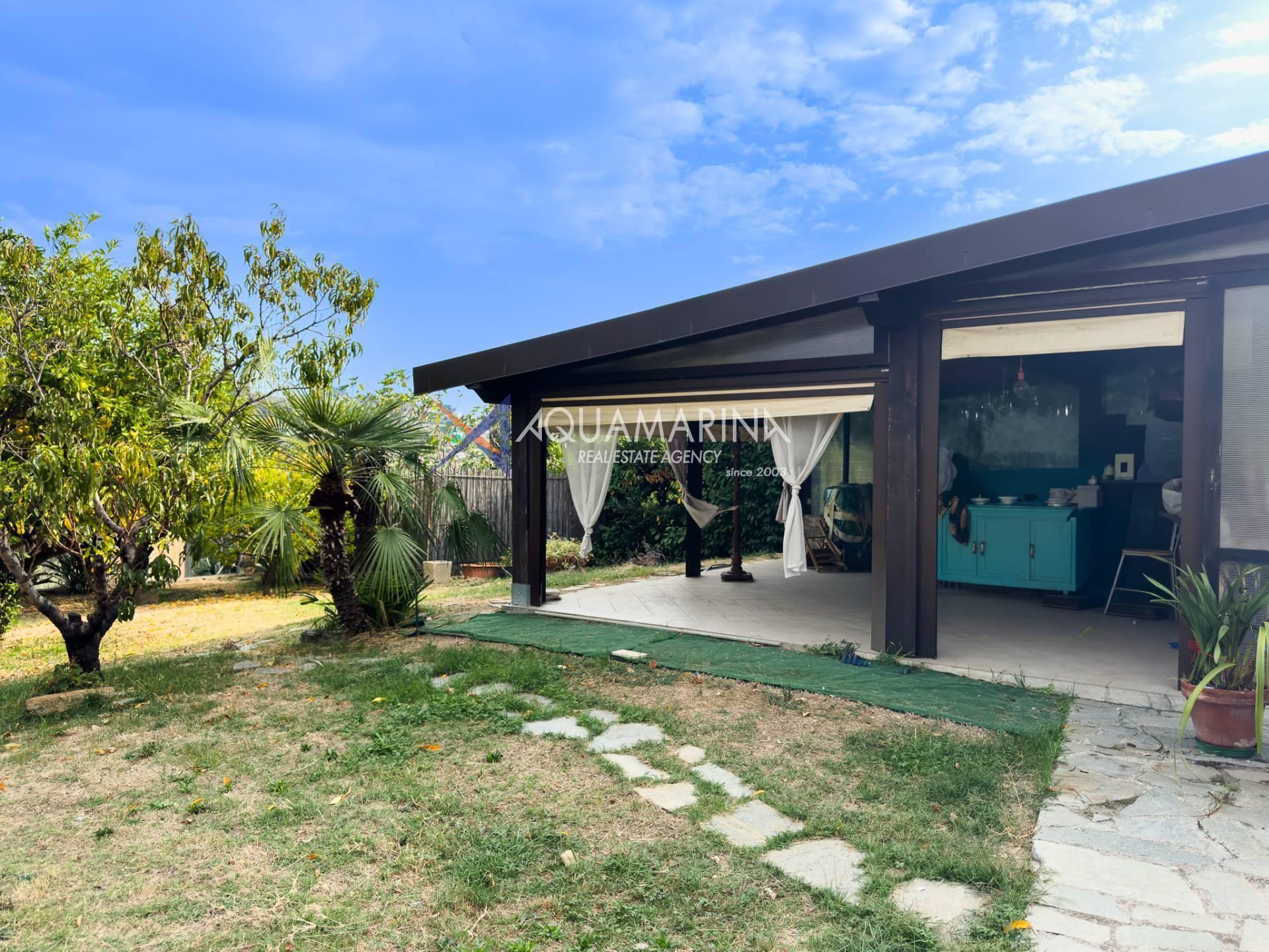 La propriété comprend une entrée, un séjour, une grande cuisine, une salle de bain avec douche, trois chambres, une seconde salle de bain avec baignoire et une terrasse panoramique. Un jardin privé d'environ 1 000 m² est agrémenté d'arbres fruitiers et d'un kiosque avec une cuisine d'été entièrement équipée et un four à bois. La propriété comprend également un grand garage d'environ 60 m² et une cave.