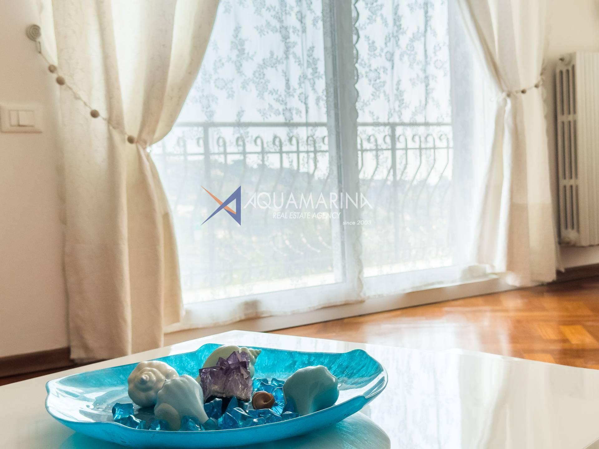 L'appartement est situé au deuxième et dernier étage et offre environ 138 mètres carrés avec une terrasse ouverte et une vue panoramique sur la mer, les montagnes et les environs.
