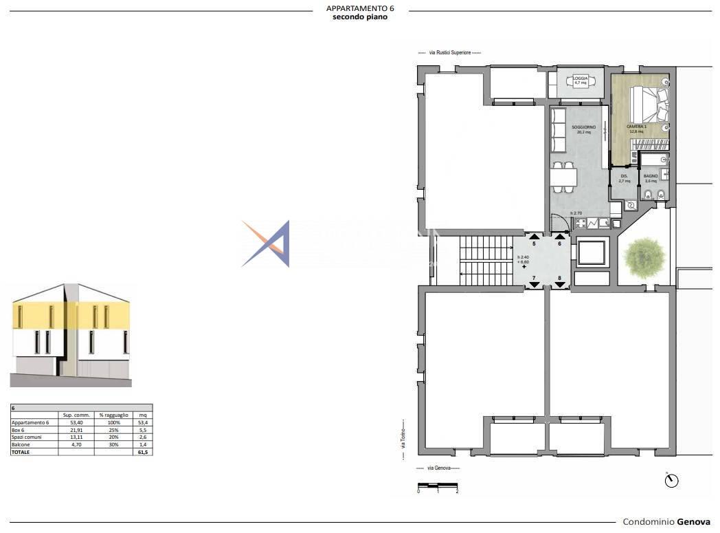 La copropriété "Genova" est également enrichie d'un système photovoltaïque, qui assure l'indépendance énergétique des espaces communs, y compris l'ascenseur, réduisant ainsi la consommation d'énergie et les coûts au minimum.
