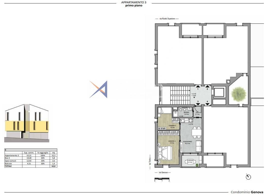 La copropriété "Genova" est également enrichie d'un système photovoltaïque, qui assure l'indépendance énergétique des espaces communs, y compris l'ascenseur, réduisant ainsi la consommation d'énergie et les coûts au minimum.