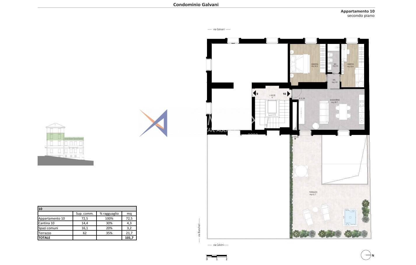 De plus, la copropriété « Galvani » est équipée de panneaux photovoltaïques, qui assurent l'indépendance énergétique des parties communes, y compris l'ascenseur et les parties communes, réduisant ainsi les coûts de gestion et augmentant la valeur de la propriété.