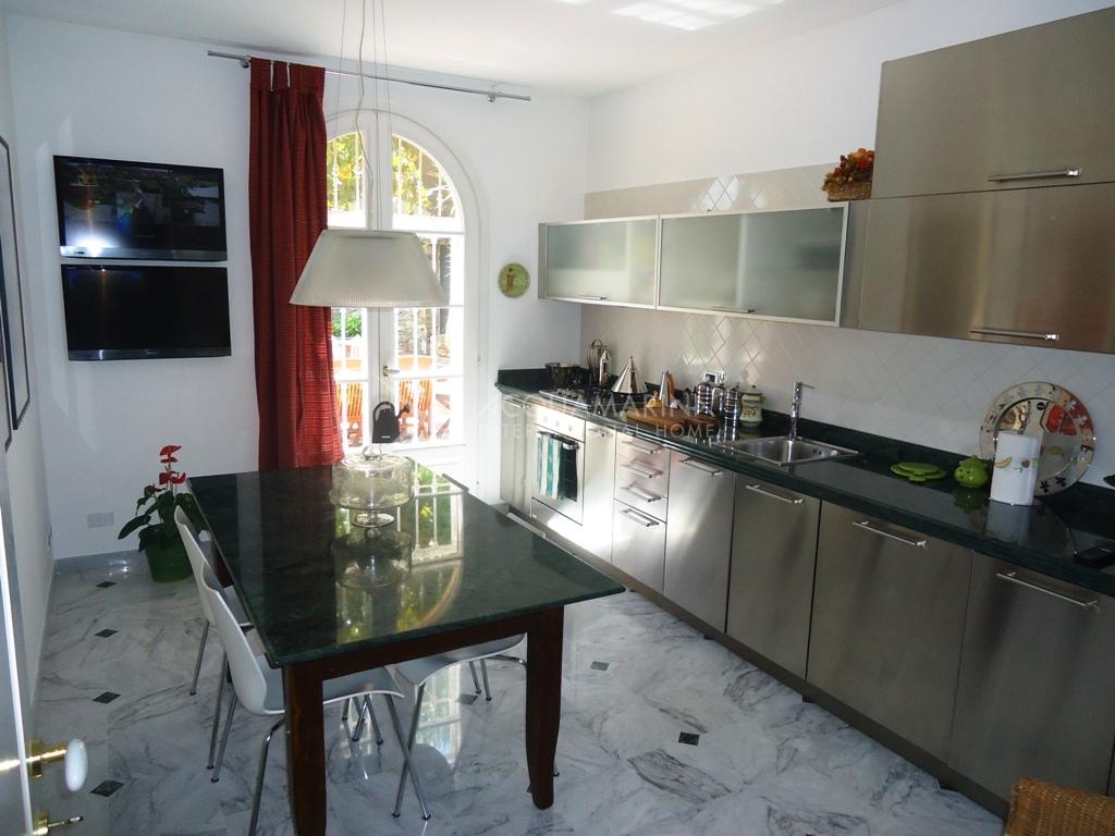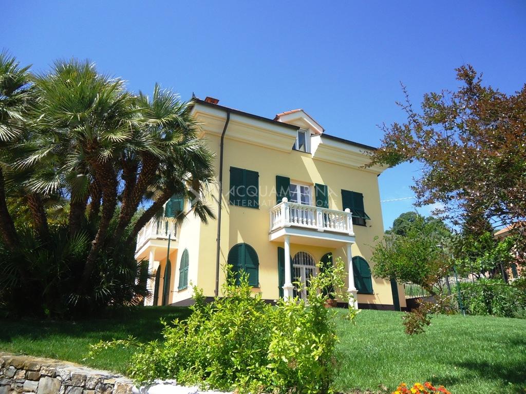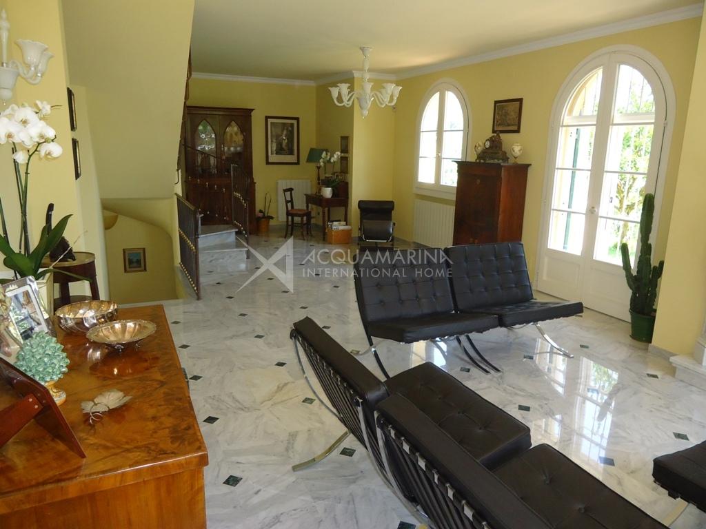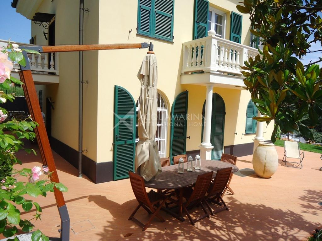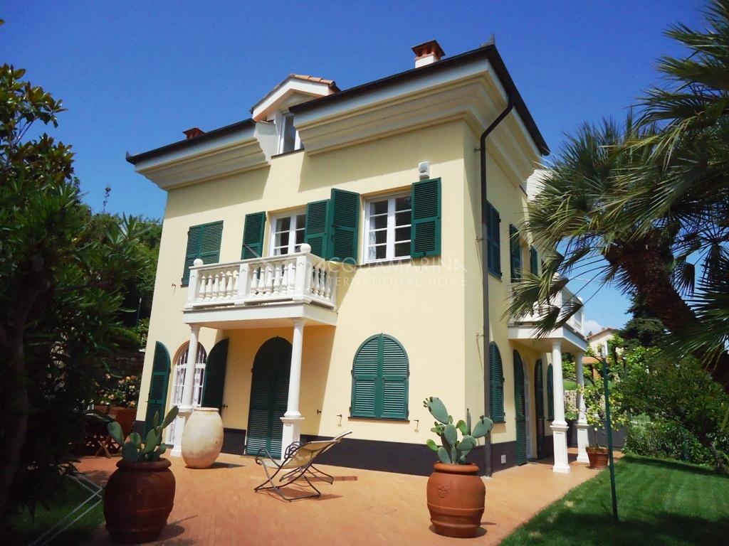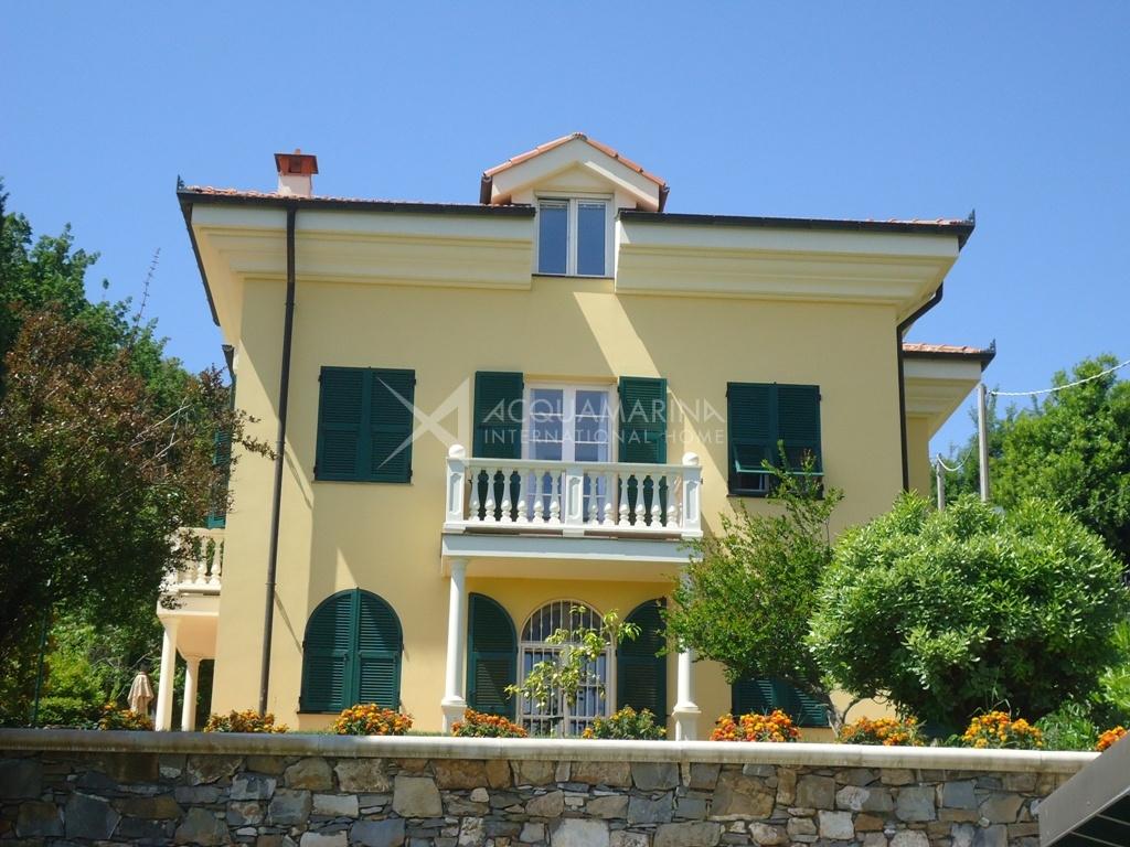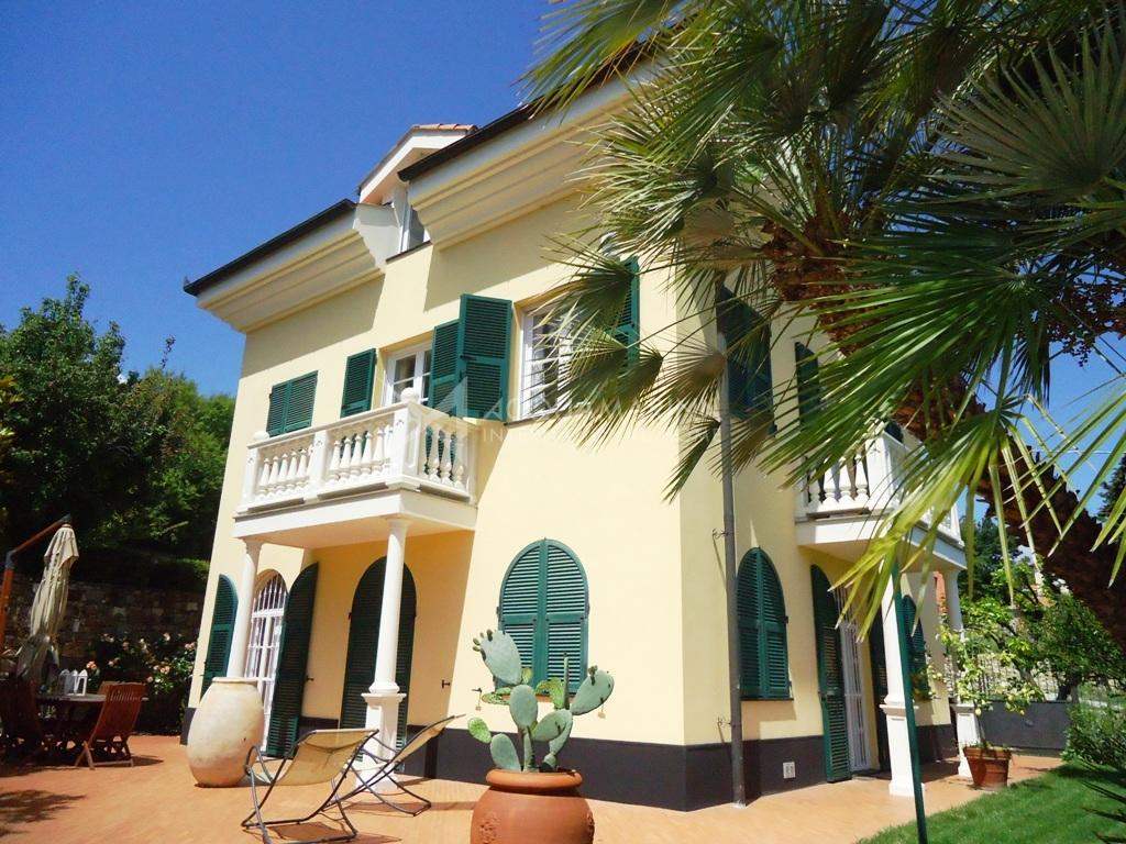Villa historique (XIXe siècle) restaurée tout en conservant le style architectural de l'époque, et entourée d'un magnifique jardin de 2.500 mètres carrés où vous pourrez construire une piscine. La villa de 250m² habitables + sous-sol de 80 m² + garage de 100 m², est située dans une position dominante dans un complexe privé. Elle est sur 3 niveaux, avec deux entrées: au rez-de-chaussée il y a un salon spacieux, la cuisine, la buanderie / salle de repassage, une salle de bain. Au premier étage, nous avons 3 chambres avec balcons et 2 salles de bains. Au deuxième étage (avec accès indépendant) nous avons un appartement avec salon, cuisine, deux chambres et salle de bains. Il y a un garage de 100m² et un WC. Le sous-sol de 80m² a l'accès direct au jardin et à la terrasse. Belle vue jusqu'à la mer ( à 750 m seulement).