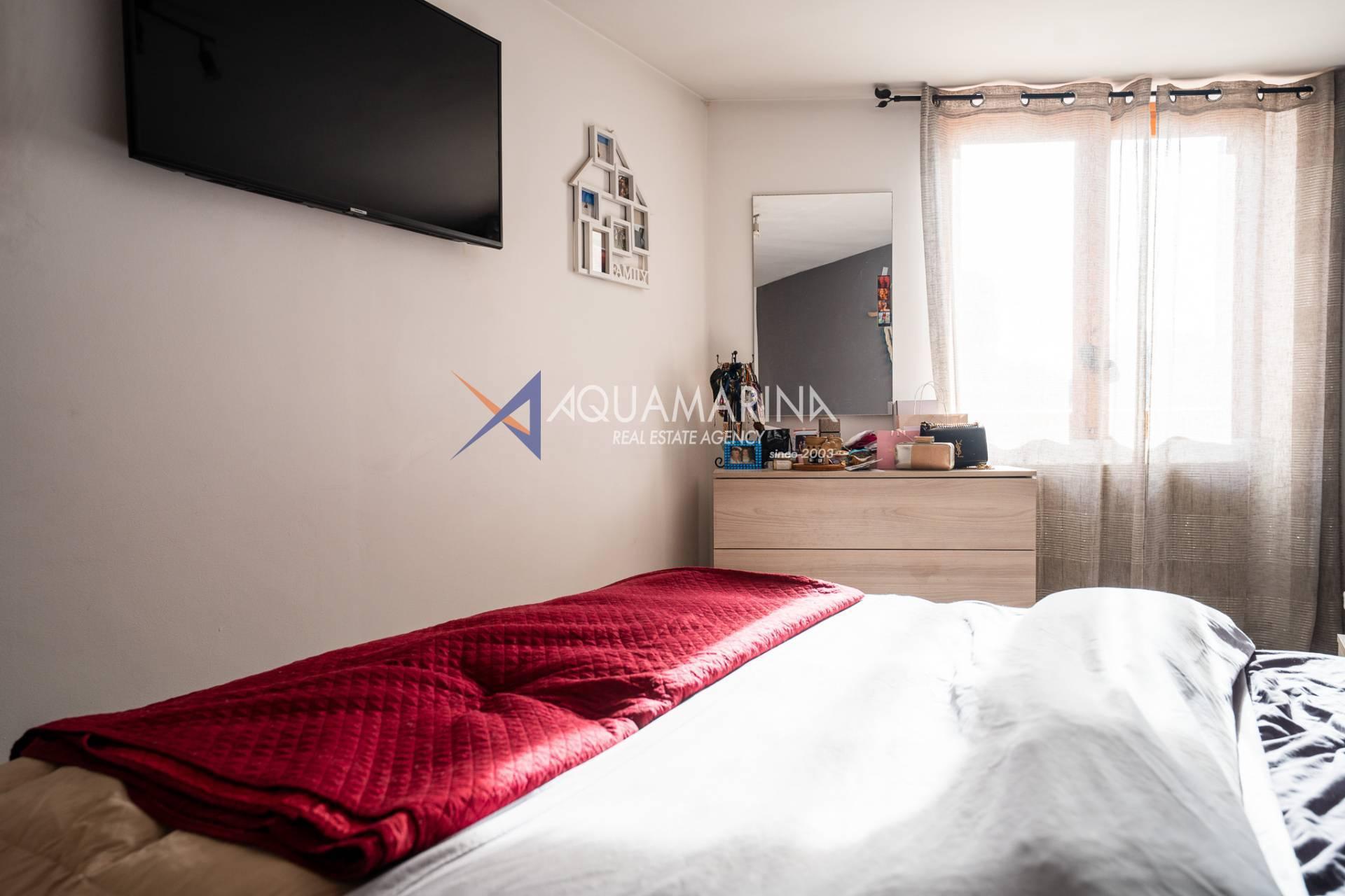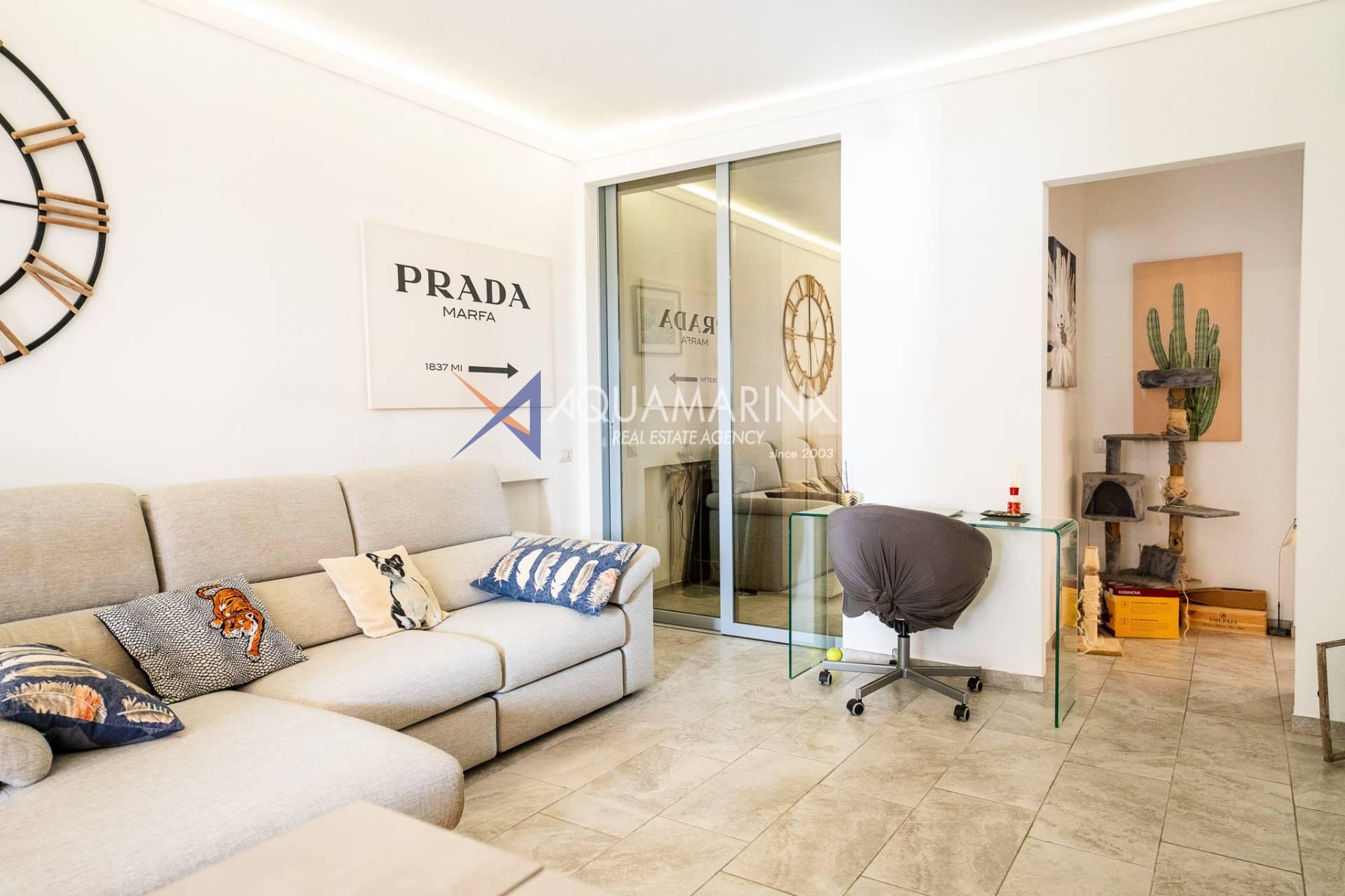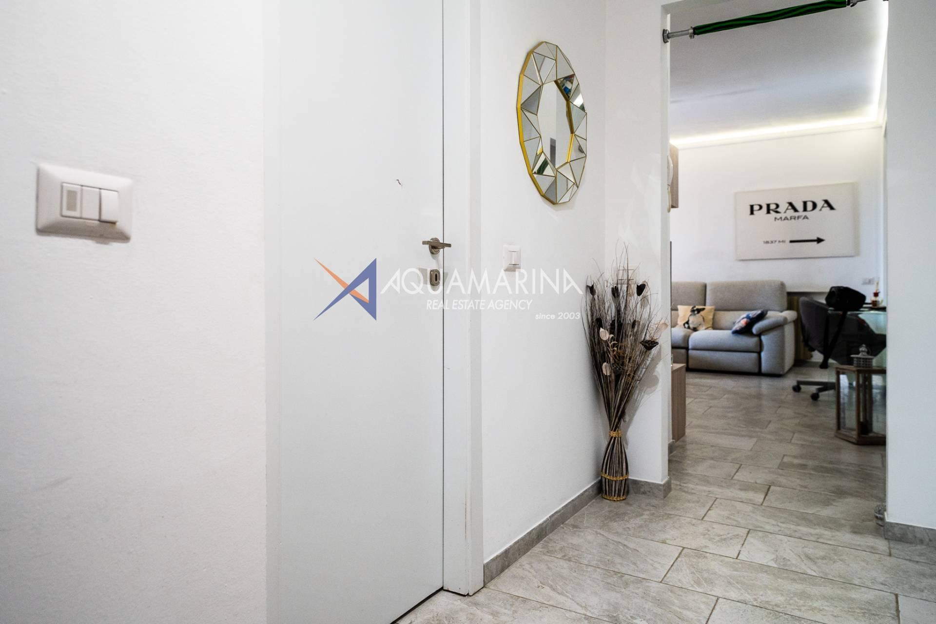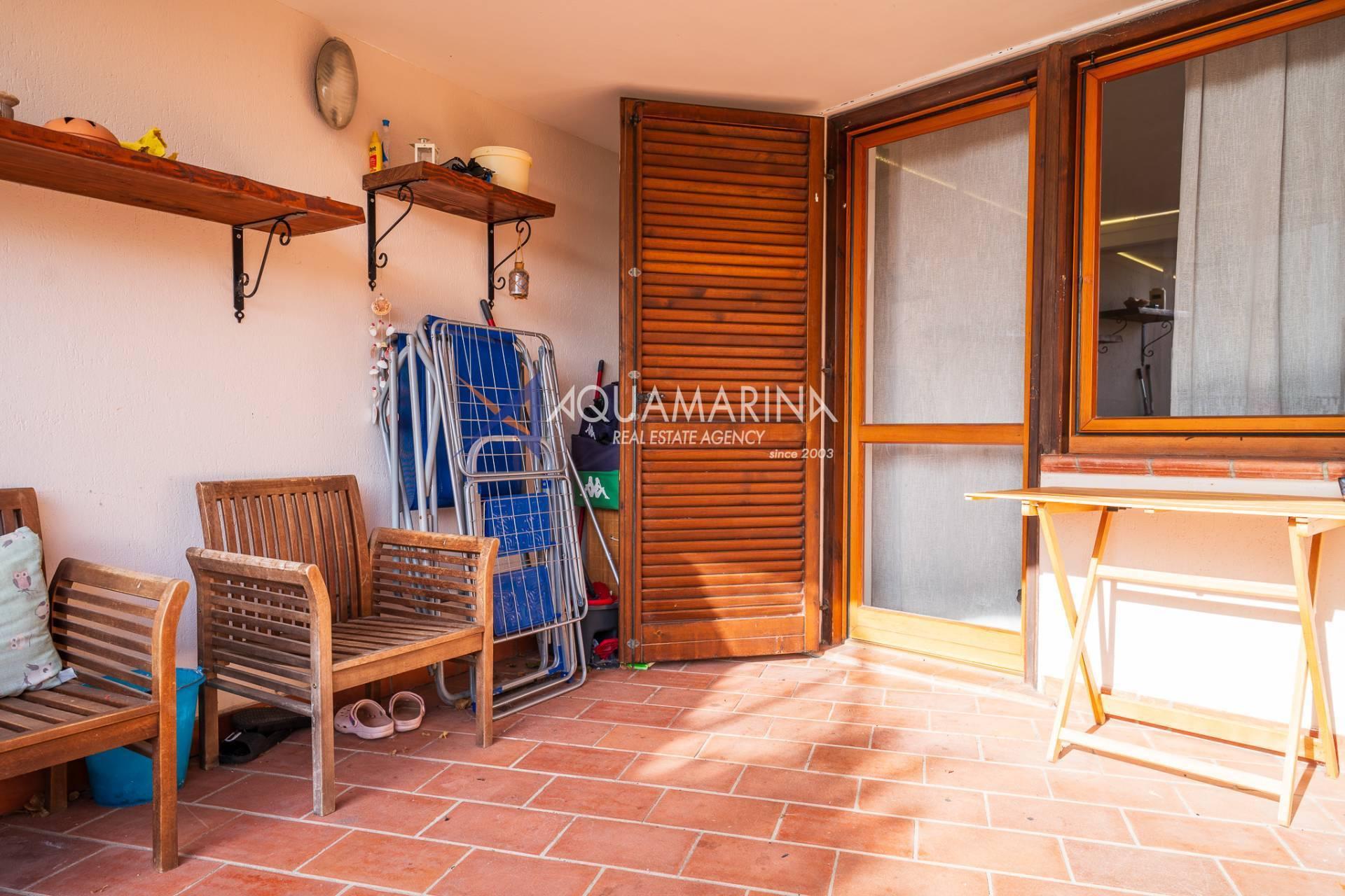L'appartement, en excellent état et méticuleusement entretenu, comprend : un hall d'entrée, un séjour avec cuisine ouverte, une chambre principale, une deuxième chambre, une salle de bains avec fenêtre et une grande terrasse en loggia - un véritable atout de la propriété, idéale pour dîner en plein air et se détendre avec vue sur la mer.
