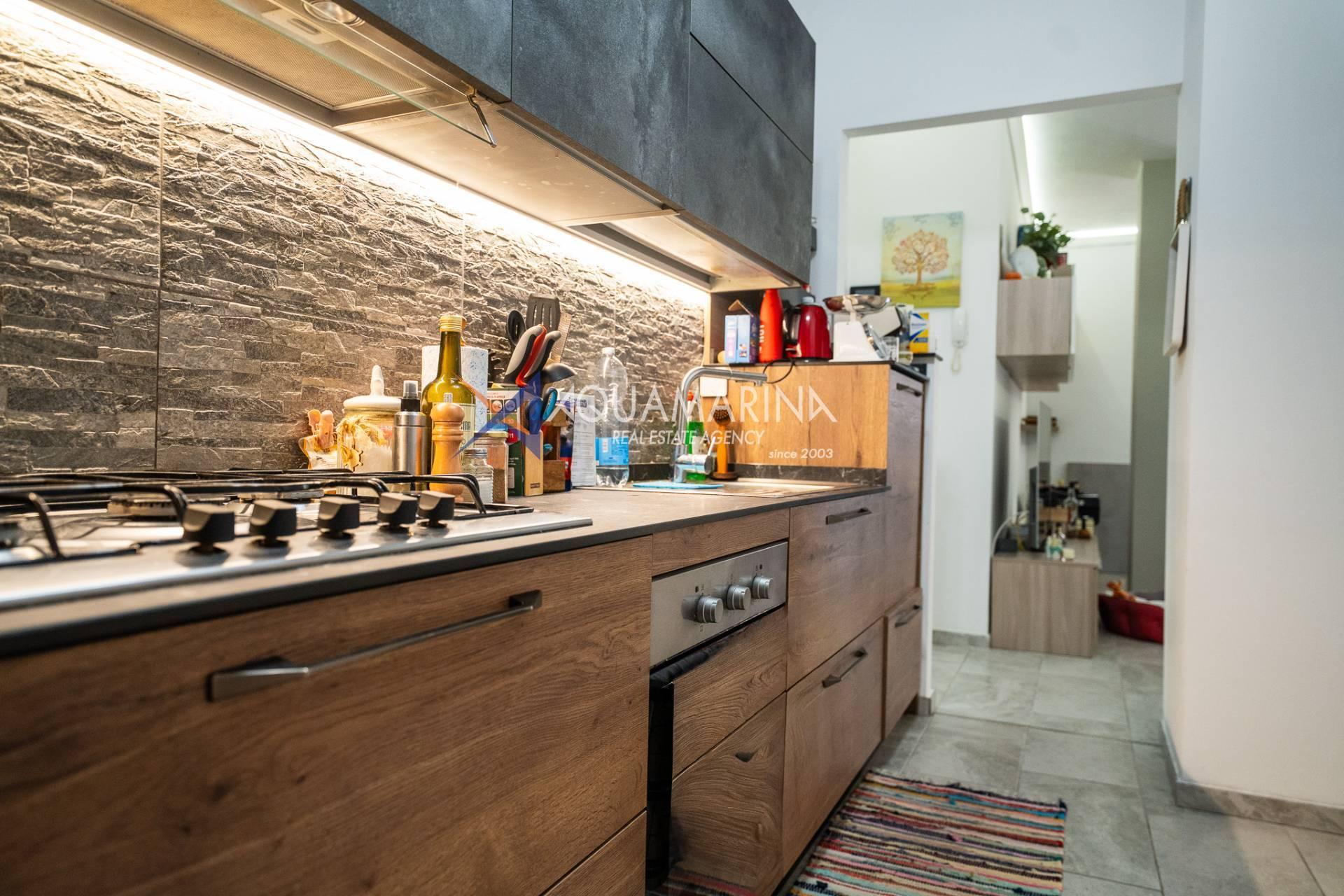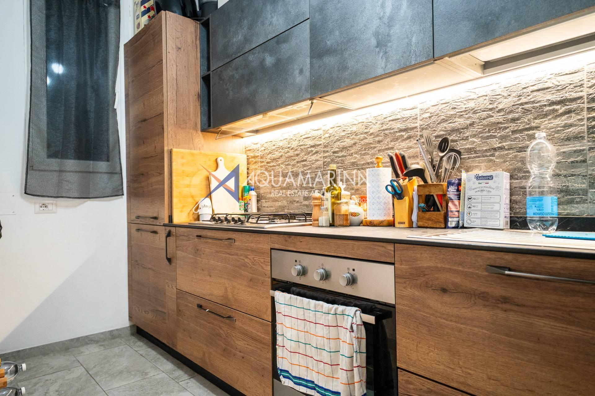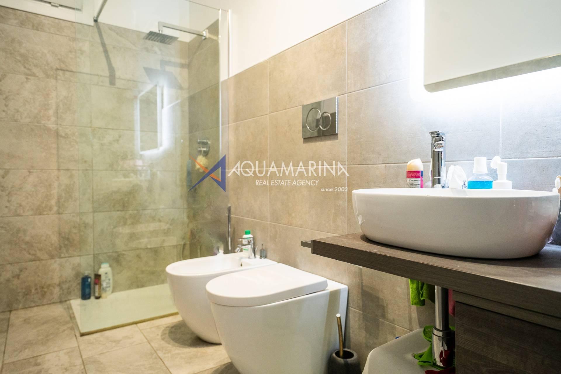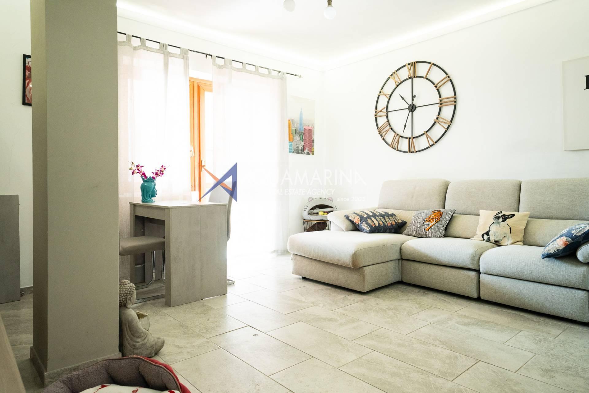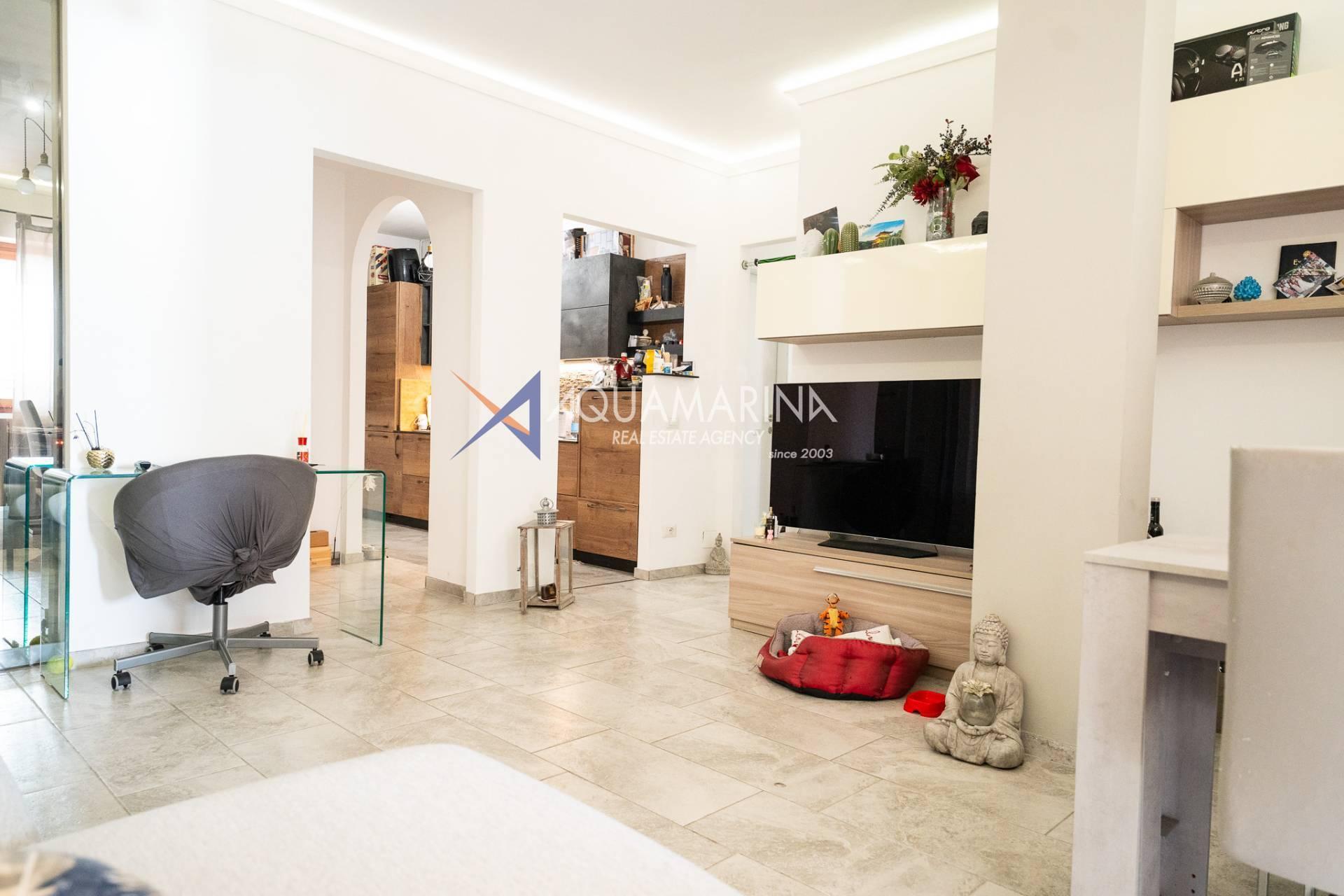 L'appartement, en excellent état et méticuleusement entretenu, comprend : un hall d'entrée, un séjour avec cuisine ouverte, une chambre principale, une deuxième chambre, une salle de bains avec fenêtre et une grande terrasse en loggia - un véritable atout de la propriété, idéale pour dîner en plein air et se détendre avec vue sur la mer.