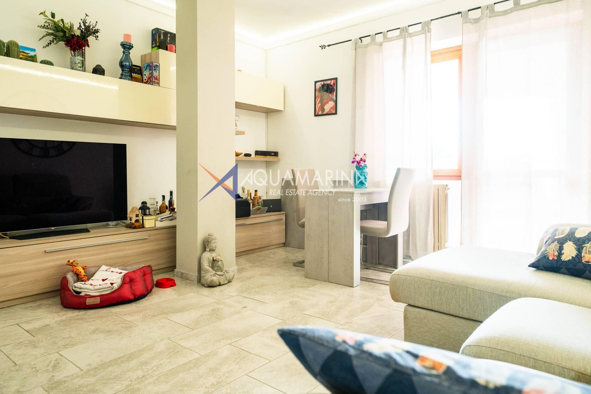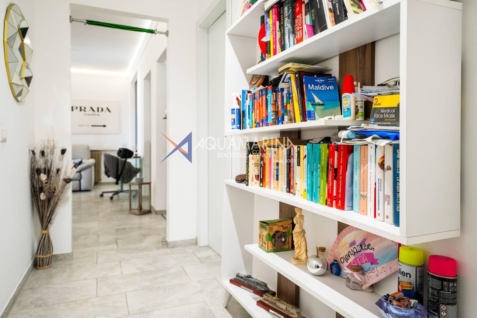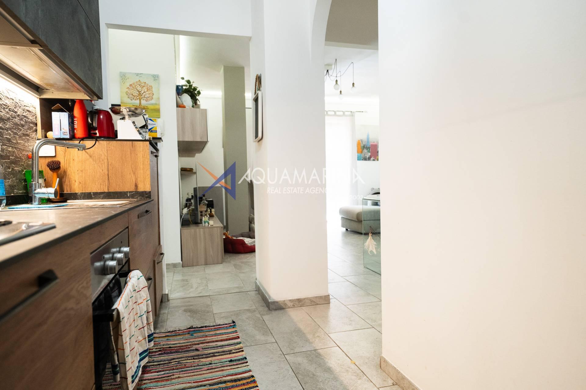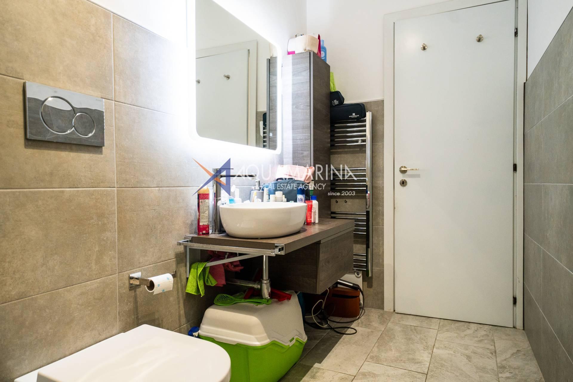 L'appartement, en excellent état et méticuleusement entretenu, comprend : un hall d'entrée, un séjour avec cuisine ouverte, une chambre principale, une deuxième chambre, une salle de bains avec fenêtre et une grande terrasse en loggia - un véritable atout de la propriété, idéale pour dîner en plein air et se détendre avec vue sur la mer.