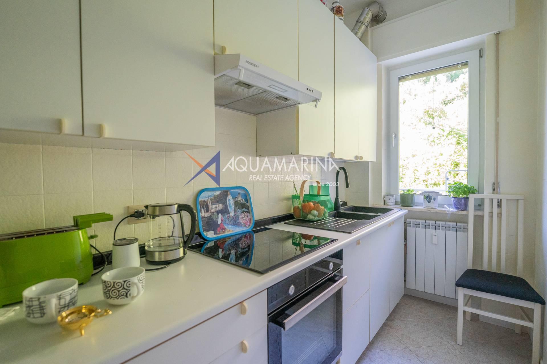 L'appartement, d'environ 60 m2, est situé à quelques pas de la mer et des services dans la copropriété avec piscine "Patrizia".