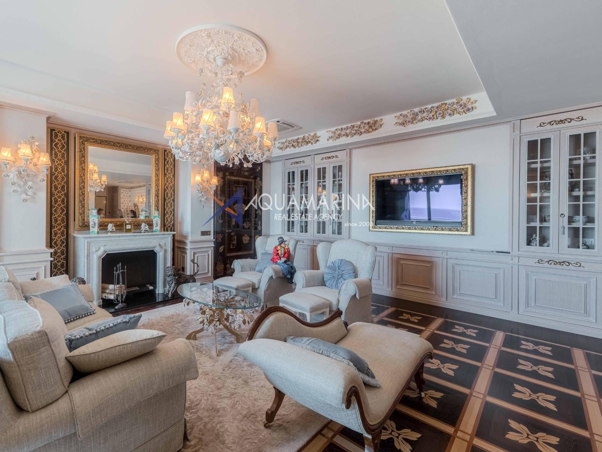 Nous vous proposons un spacieux penthouse avec terrasse et vue imprenable sur la mer, un garage et une cave. L'intérieur comprend un hall d'entrée, un grand séjour ouvert avec cheminée et salle à manger, une cuisine, deux chambres (dont une en suite), une deuxième salle de bains, une buanderie, deux dressings, un débarras et une grande terrasse.
