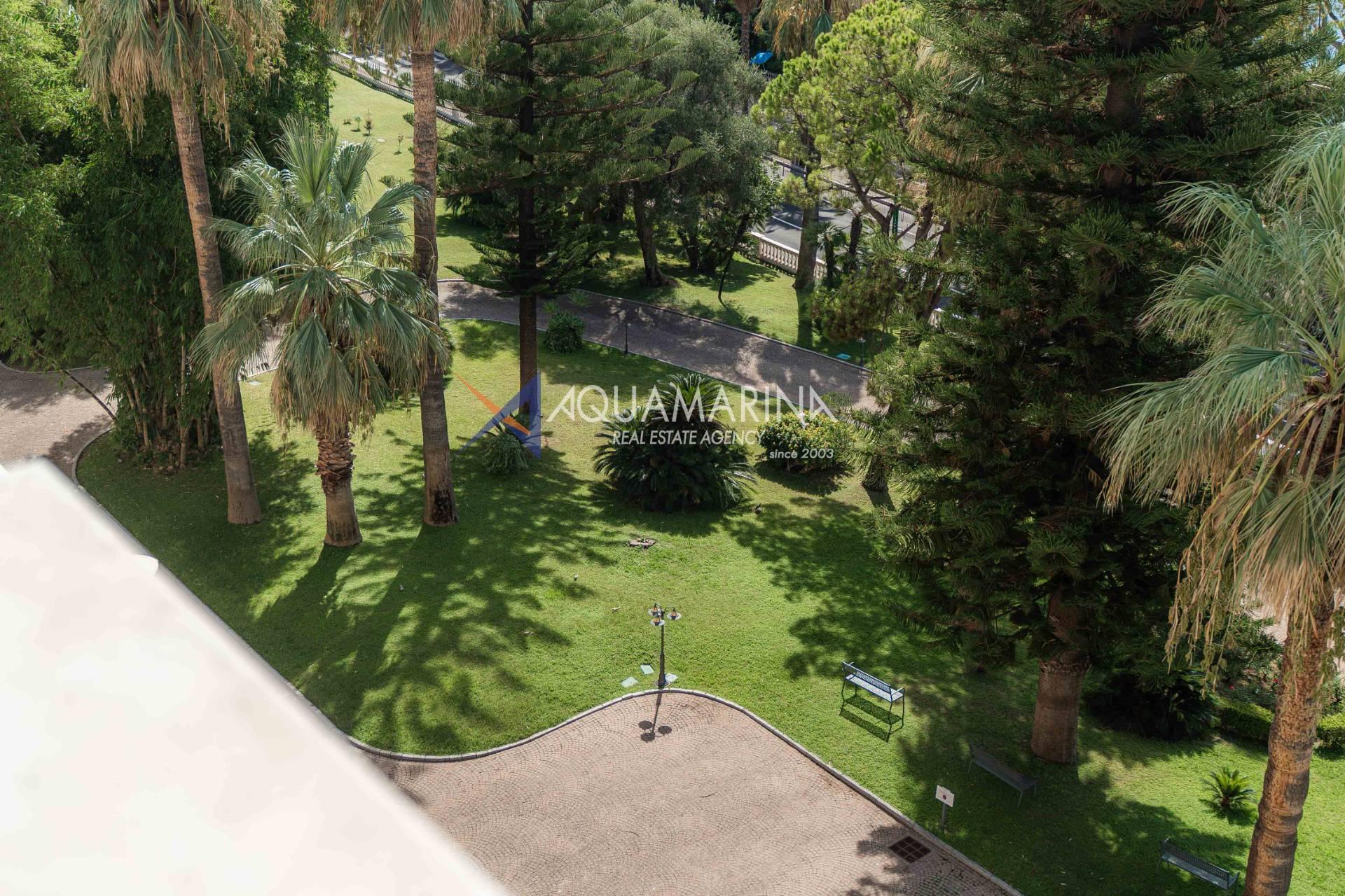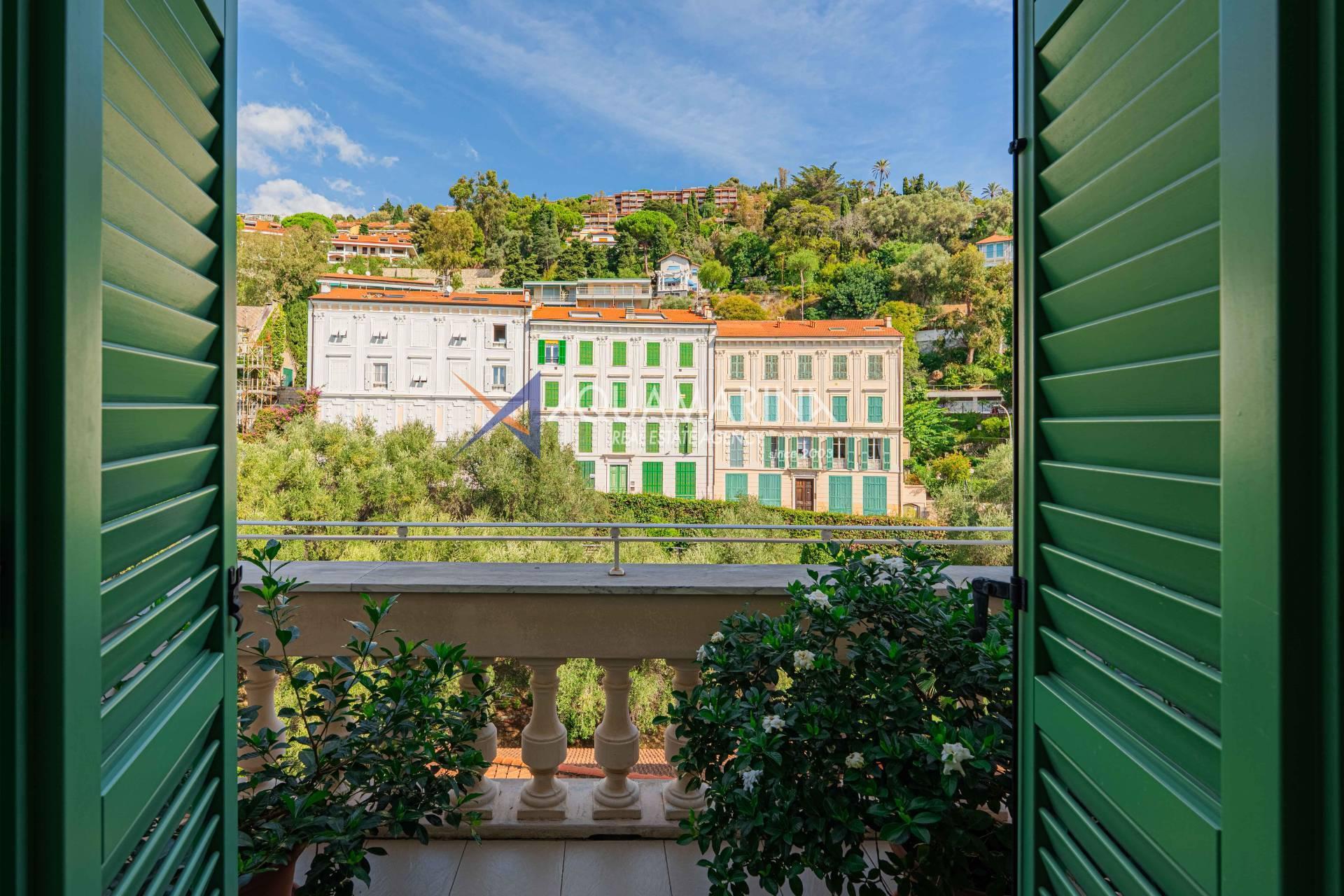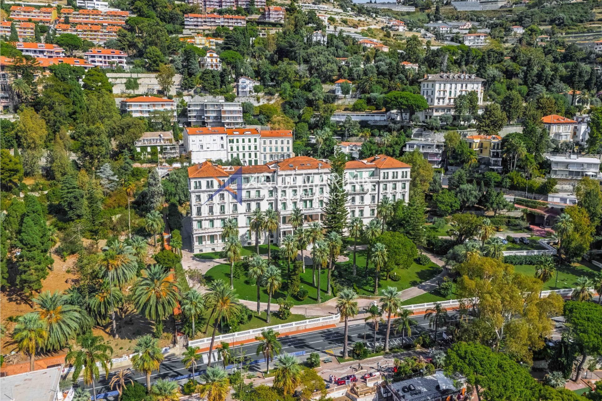 Dans la prestigieuse Residenza Regina d'Ospedaletti, l'ancien Grand Hôtel de la Regina, construit au XIXe siècle, était autrefois un lieu de villégiature prisé de l'aristocratie européenne. Dès 1860, le Dr Kerel remarquait que ce quartier d'Ospedaletti bénéficiait d'un climat idéal, d'un air pur, d'une baie abritée et d'une atmosphère particulièrement agréable, surtout en hiver.