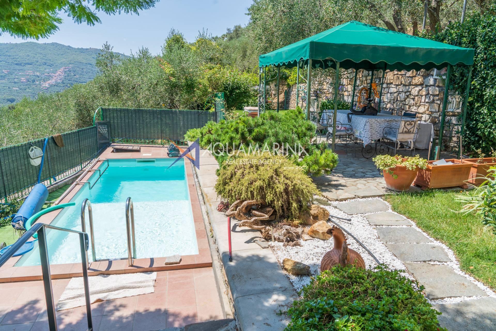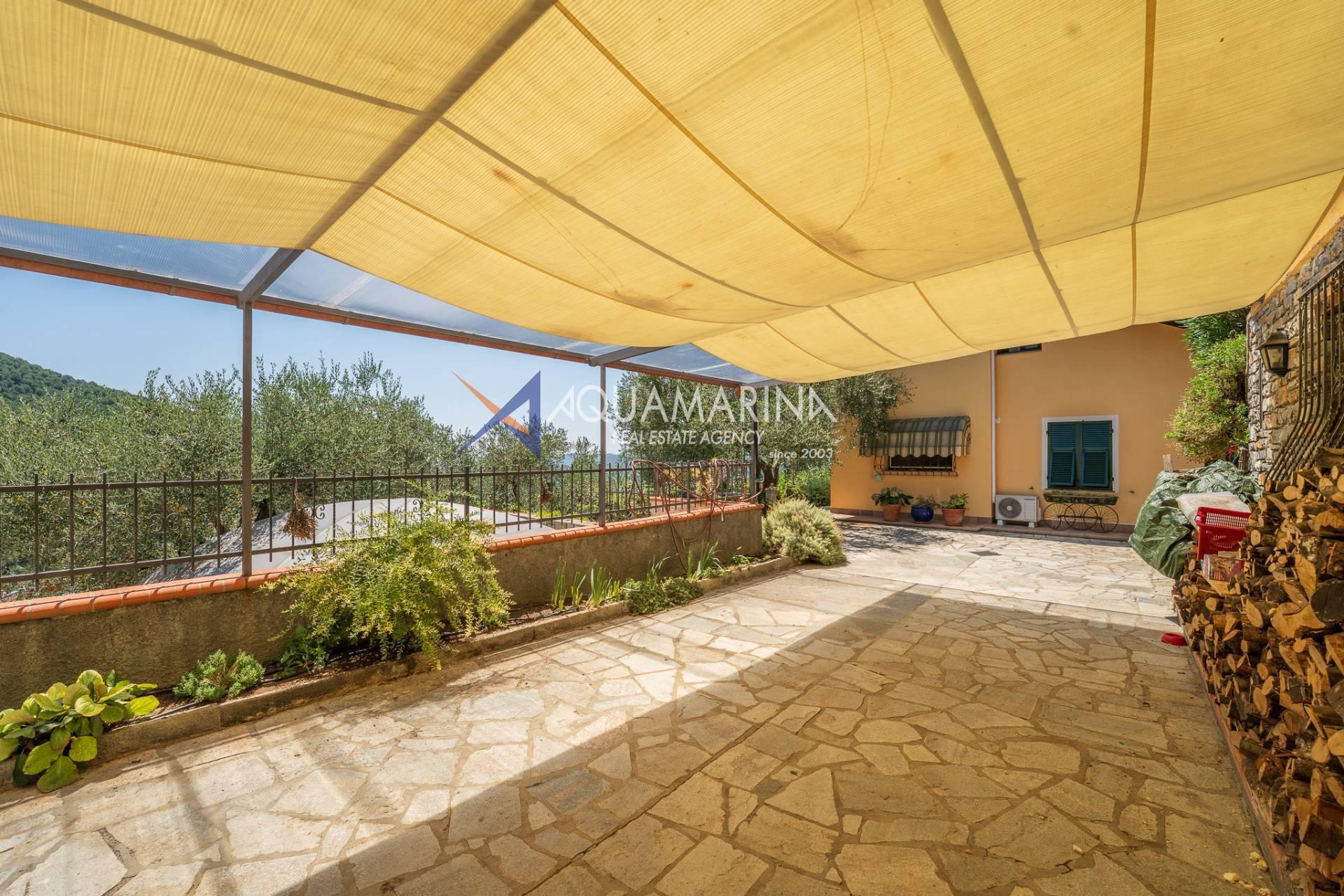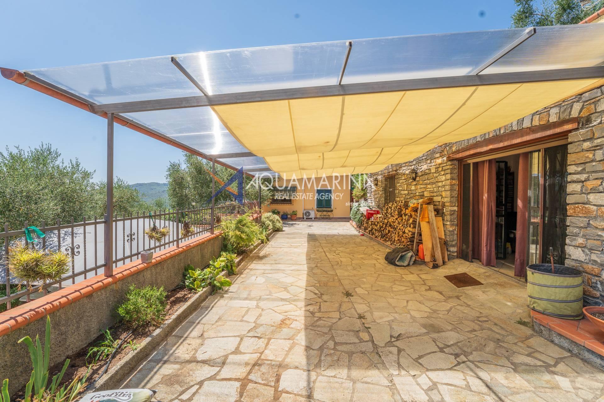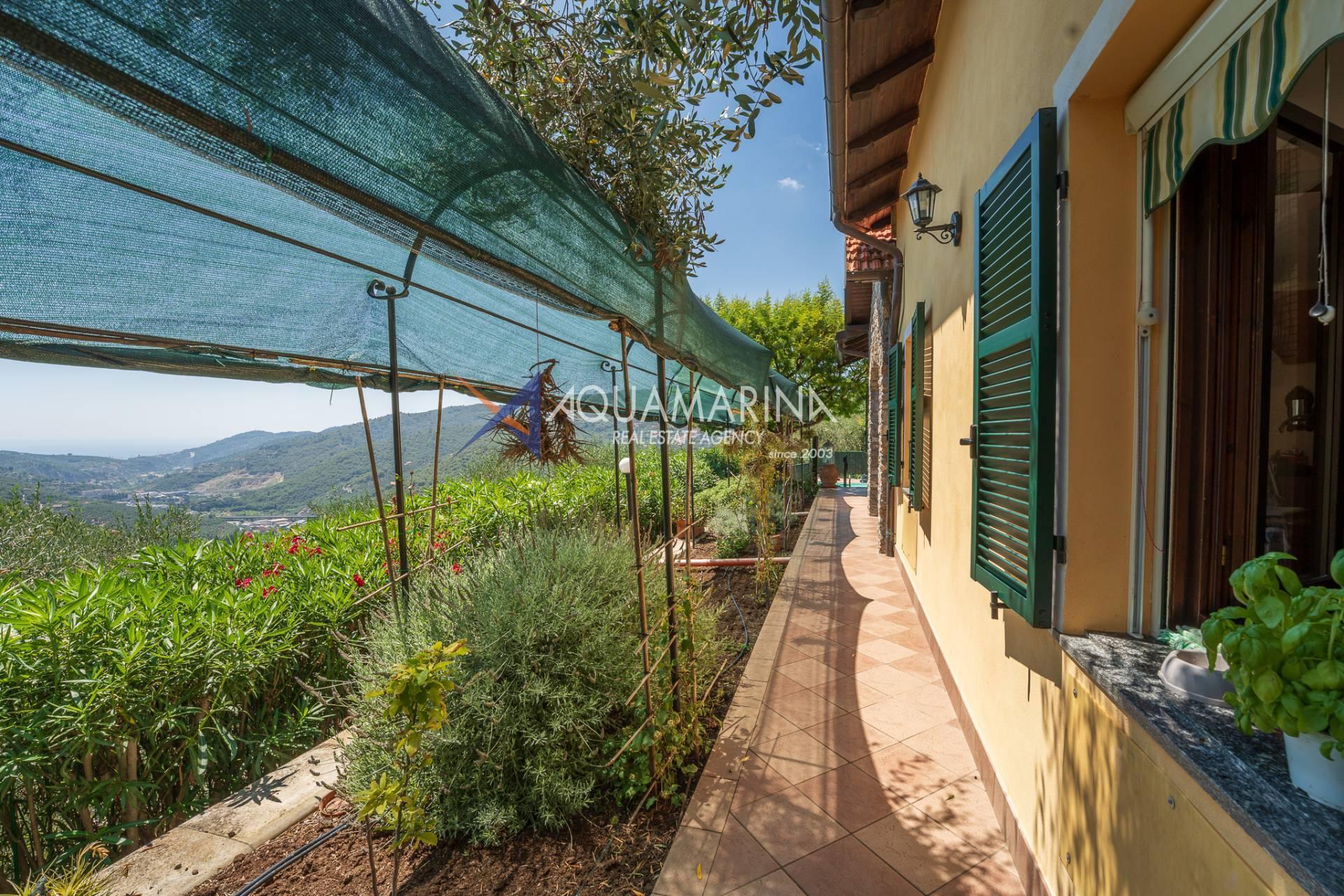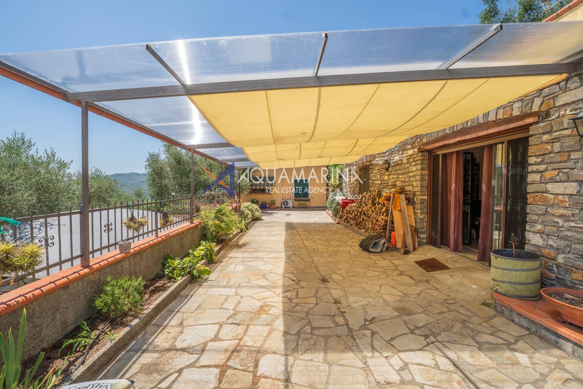 À Pontedassio, à seulement 15 minutes du centre d'Imperia, nous proposons à la vente une splendide villa avec vue sur la mer, immergée dans la tranquillité et la beauté de l'arrière-pays ligure.