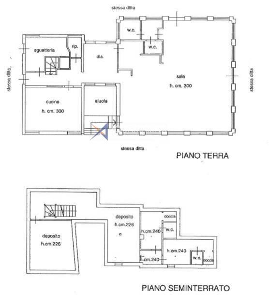 Un escalier intérieur mène au sous-sol, qui se compose d'une pièce avec trois réfrigérateurs dont un pour les boissons, deux vestiaires plus une douche et une salle de bain pour le personnel, pour un total d'environ 100 m2.