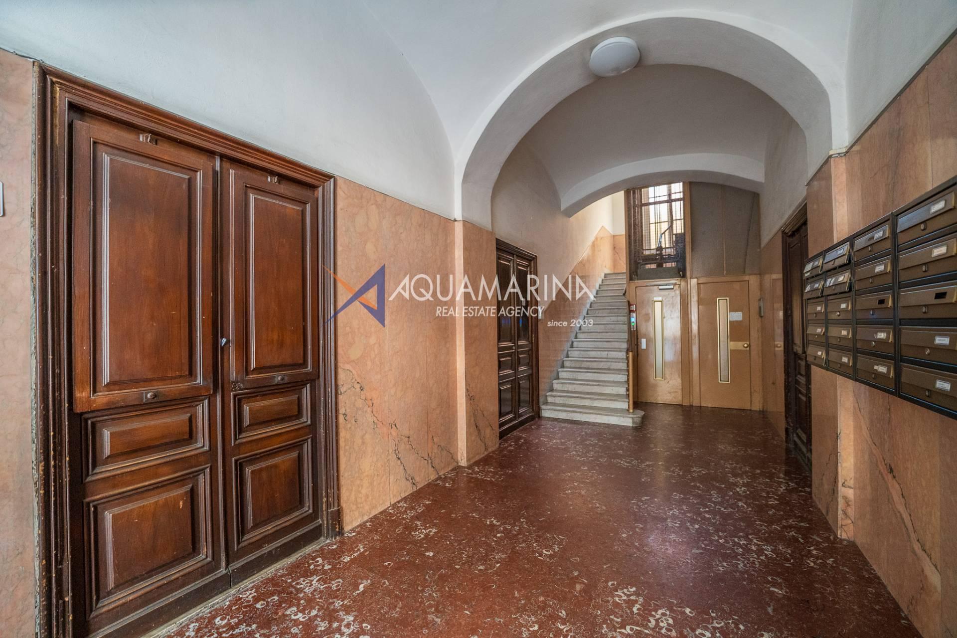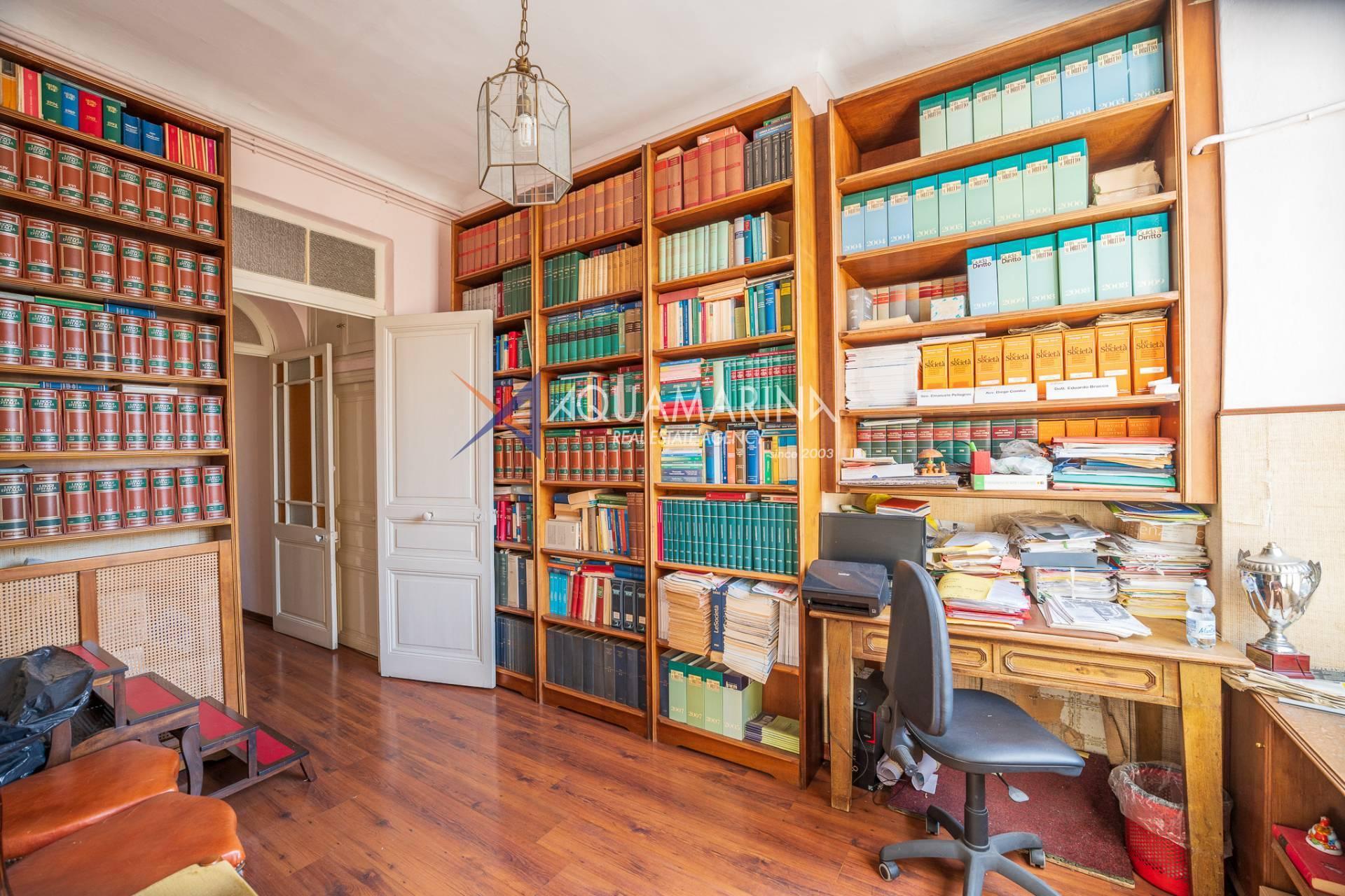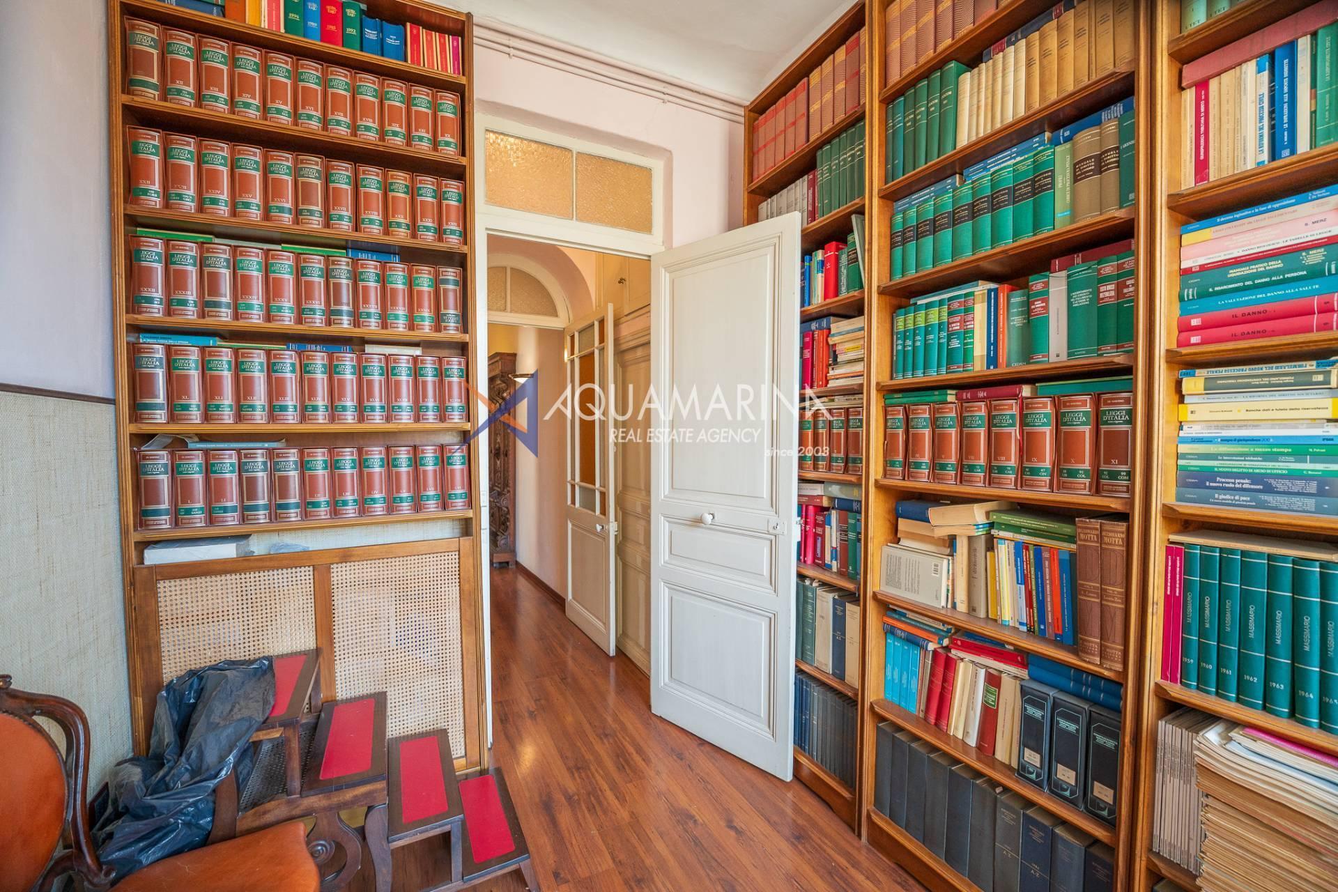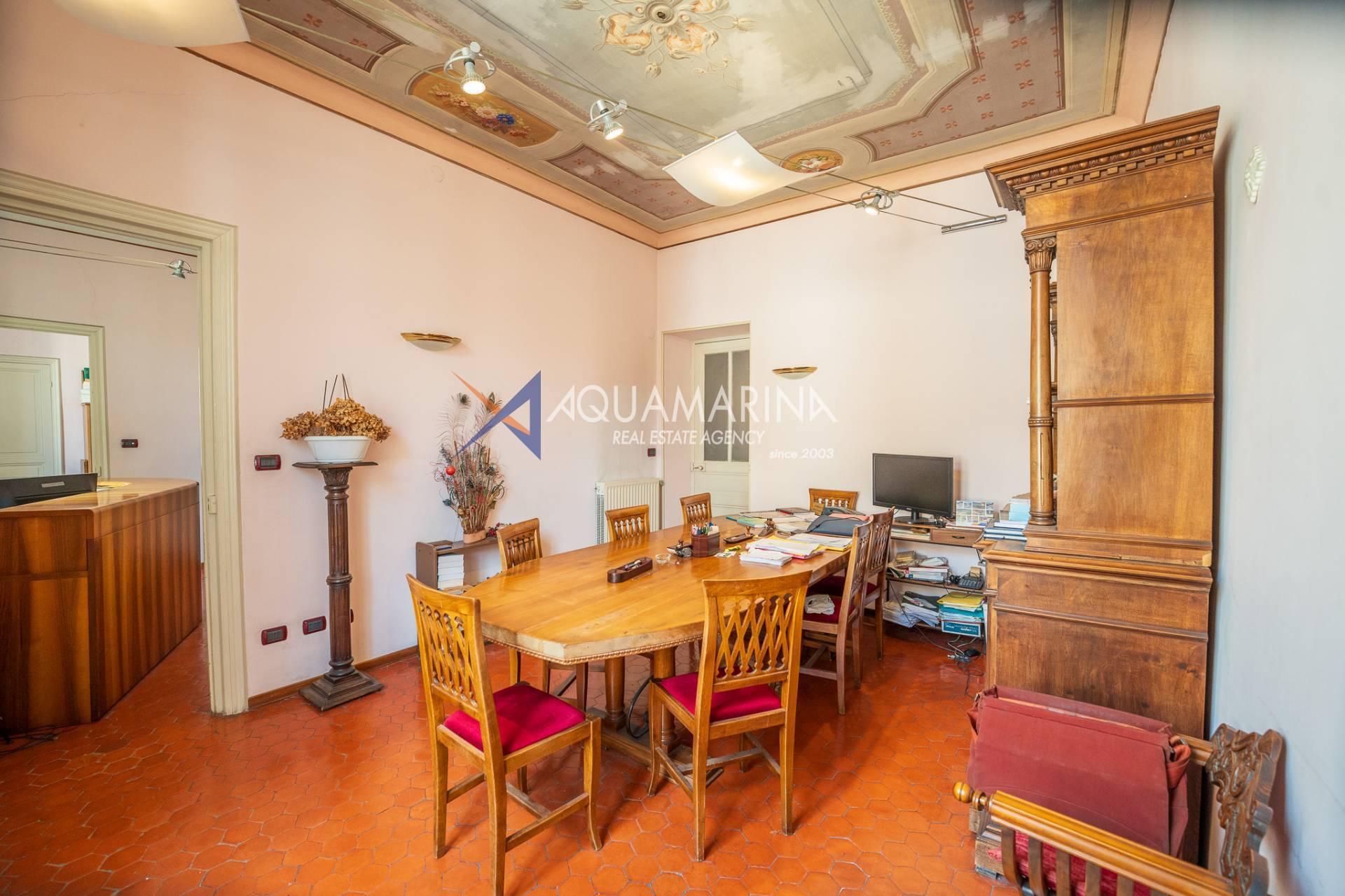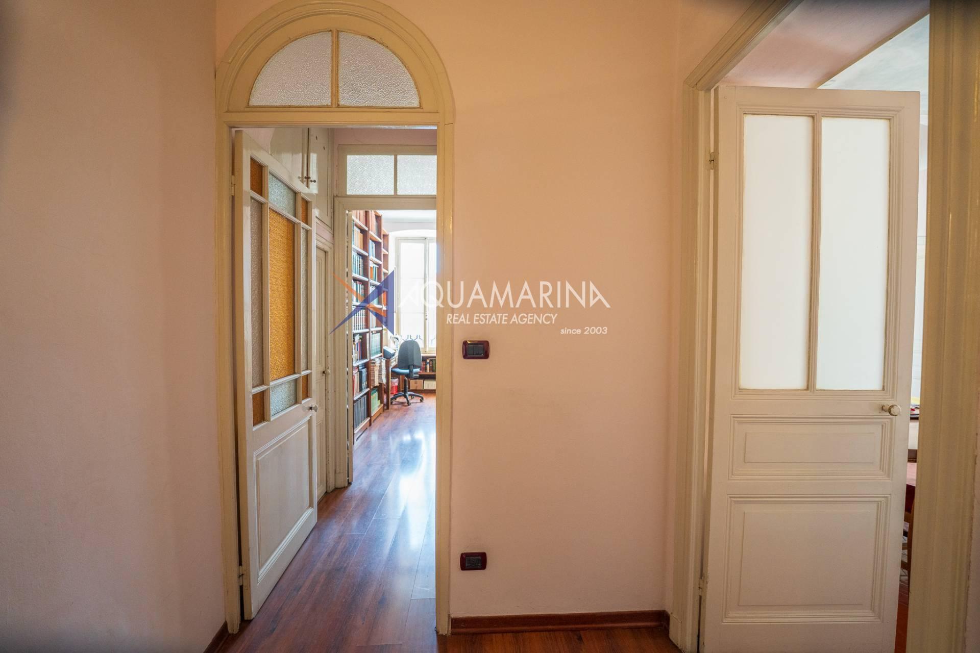 La propriété est dans son état d'origine et conserve tout le charme de l'époque, avec de hauts plafonds ornés de fresques, une agréable vue dégagée, des fenêtres donnant également sur le Corso Mombello et un aperçu suggestif de la mer à l'ouest.