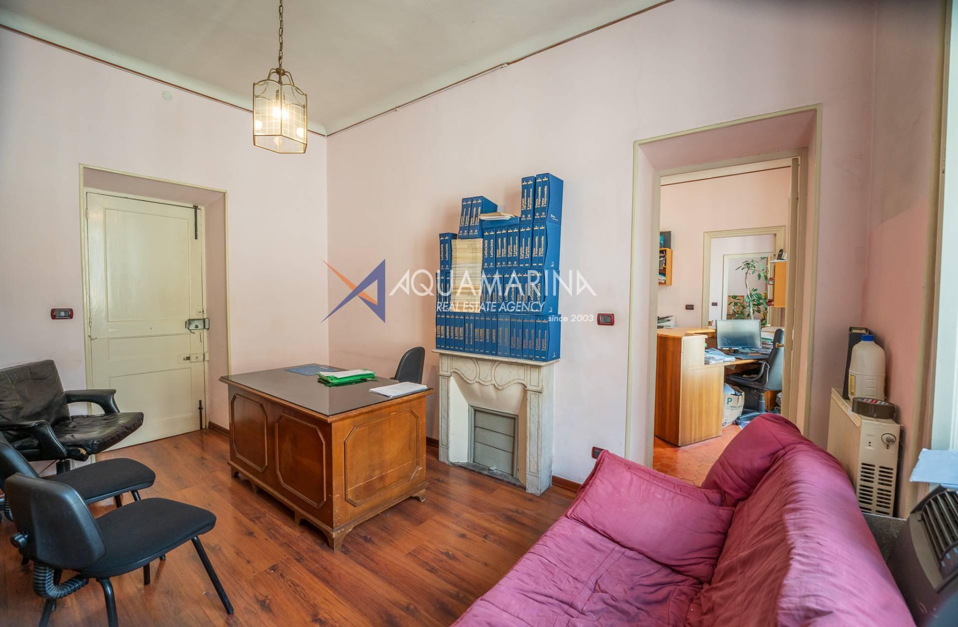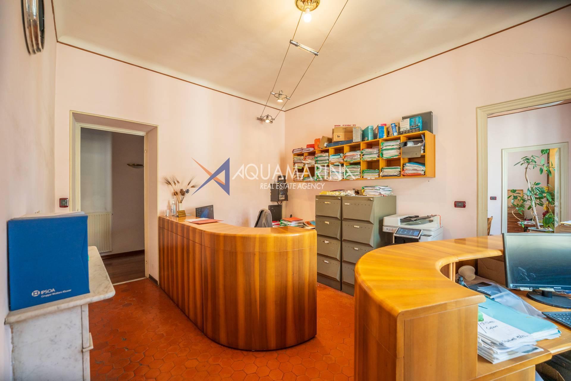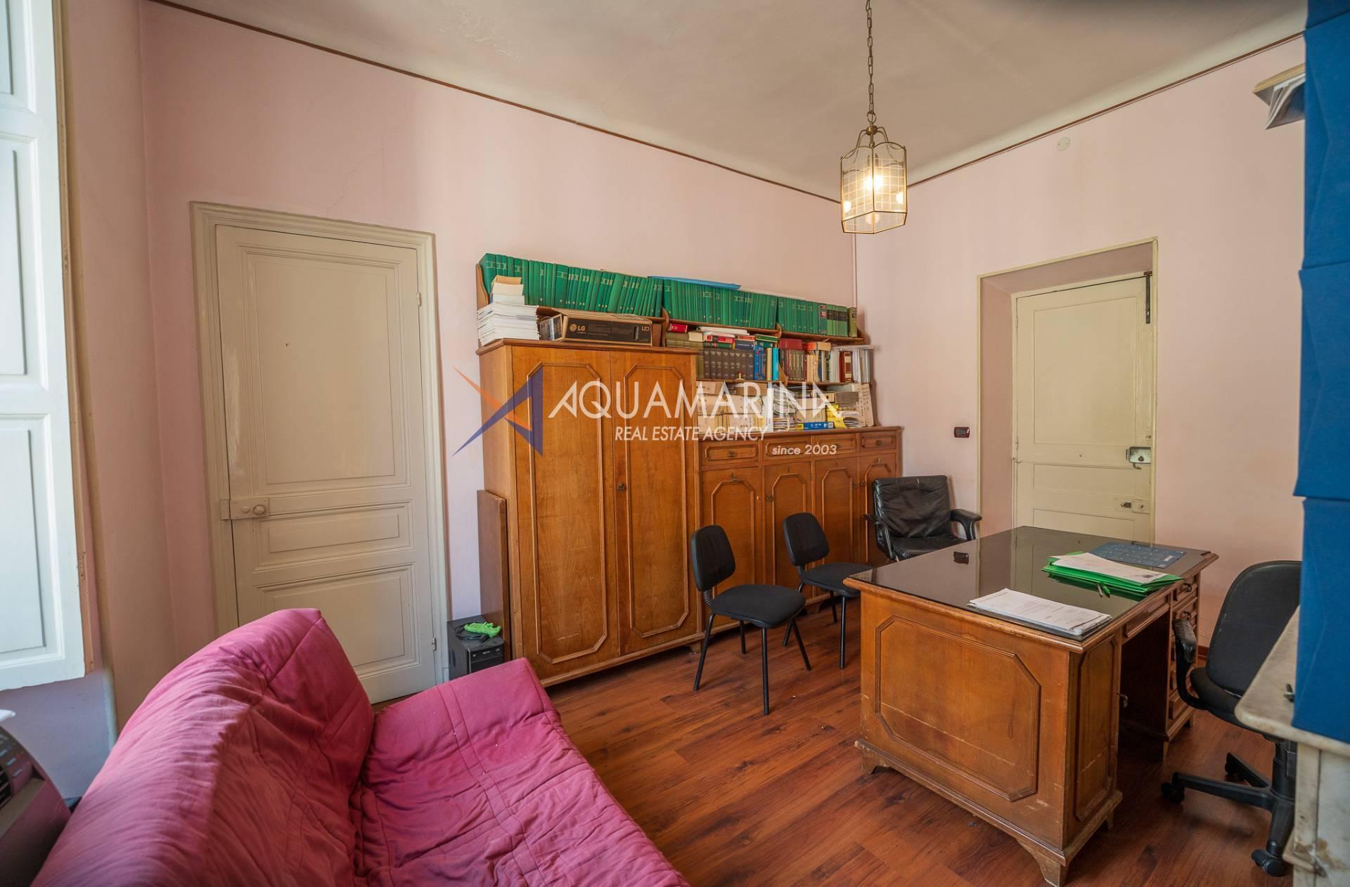 Actuellement utilisé comme bureau, il est déjà enregistré comme résidence et offre de grands espaces lumineux, avec une double entrée, un séjour, une cuisine, trois chambres, une salle de bain avec fenêtre, un placard et un balcon donnant sur la Via Matteotti.