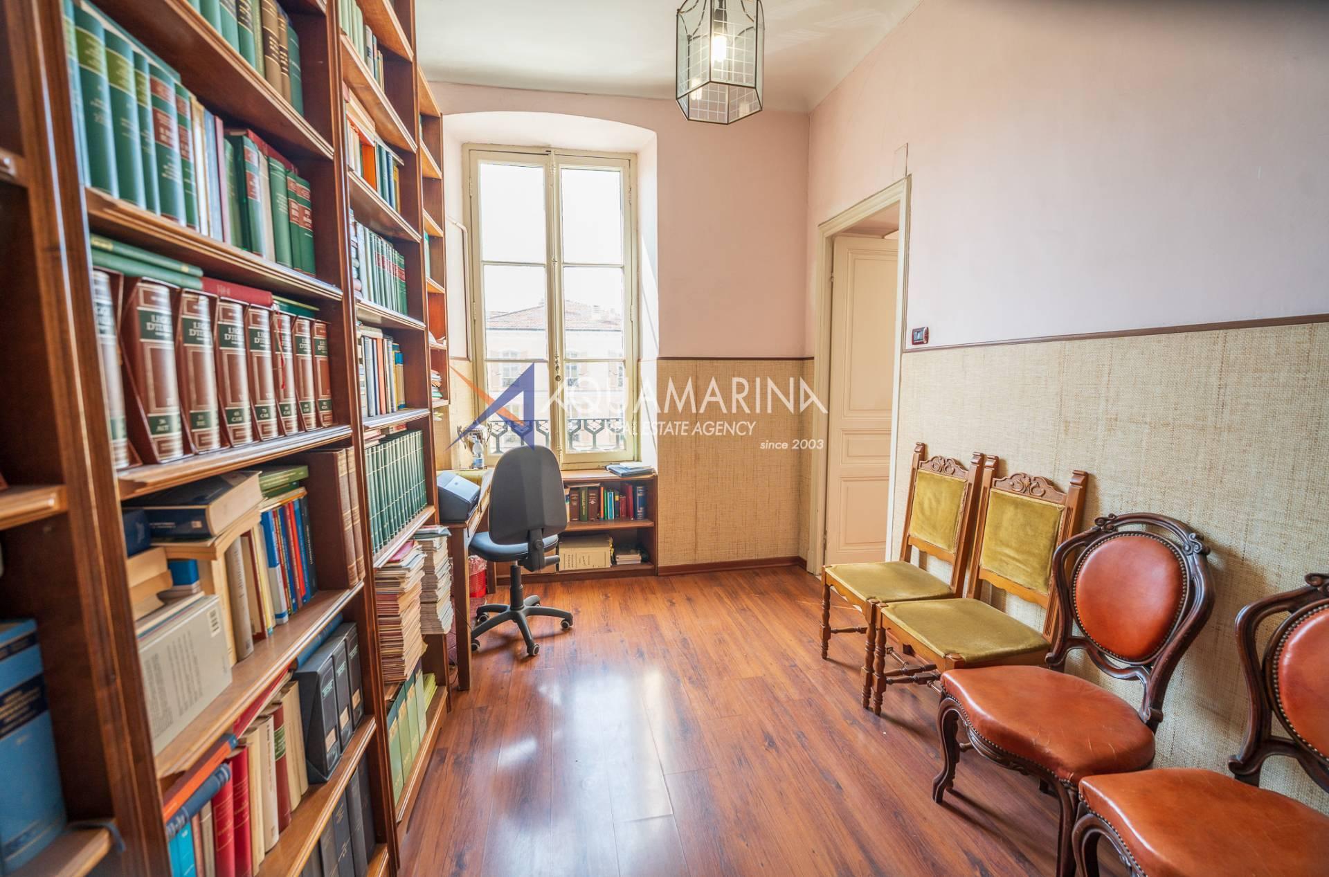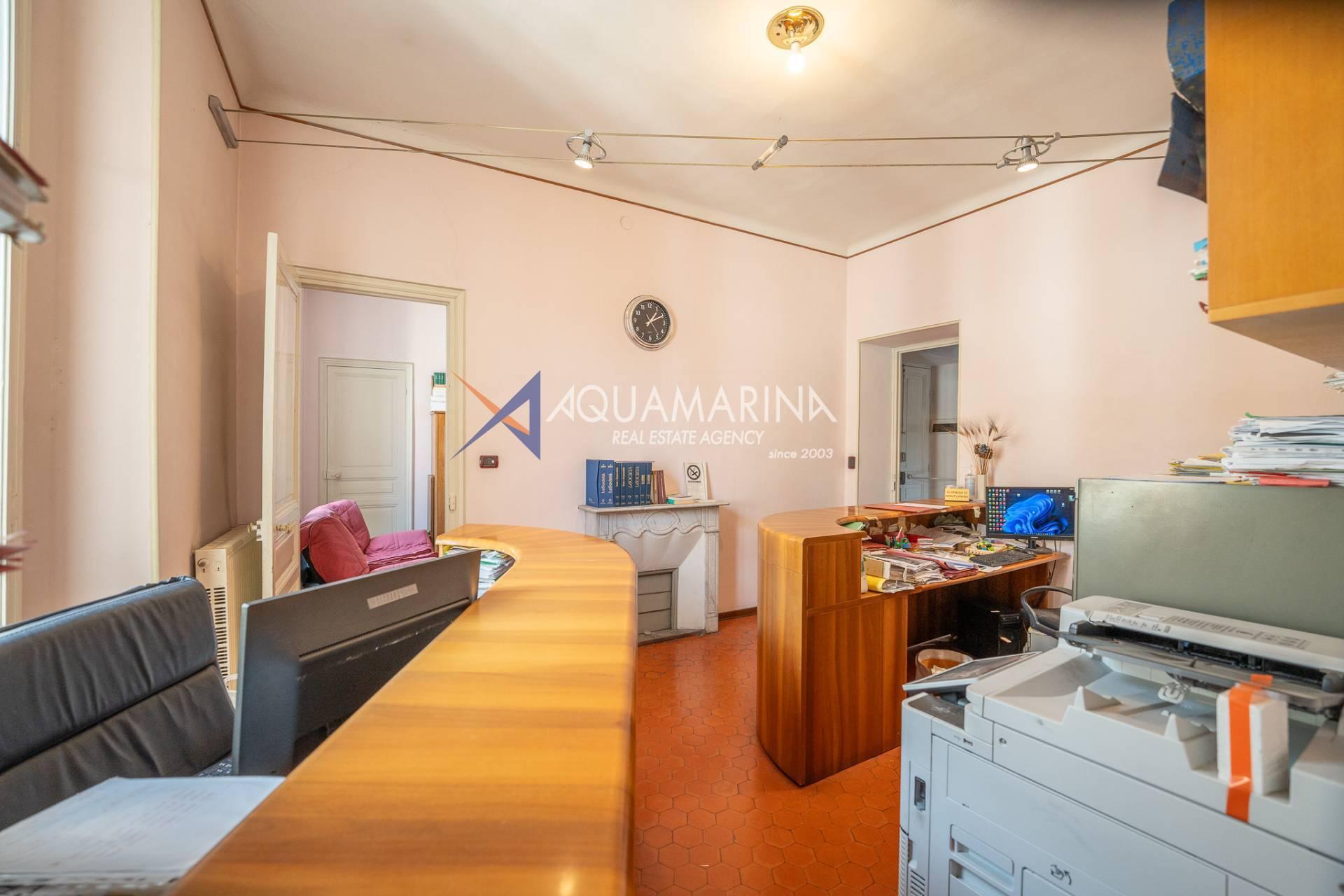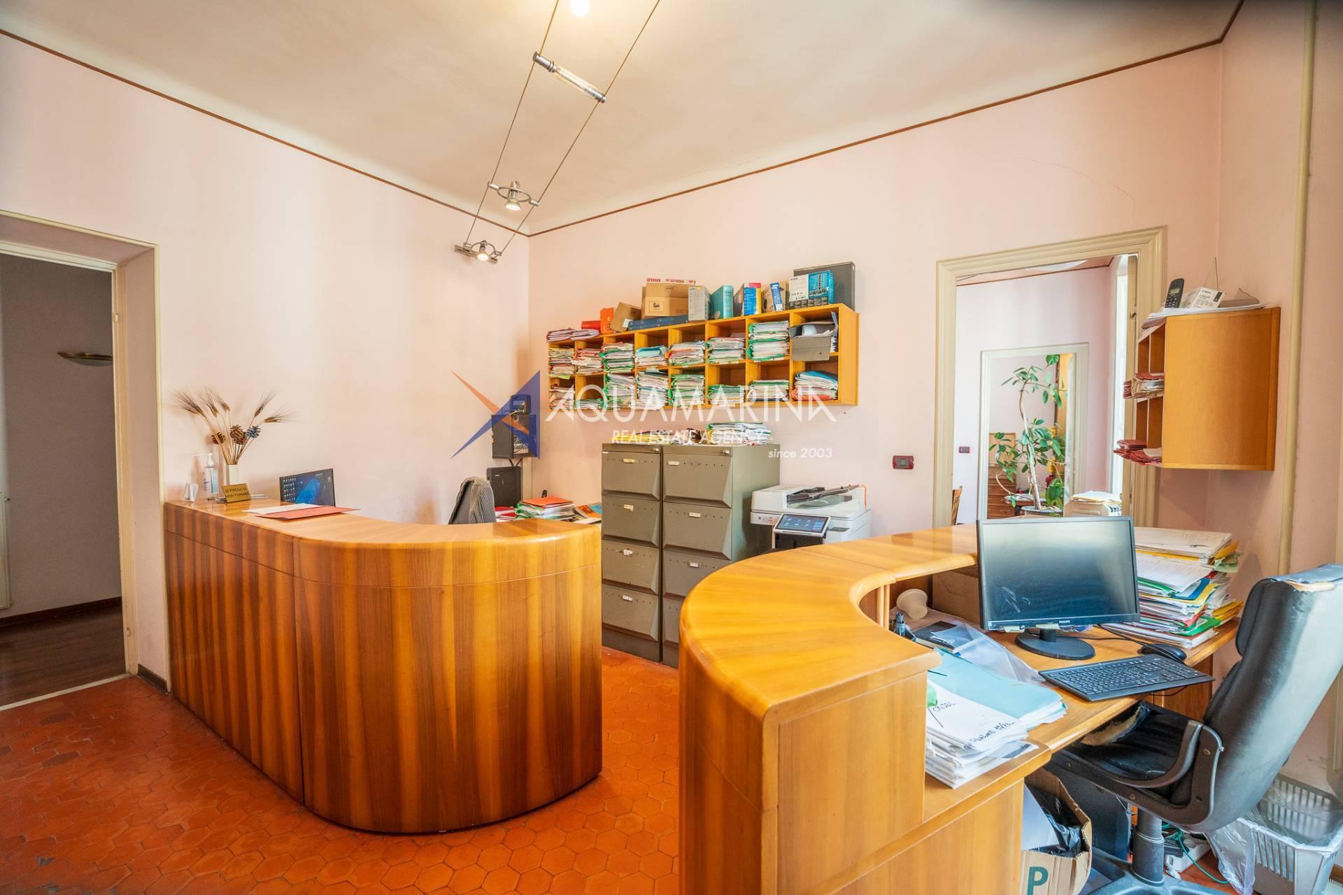 Actuellement utilisé comme bureau, il est déjà enregistré comme résidence et offre de grands espaces lumineux, avec une double entrée, un séjour, une cuisine, trois chambres, une salle de bain avec fenêtre, un placard et un balcon donnant sur la Via Matteotti.