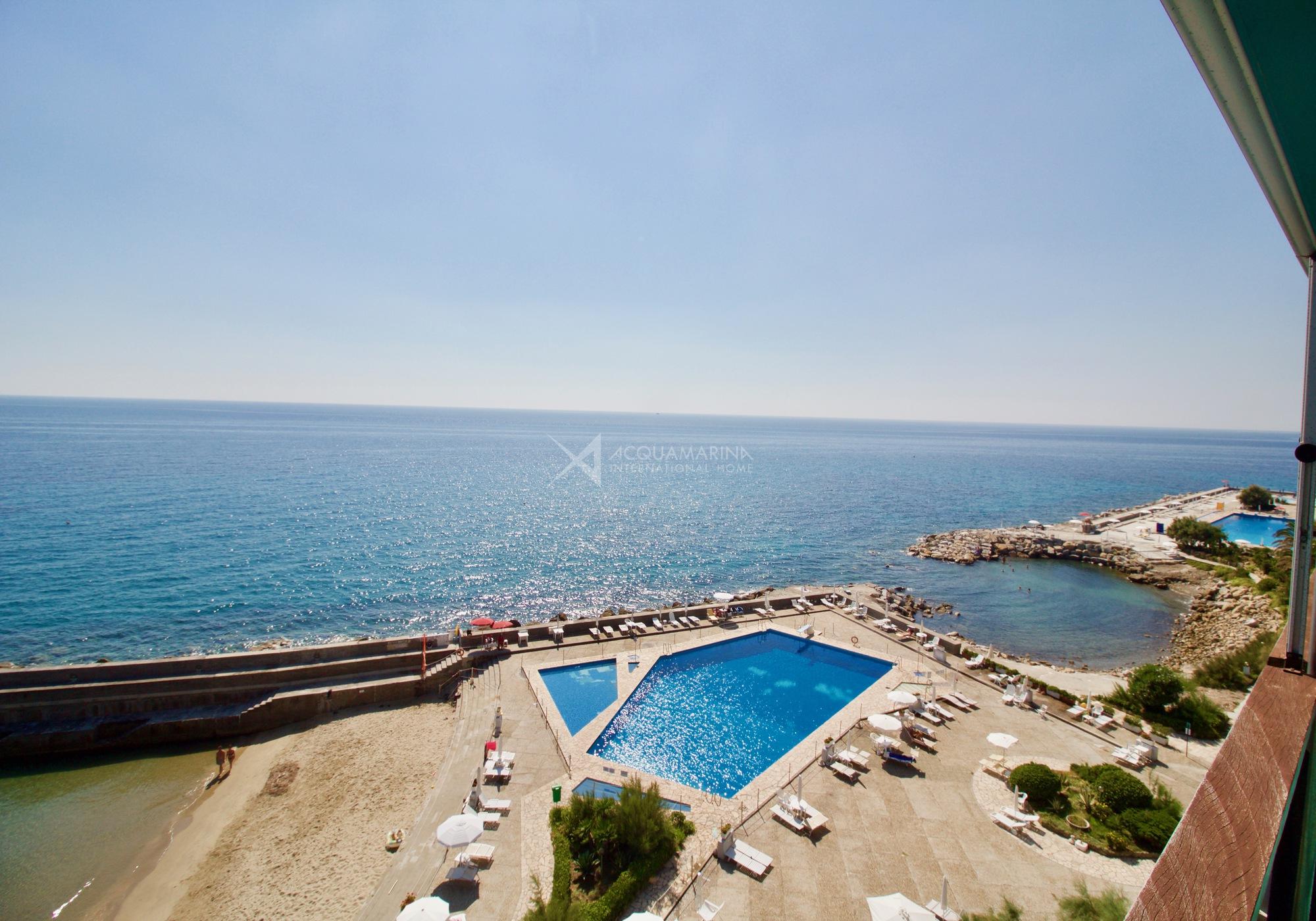 Sanremo, dans un complexe avec piscines et plage privée, nous proposons à la vente un appartement en bord de mer.