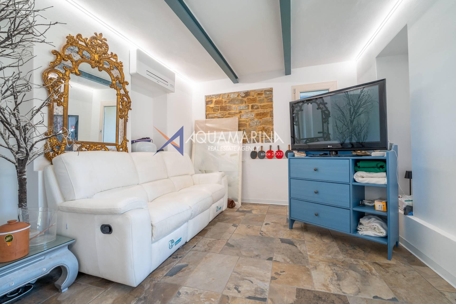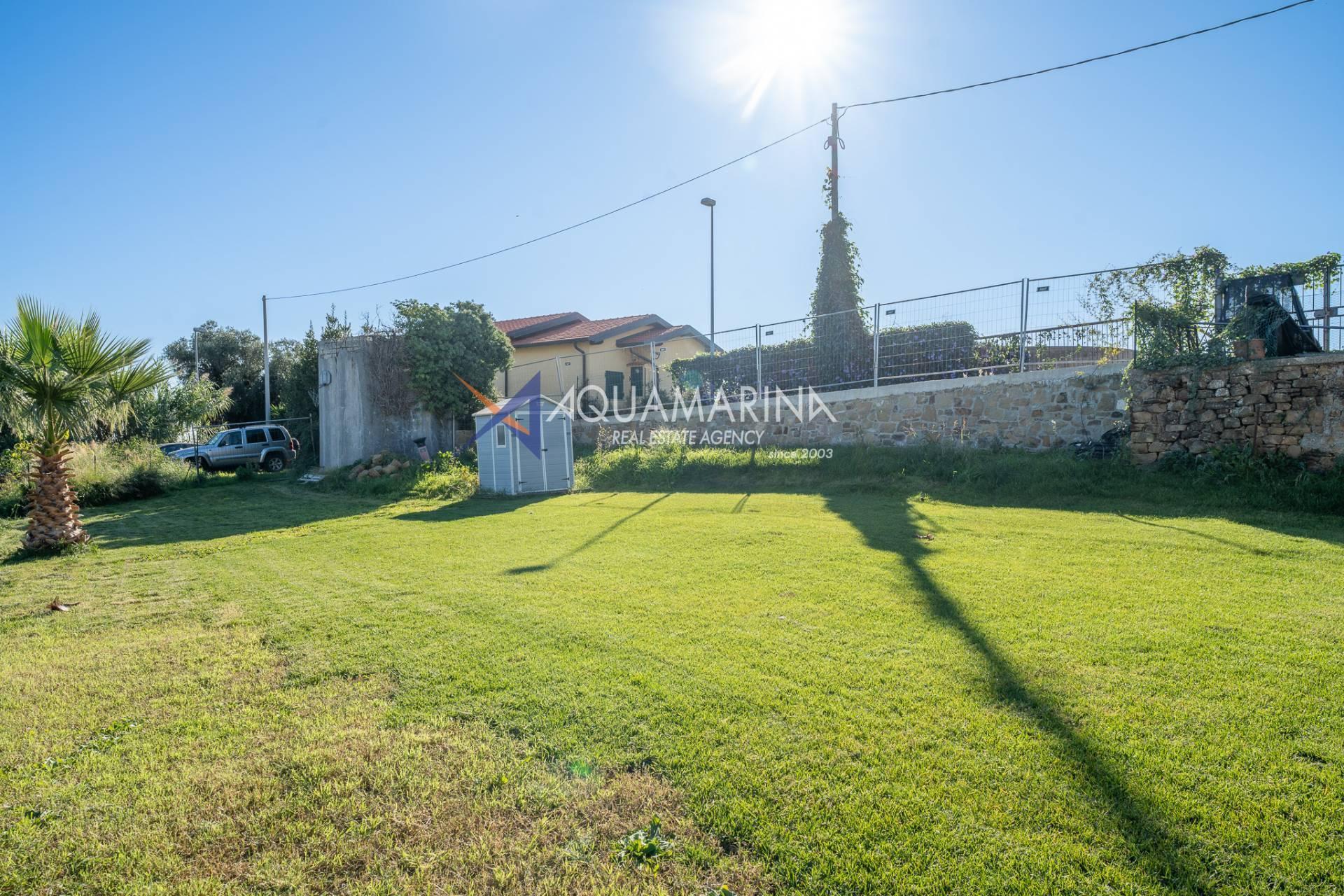 La propriété s'étend sur un terrain de 3000 m2, qui comprend un jardin entourant la maison, de nombreuses places de parking et la possibilité de créer une piscine privée avec vue mer.