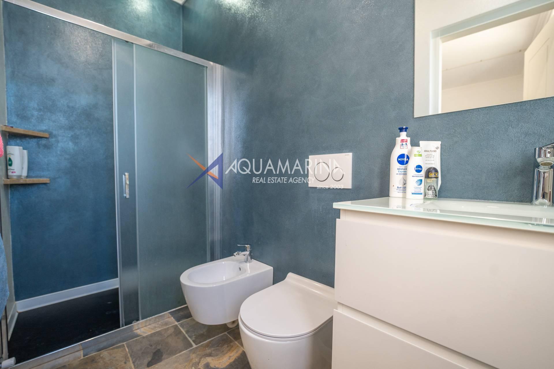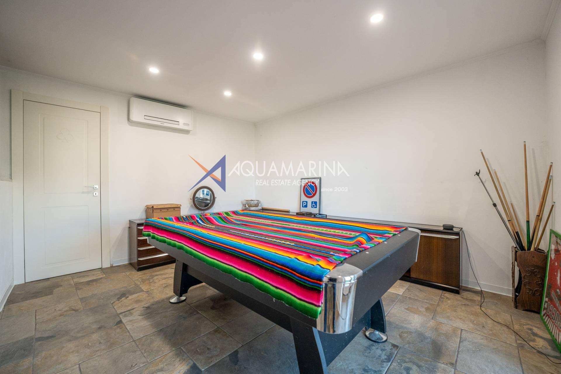 La propriété est sur deux niveaux et offre de grands espaces lumineux. Au rez-de-chaussée, nous trouvons un espace de vie accueillant, caractérisé par une grande véranda, une cuisine, une salle de bain confortable et une grande pièce actuellement utilisée comme salle de billard avec salle de bain privée. Le tout est immergé dans un vaste jardin panoramique surplombant la mer.