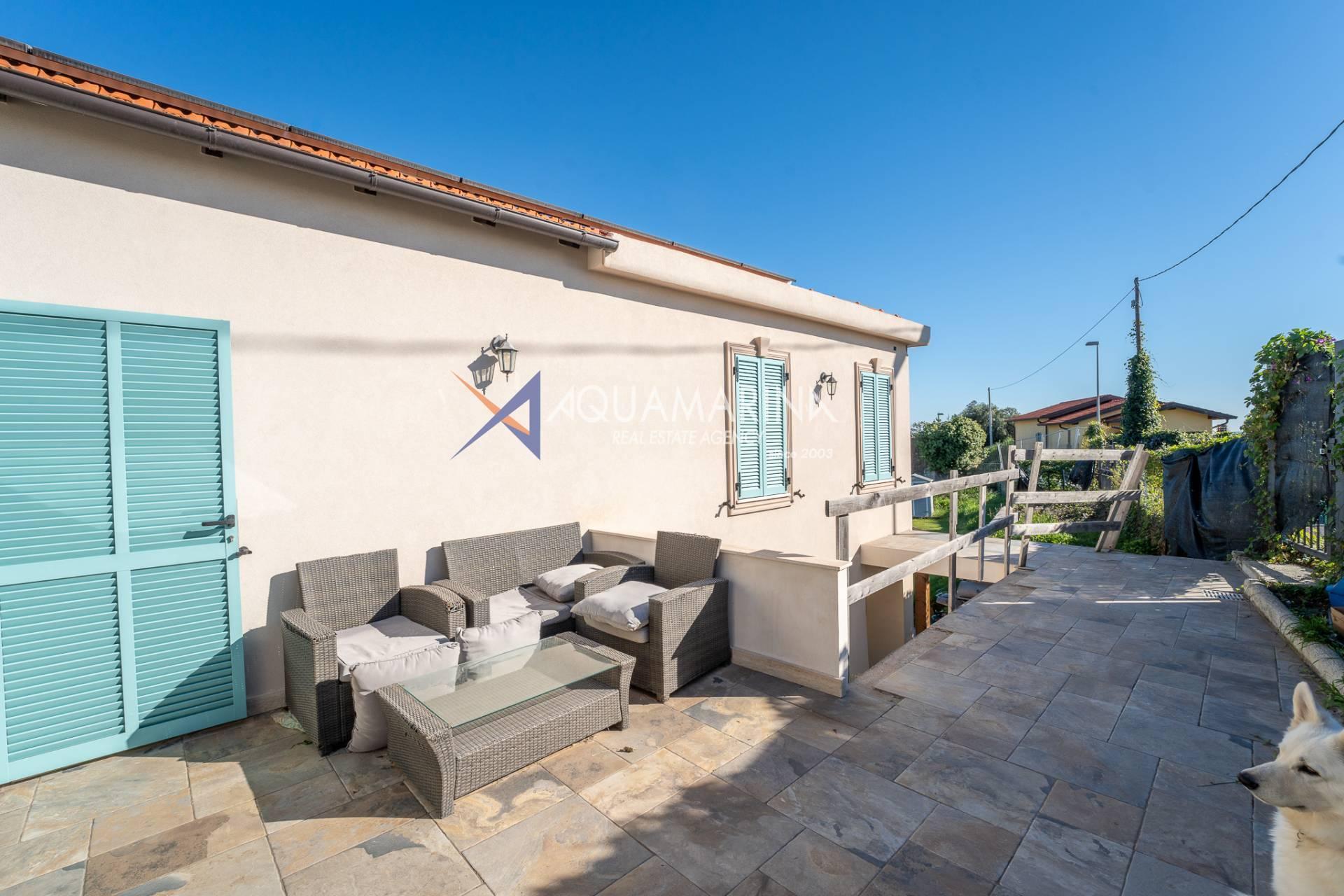 Sanremo, à quelques minutes du centre et des plages, nous proposons à la vente une maison individuelle nouvellement construite avec une vue mer imprenable.