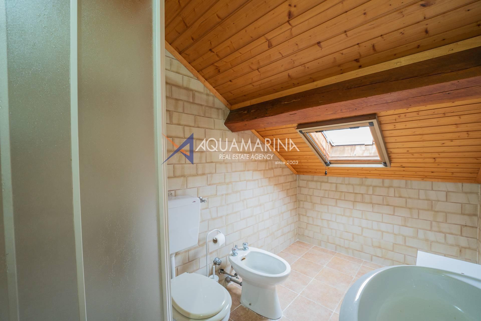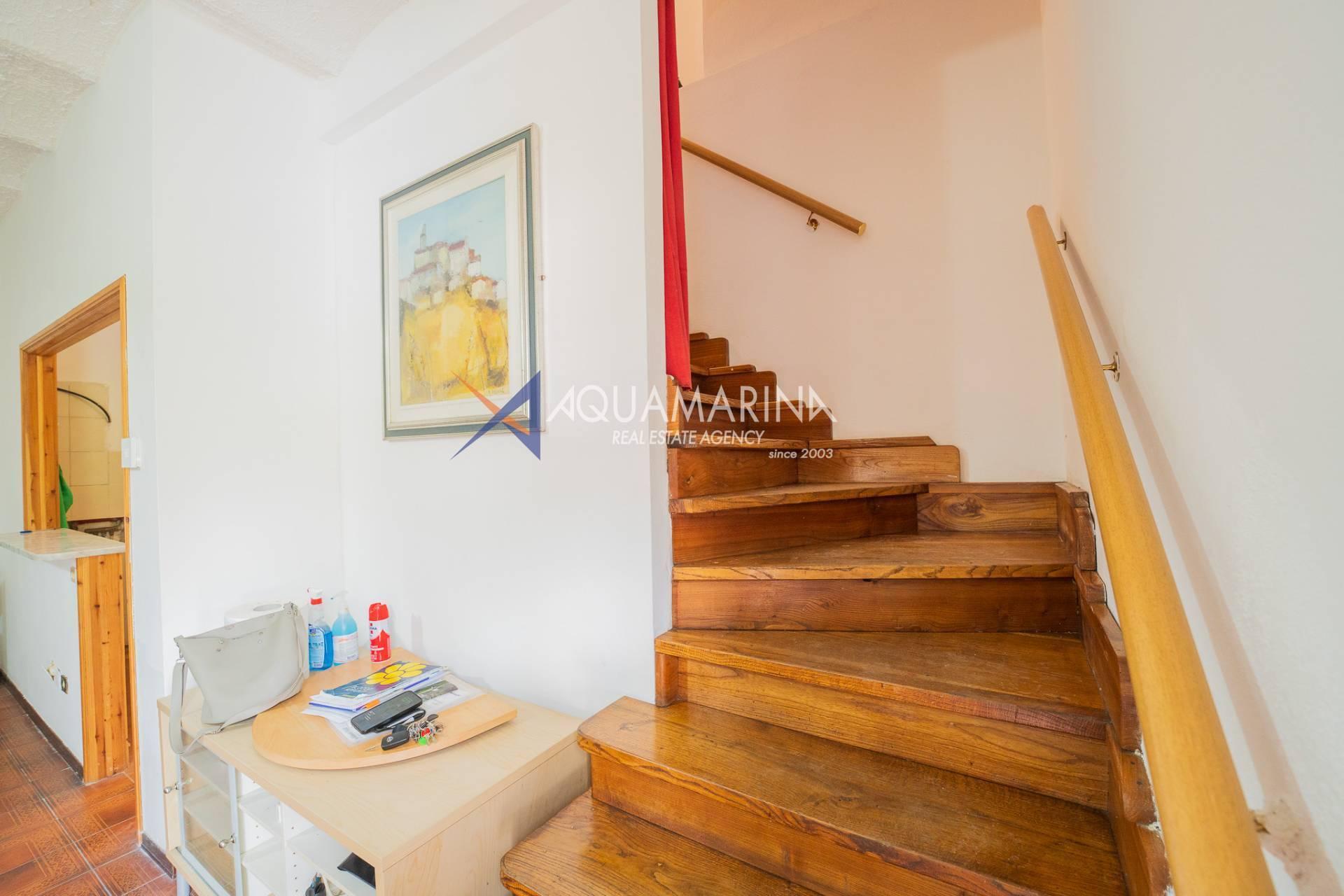 La propriété, répartie sur trois niveaux et d'une superficie de 150 mètres carrés, se compose au rez-de-chaussée d'un grand salon avec une cuisine ouverte donnant sur le jardin et une véranda extérieure; au premier étage, il y a une chambre principale et une chambre d'amis, toutes deux avec un accès direct à la terrasse, et une salle de bains avec une cabine de douche; au dernier étage, il y a une grande chambre mansardée avec une petite kitchenette et une salle de bains.