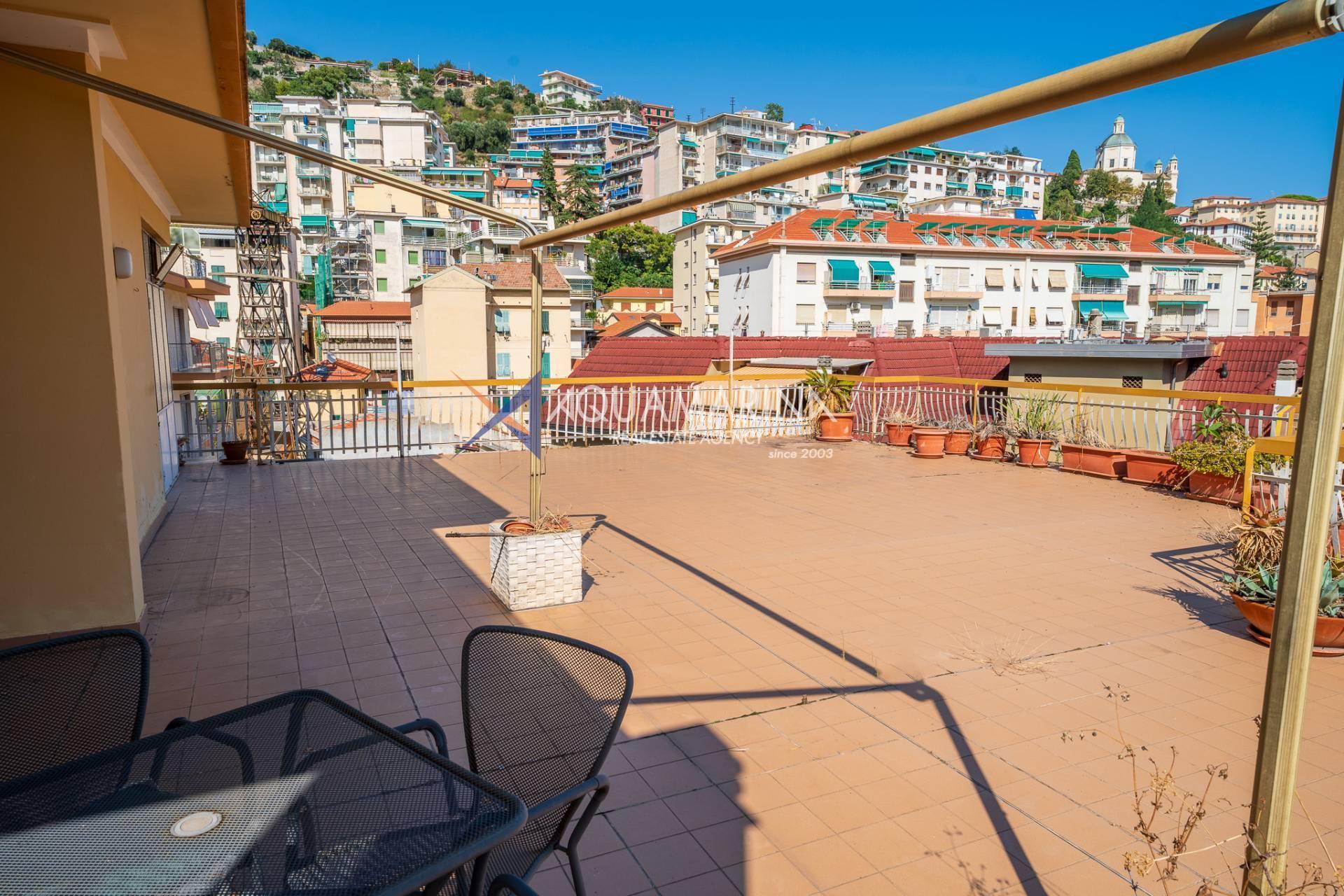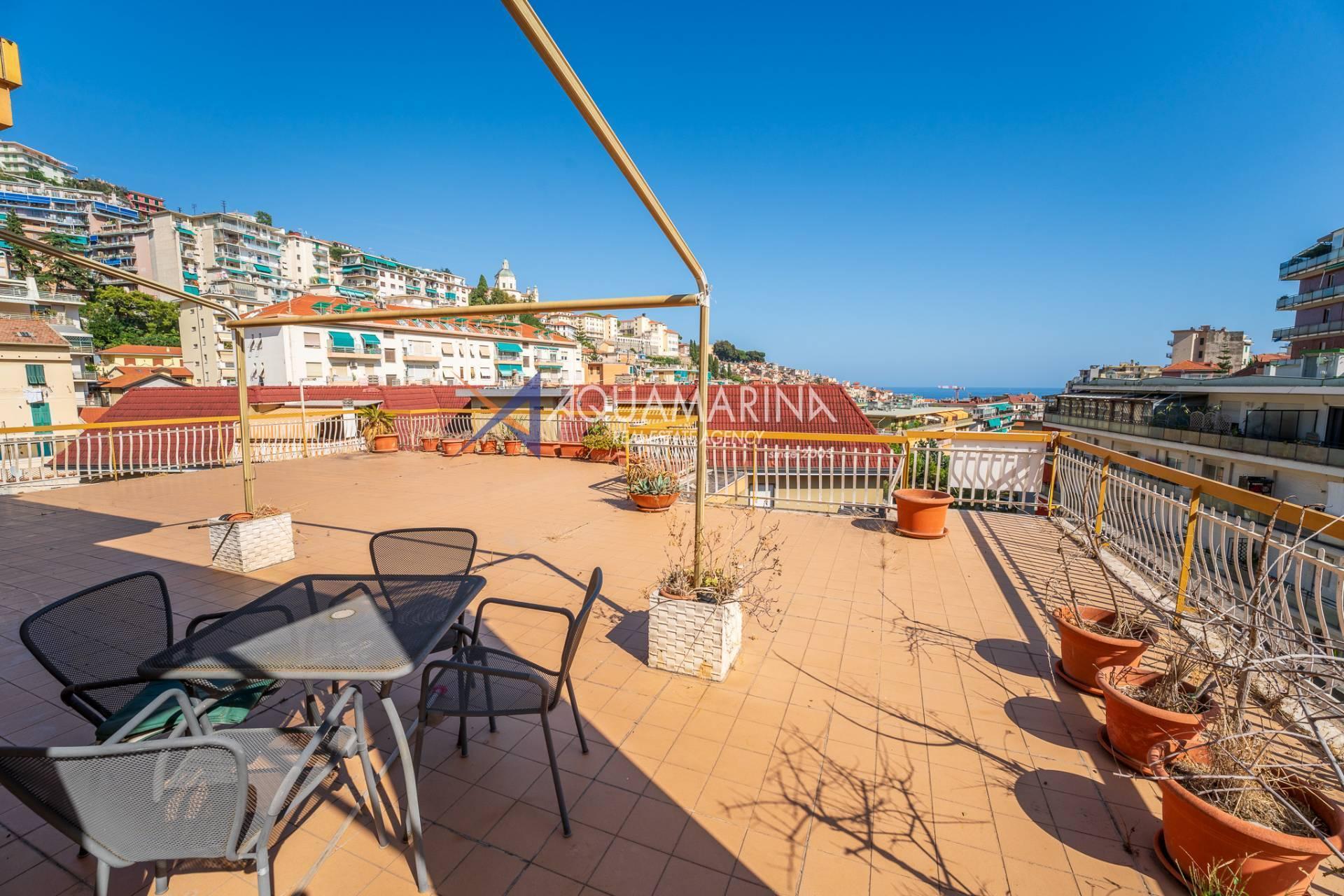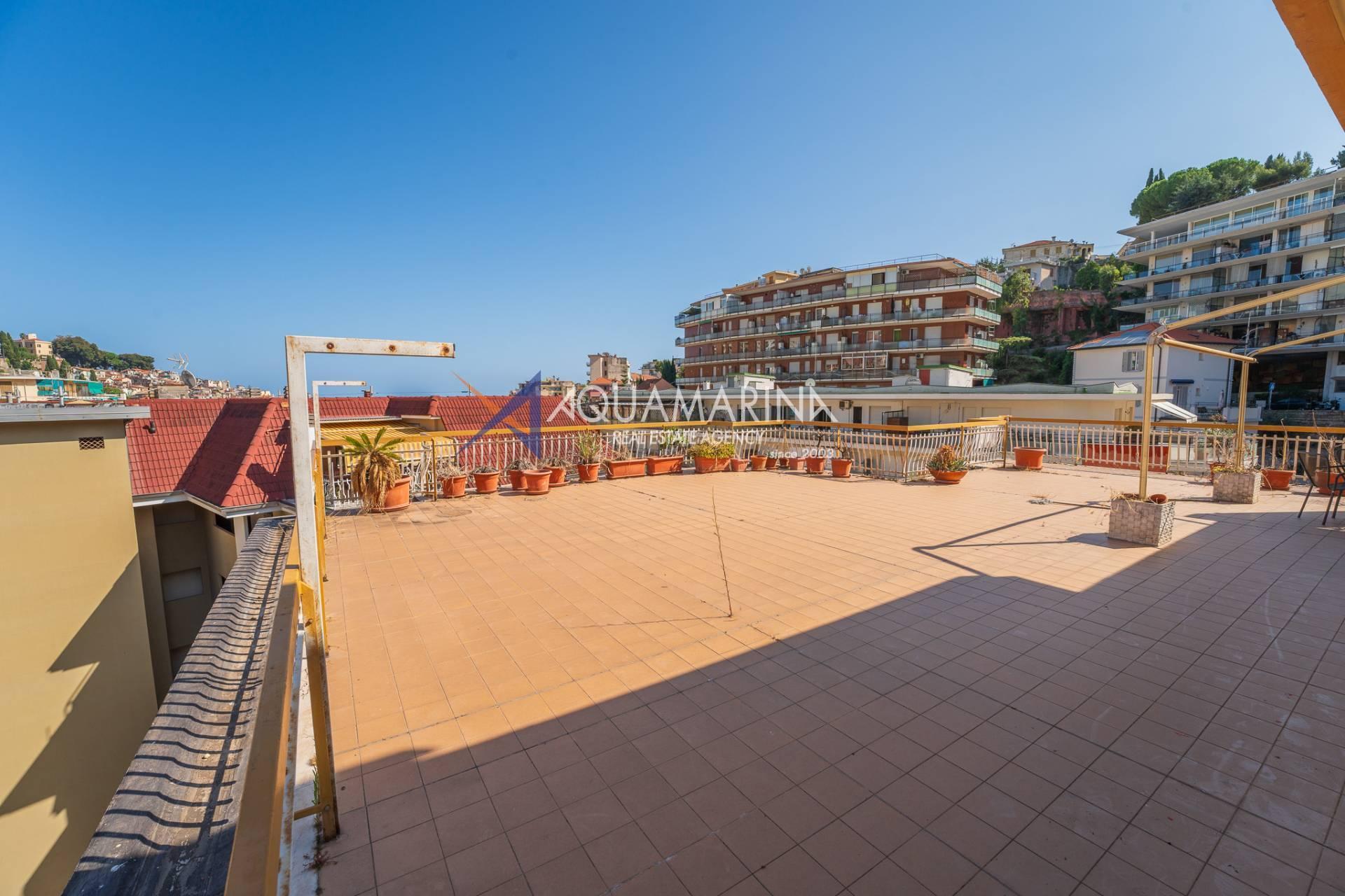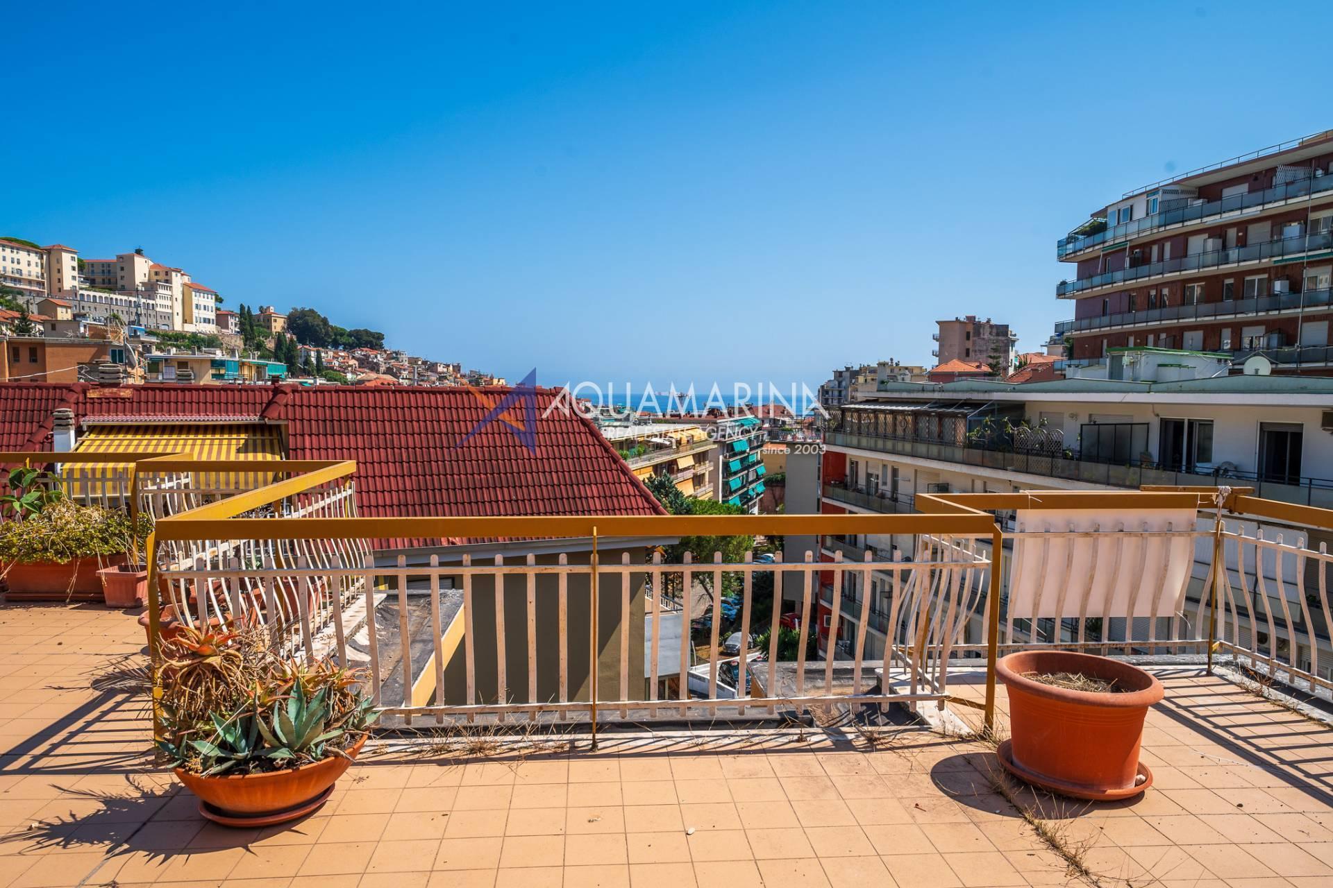Sanremo, à quelques minutes du centre-ville et des plages, nous proposons à la vente un vaste penthouse avec une magnifique terrasse vue mer.