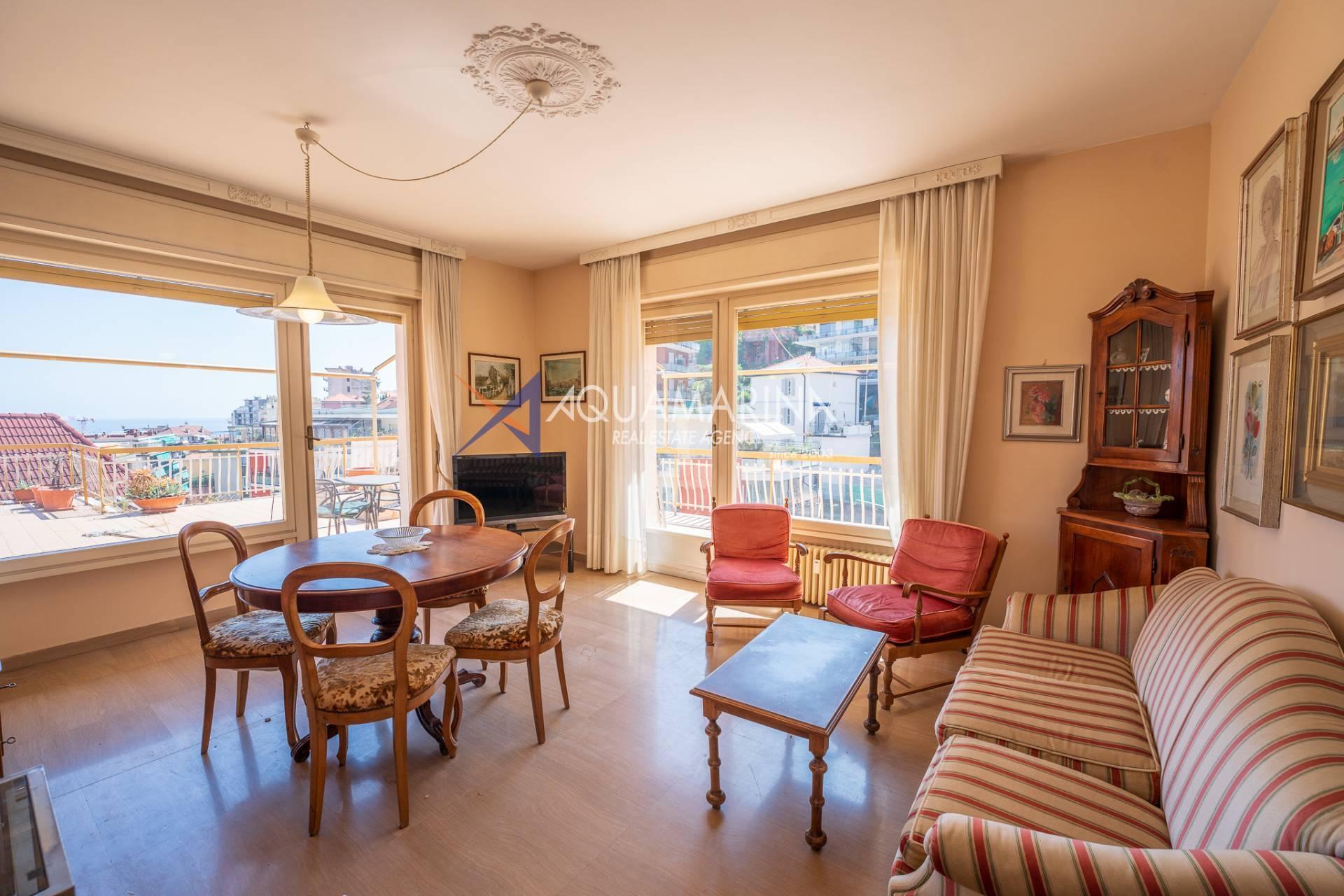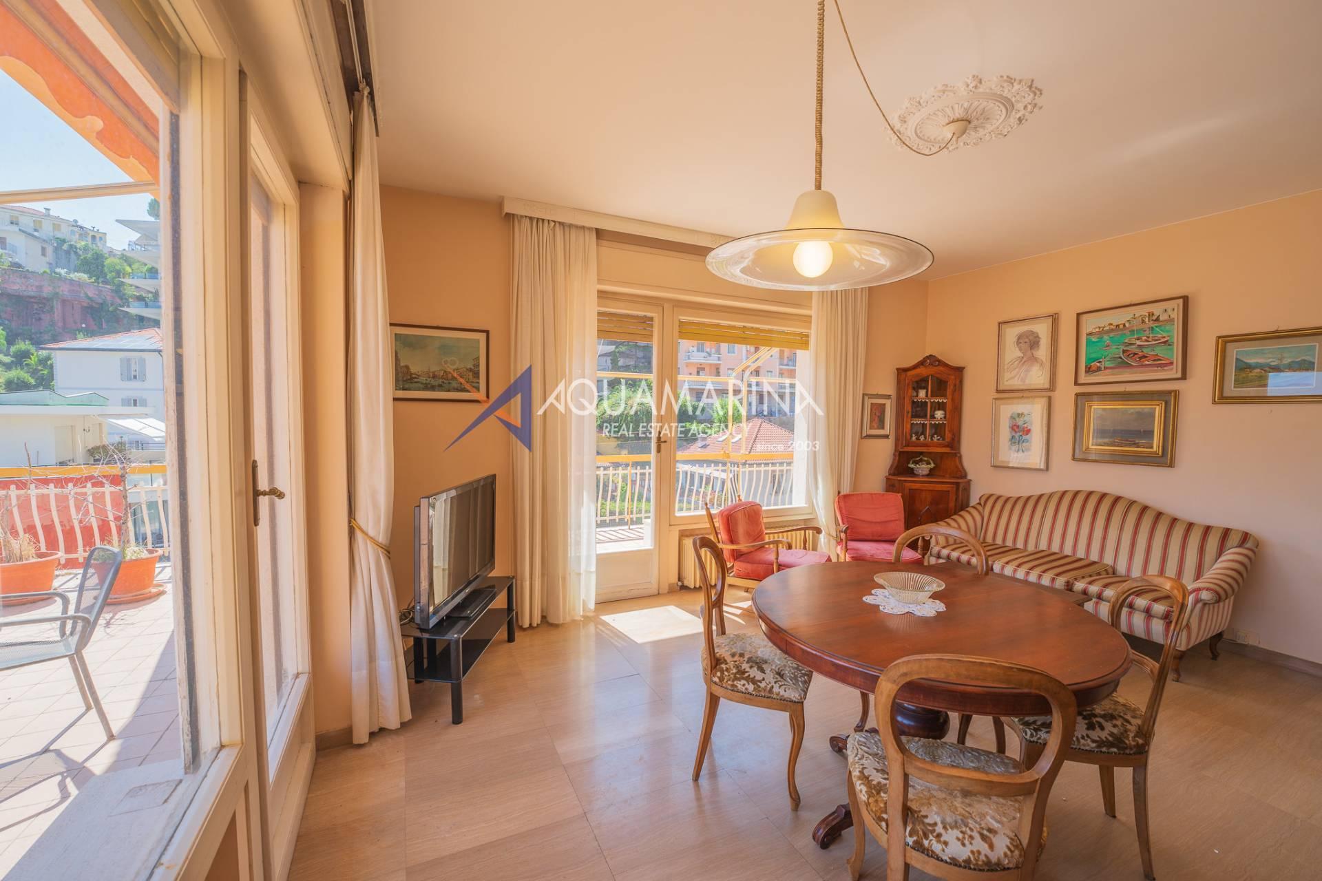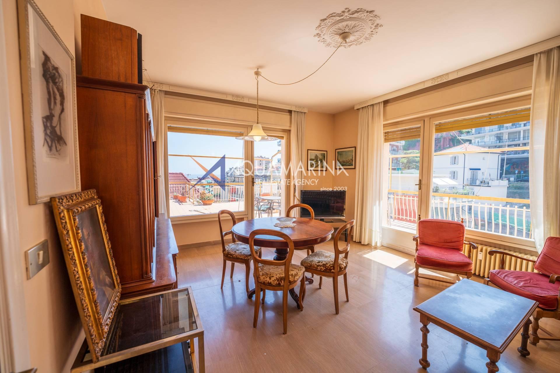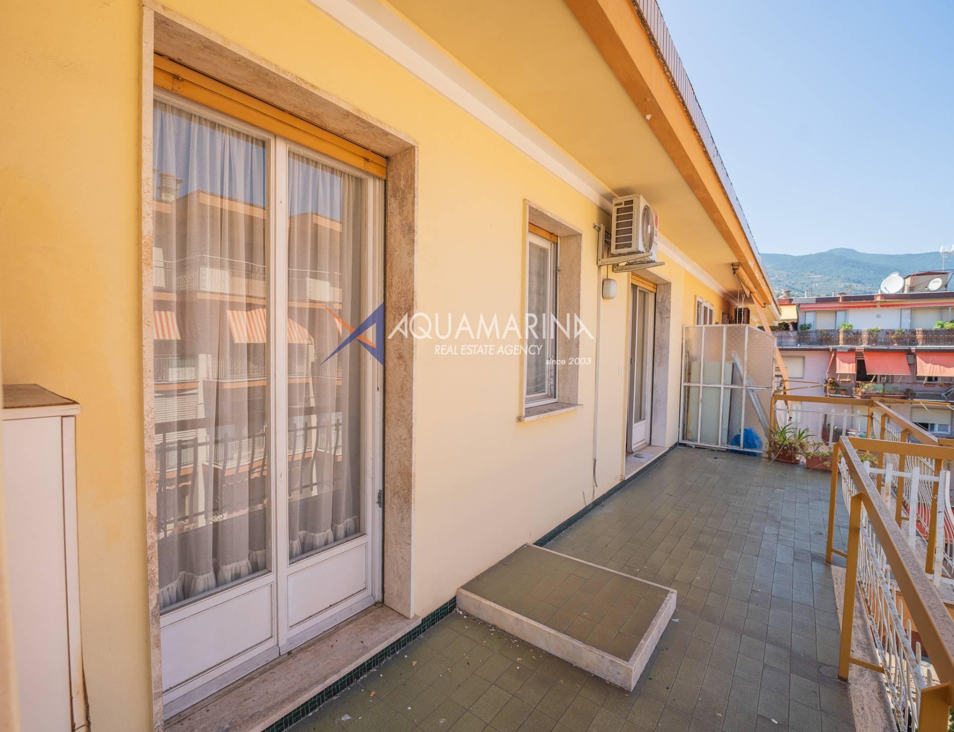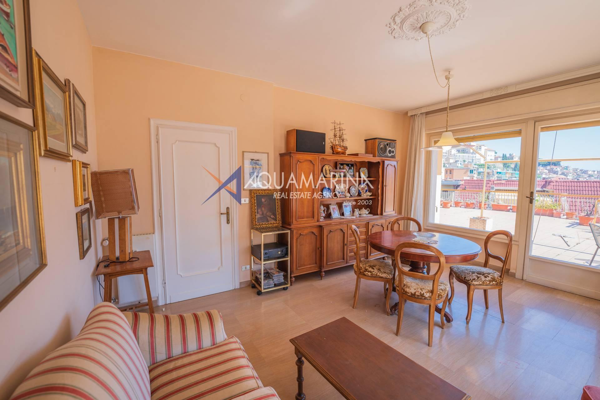 Sanremo, à quelques minutes du centre-ville et des plages, nous proposons à la vente un vaste penthouse avec une magnifique terrasse vue mer.
