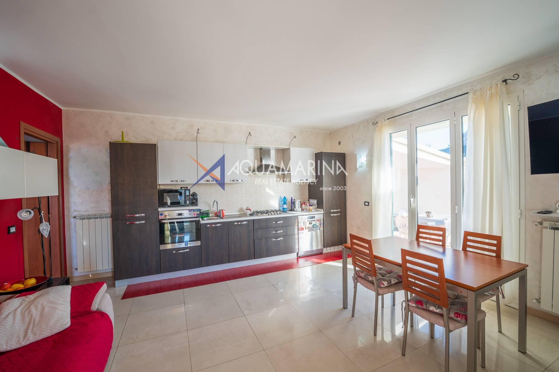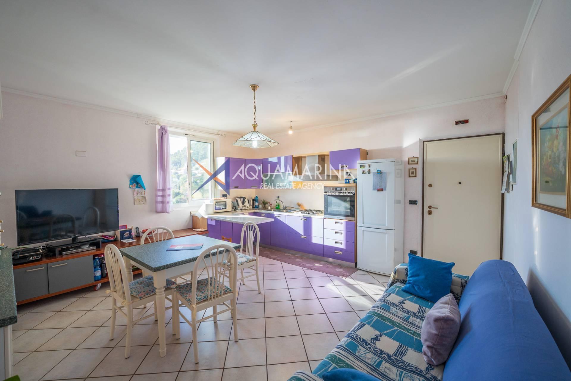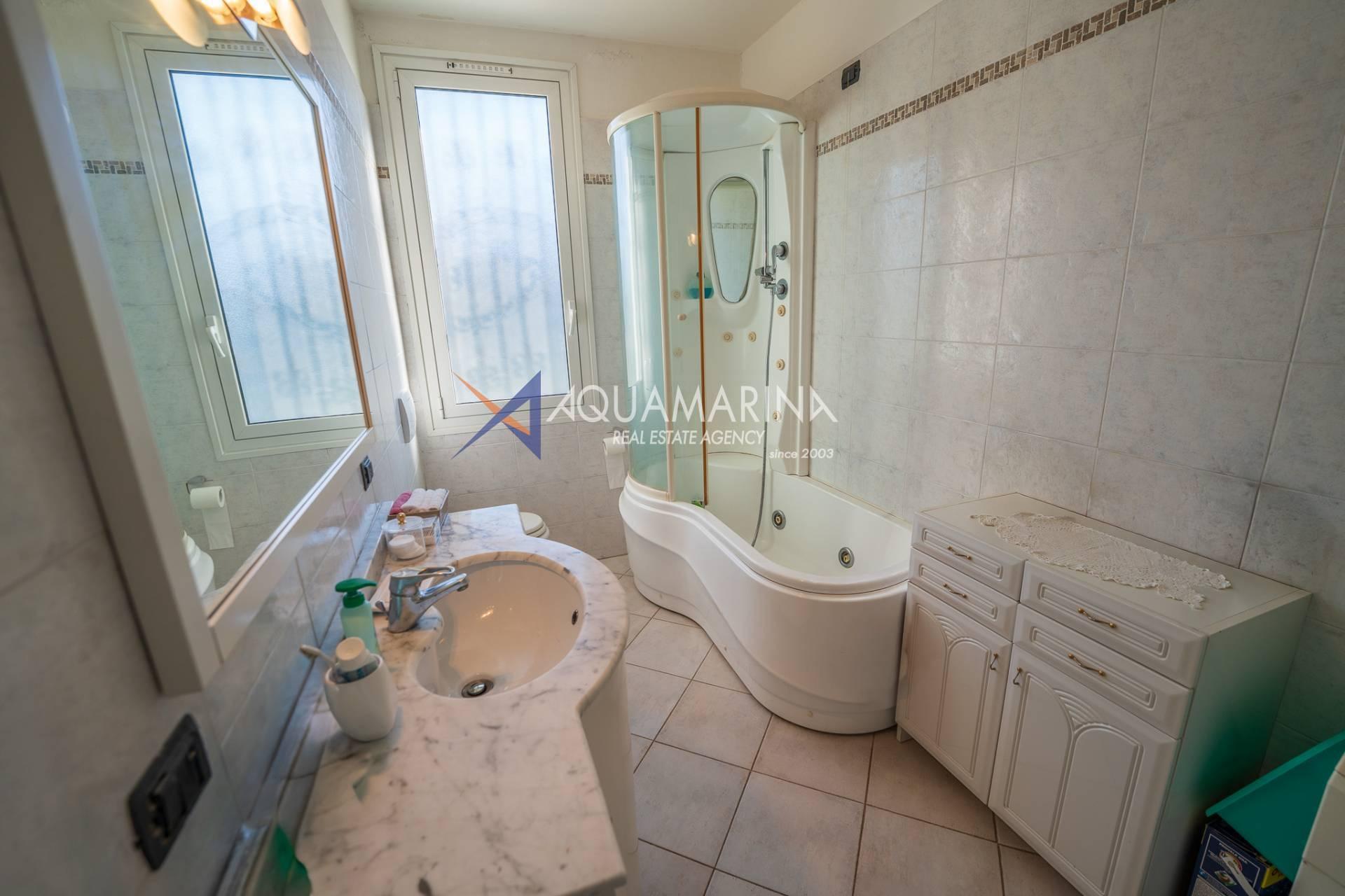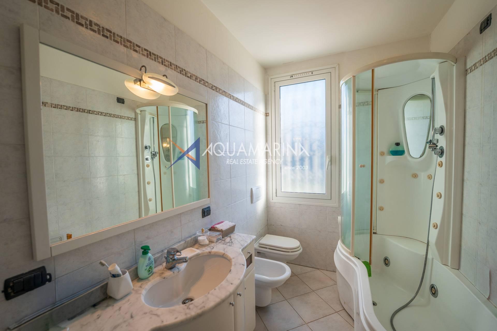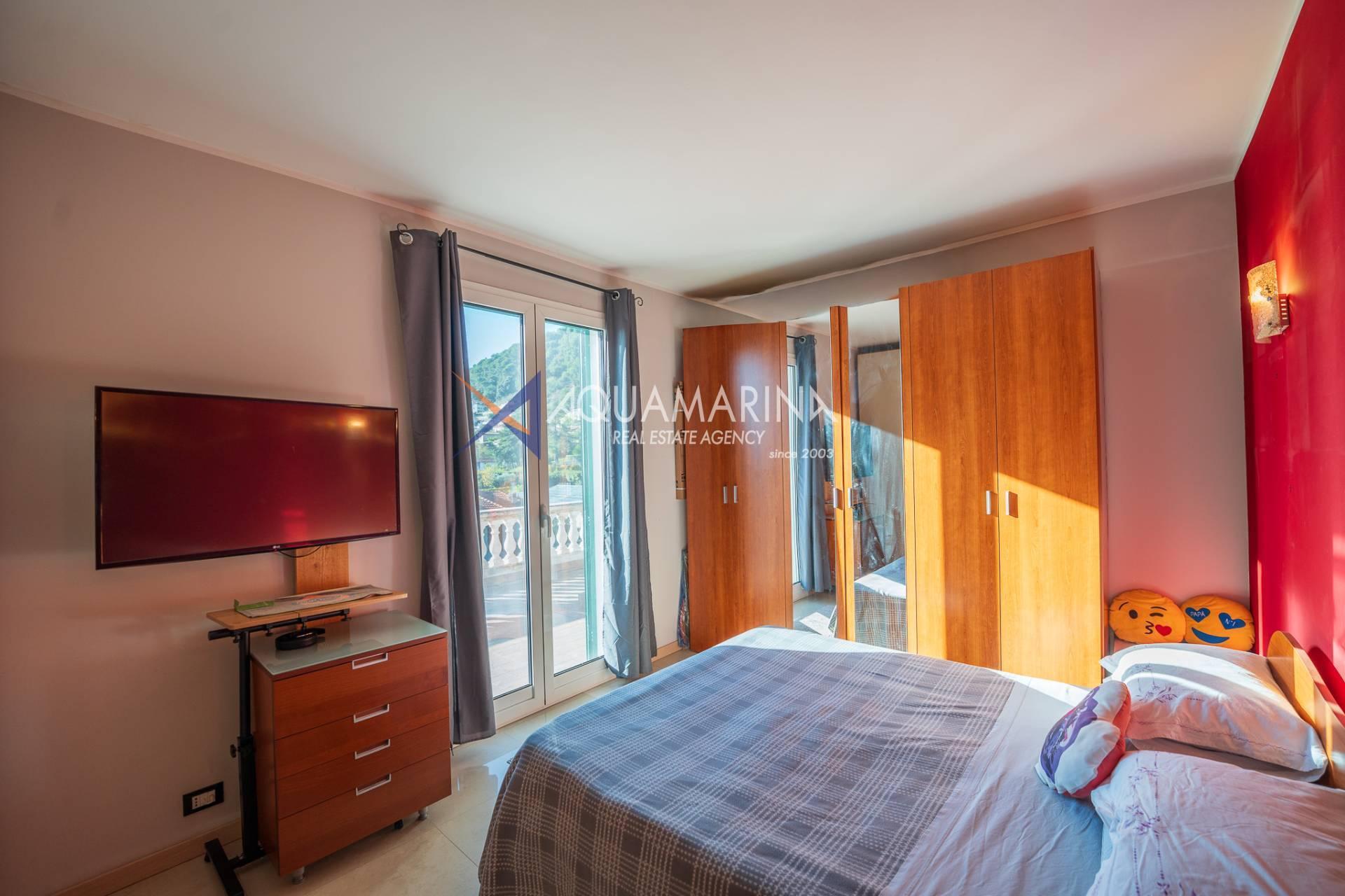 La villa est entourée d'un terrain d'environ 2 500 m², actuellement en partie utilisé comme potager, et de grandes terrasses à l'avant et sur les côtés offrant une vue splendide sur les montagnes et la mer.