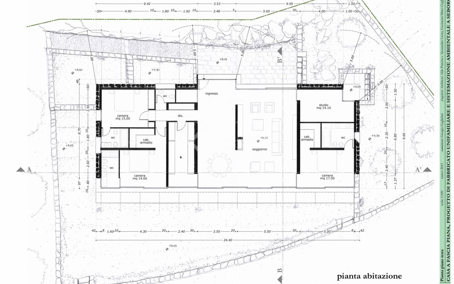 Seborga, sur la colline de Bordighera, nous vous offrons à la vente terrain de 2724mq avec le projet approuvé pour construire une villa sur un seul étage de 220 m² avec jardin et piscine