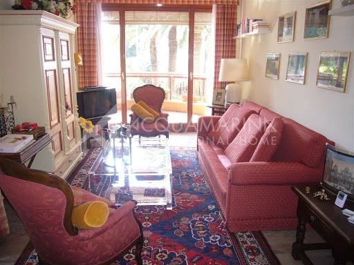 L'appartement, faisant partie d'un complexe avec concierge, se compose de : hall d'entrée, grand séjour, cuisine, deux chambres, petit bureau, deux salles de bains.