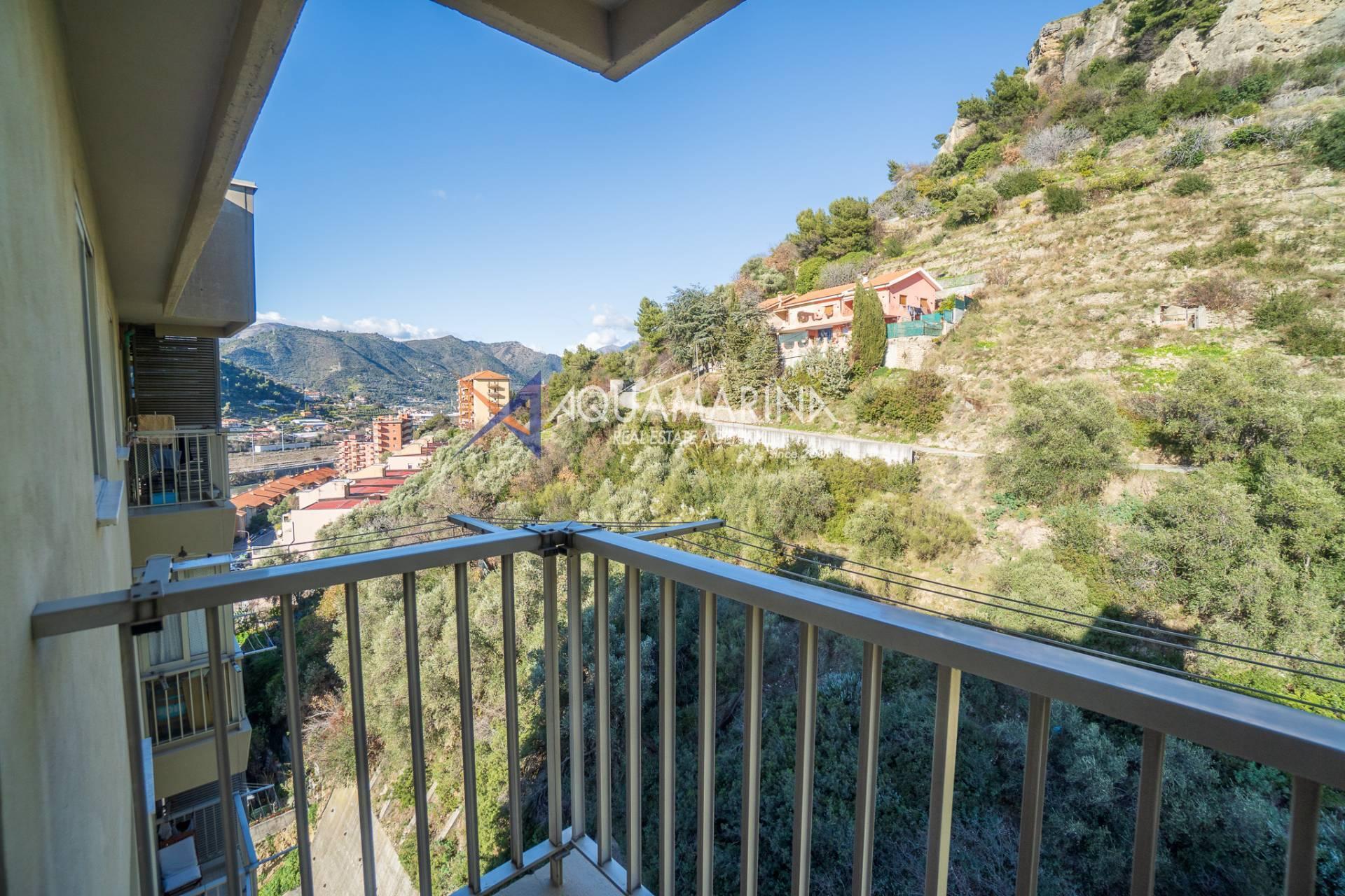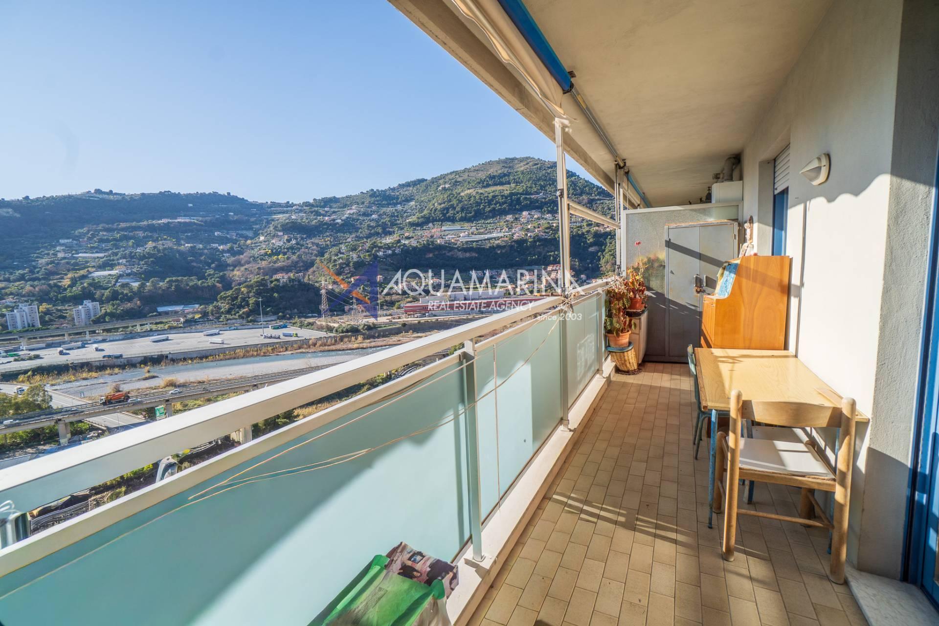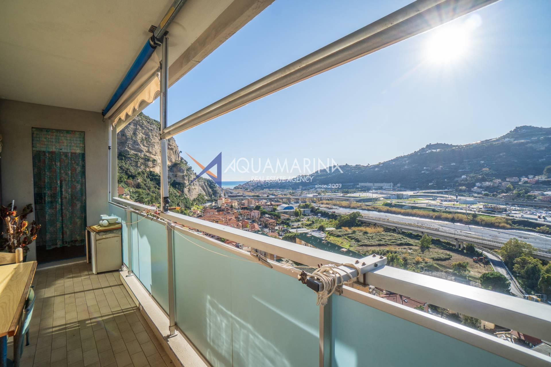 Ce bien bénéficie d'une excellente luminosité naturelle et est équipé d'un chauffage individuel. Il comprend un hall d'entrée spacieux, un séjour avec une grande fenêtre donnant accès à un balcon offrant une vue imprenable sur les montagnes et la mer, une cuisine ouverte, deux chambres spacieuses, chacune avec accès à un balcon, et une grande salle de bains.