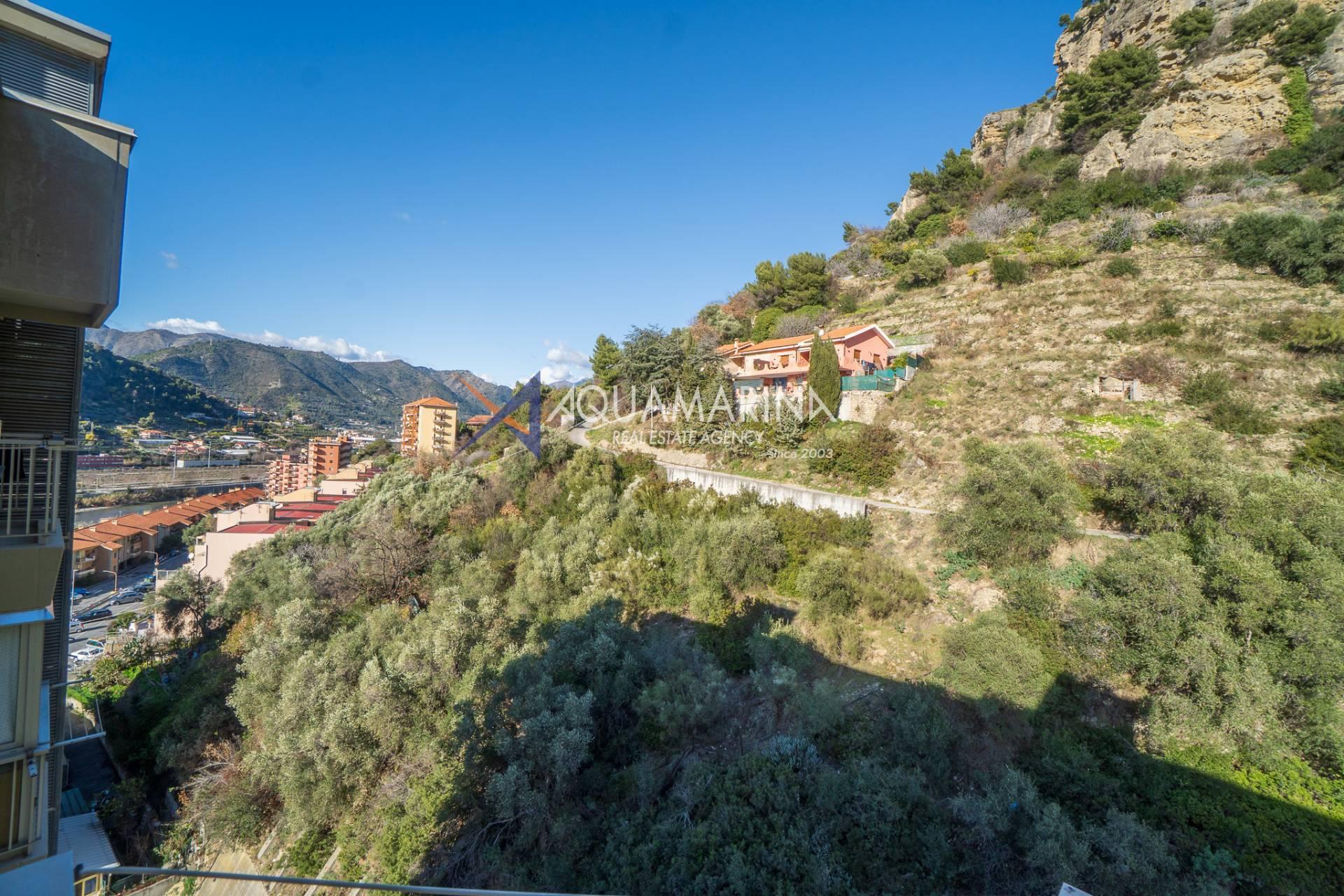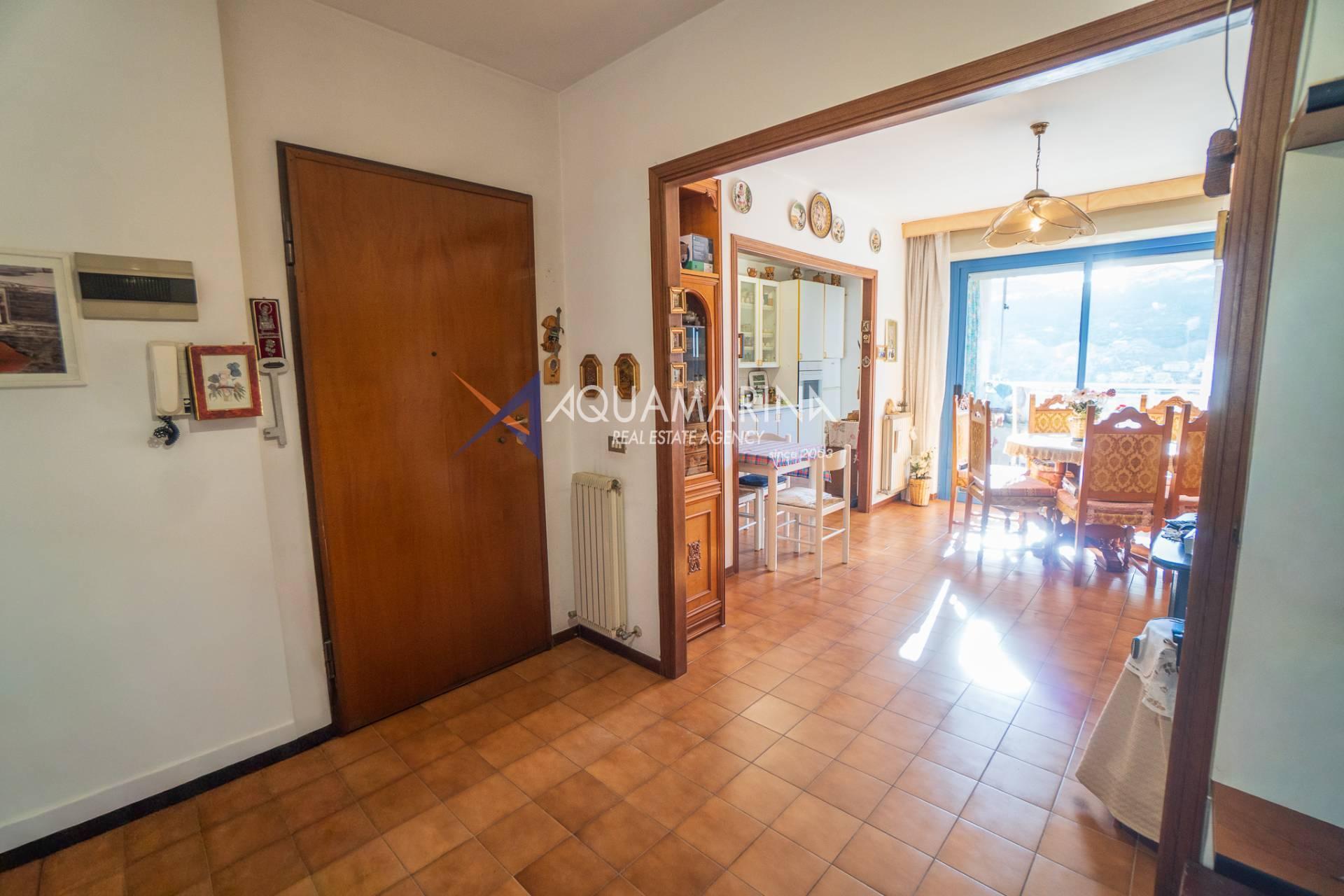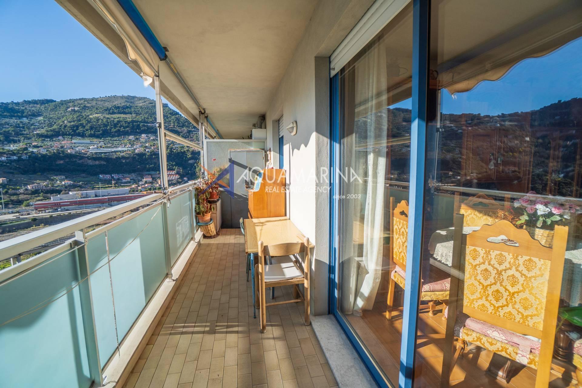 Ce bien bénéficie d'une excellente luminosité naturelle et est équipé d'un chauffage individuel. Il comprend un hall d'entrée spacieux, un séjour avec une grande fenêtre donnant accès à un balcon offrant une vue imprenable sur les montagnes et la mer, une cuisine ouverte, deux chambres spacieuses, chacune avec accès à un balcon, et une grande salle de bains.