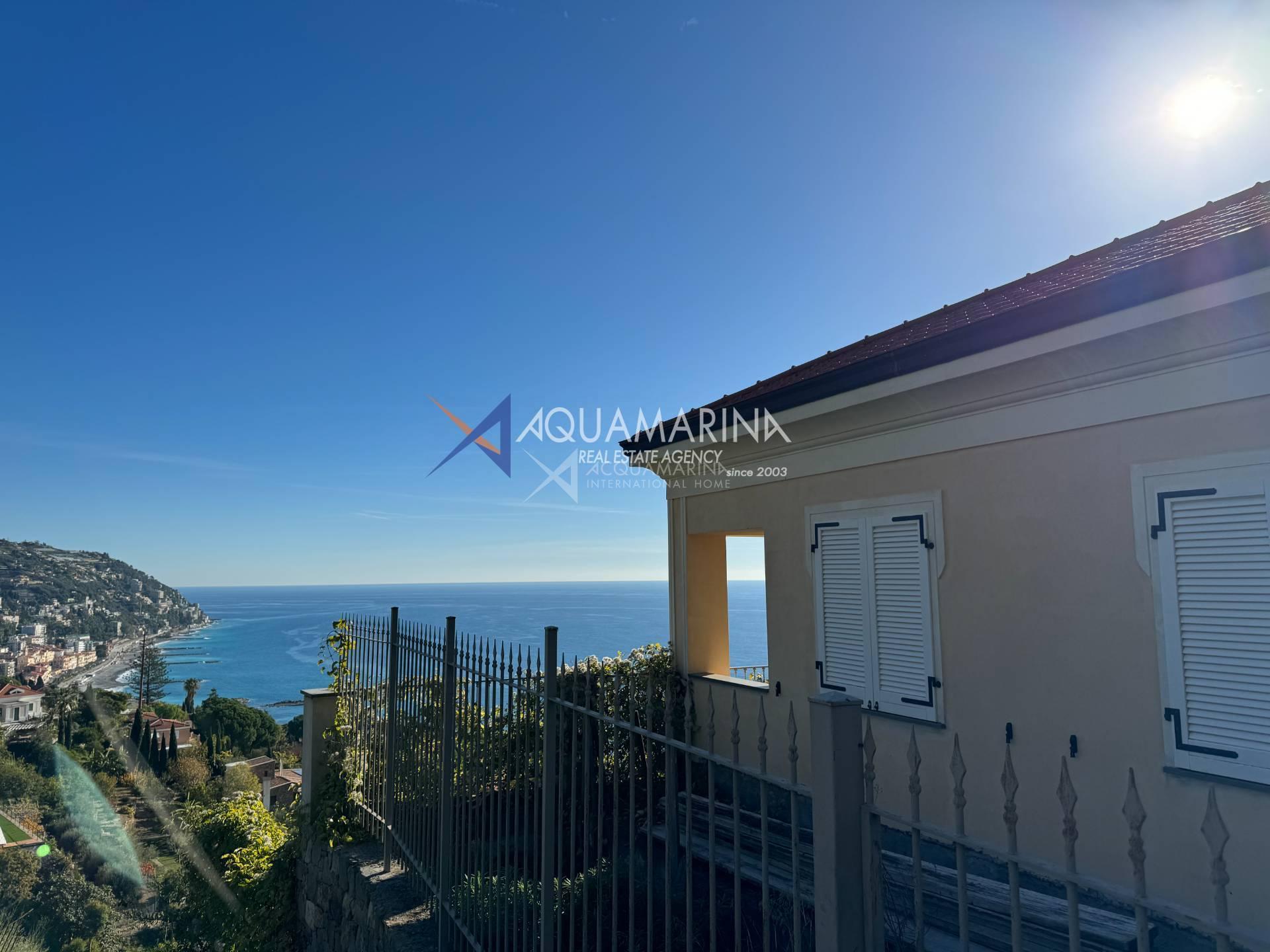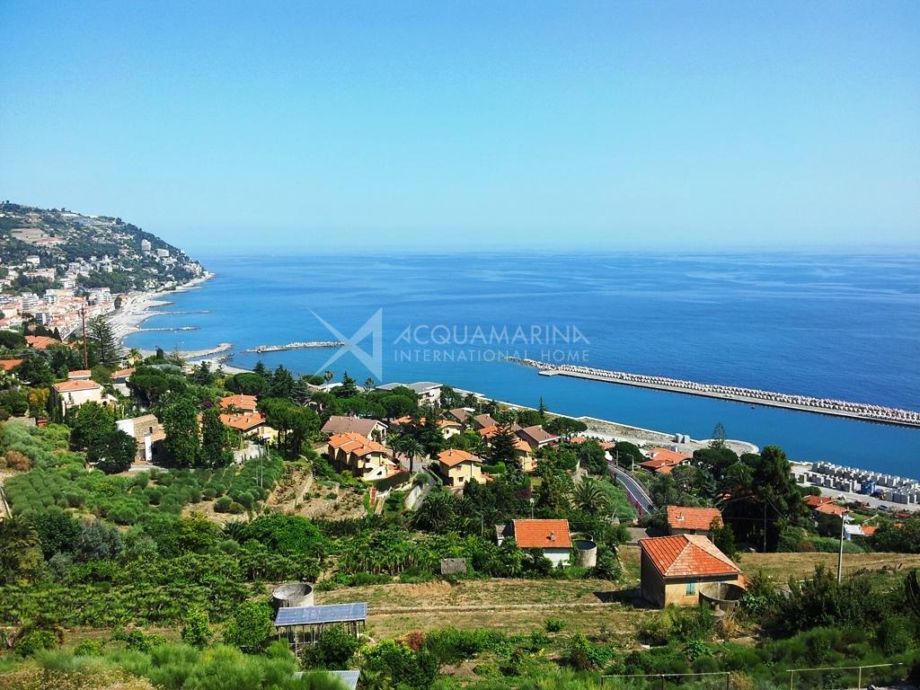 Ospedaletti, nous vous proposons une splendide villa avec une vue mer enchanteresse à 180 degrés sur le golfe entourée d'environ 600m2 de jardin en bandes.