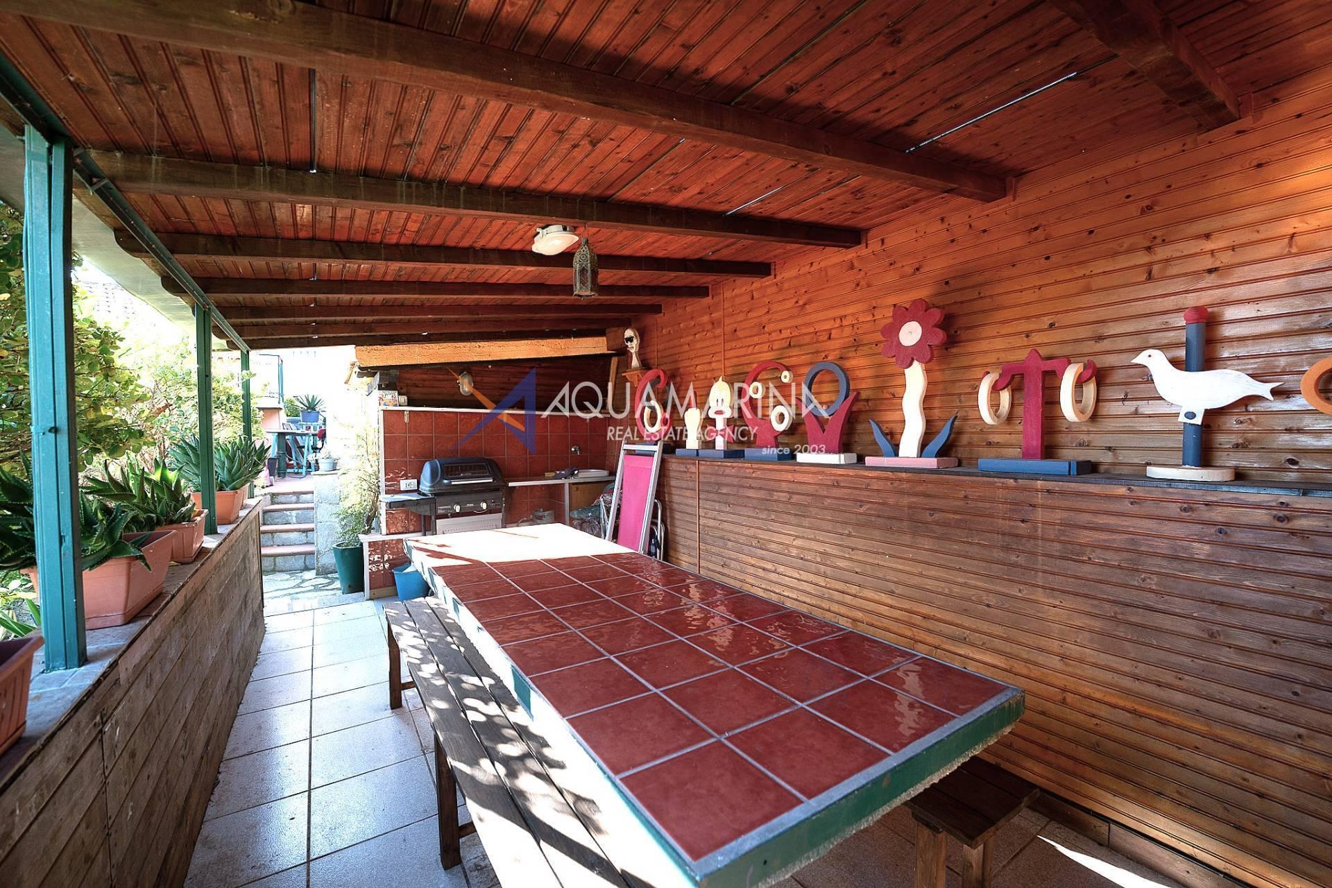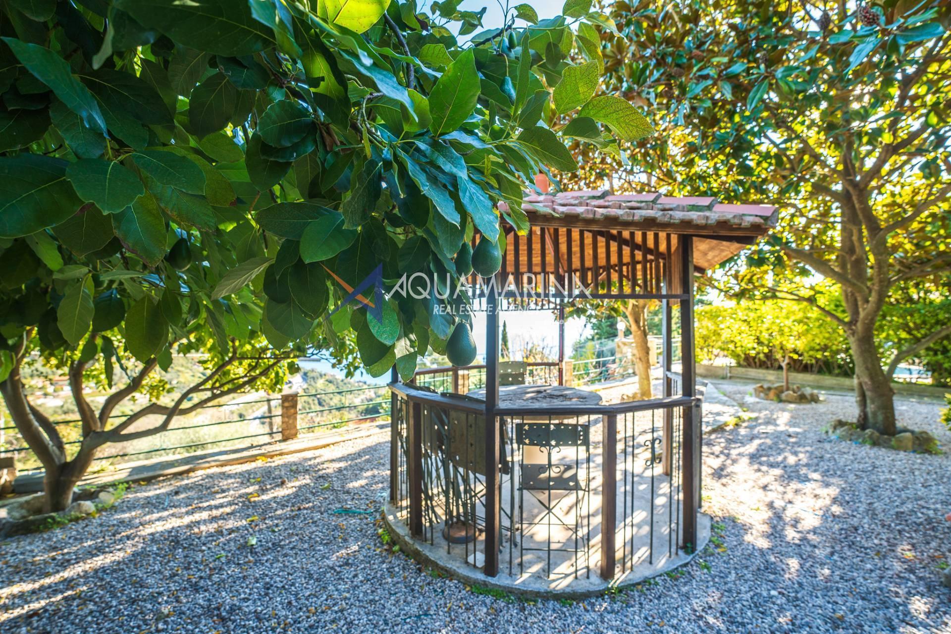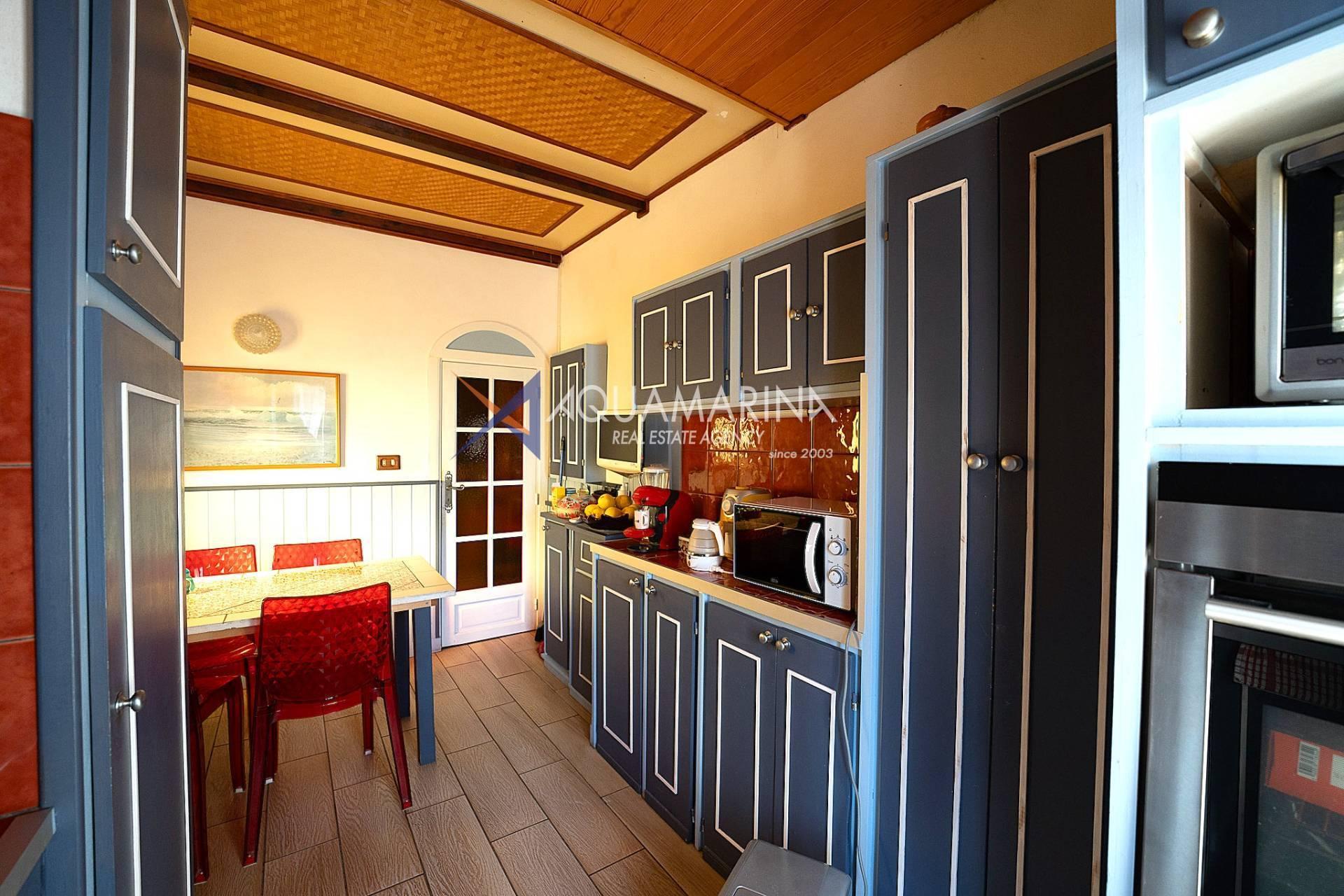La véranda pergola où se trouve la cuisine d'été est également suggestive et vous pourrez accueillir amis et parents pendant l'été tout en profitant de la belle vue sur la piscine et la mer.