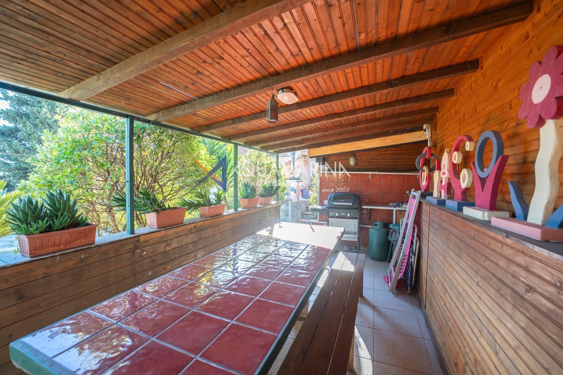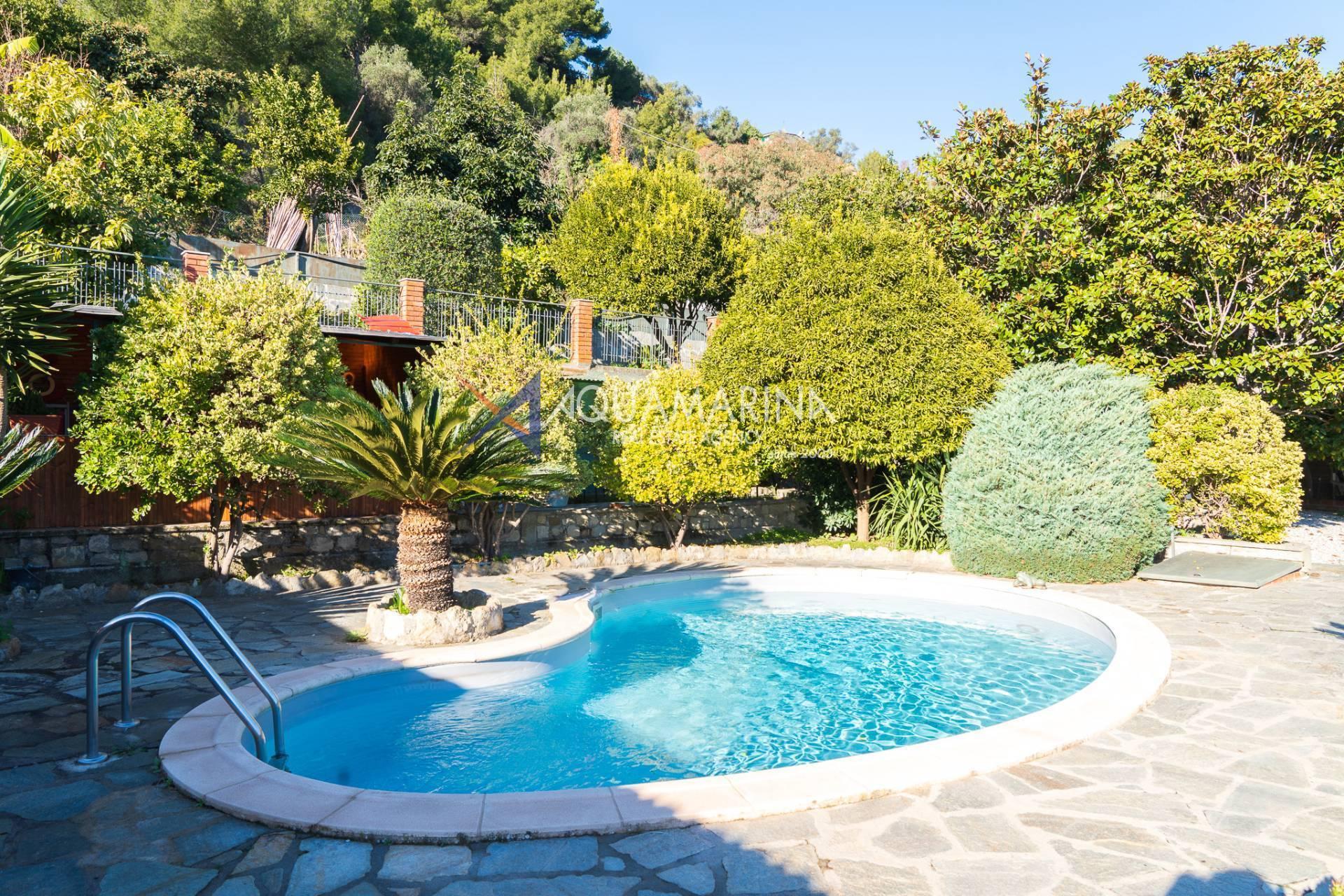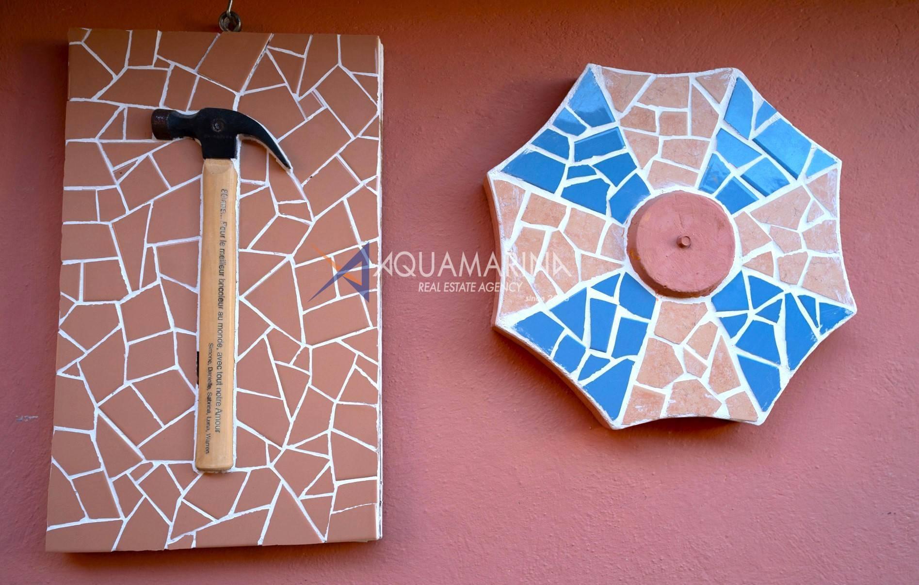 La véranda pergola où se trouve la cuisine d'été est également suggestive et vous pourrez accueillir amis et parents pendant l'été tout en profitant de la belle vue sur la piscine et la mer.