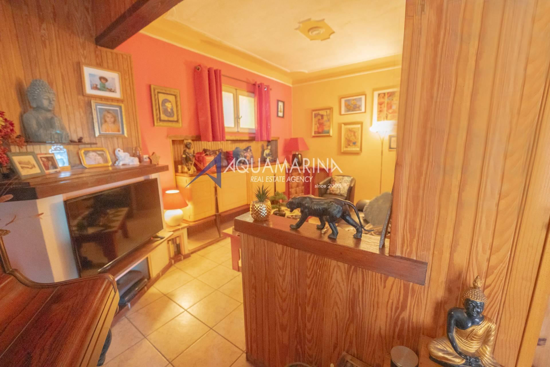 La propriété, d'environ 80 m2, est entièrement aménagée de plain-pied et se compose d'une entrée sur séjour, cuisine donnant sur la terrasse avec vue sur la mer, chambre double, chambre simple, salle de bain complète, buanderie avec douche.