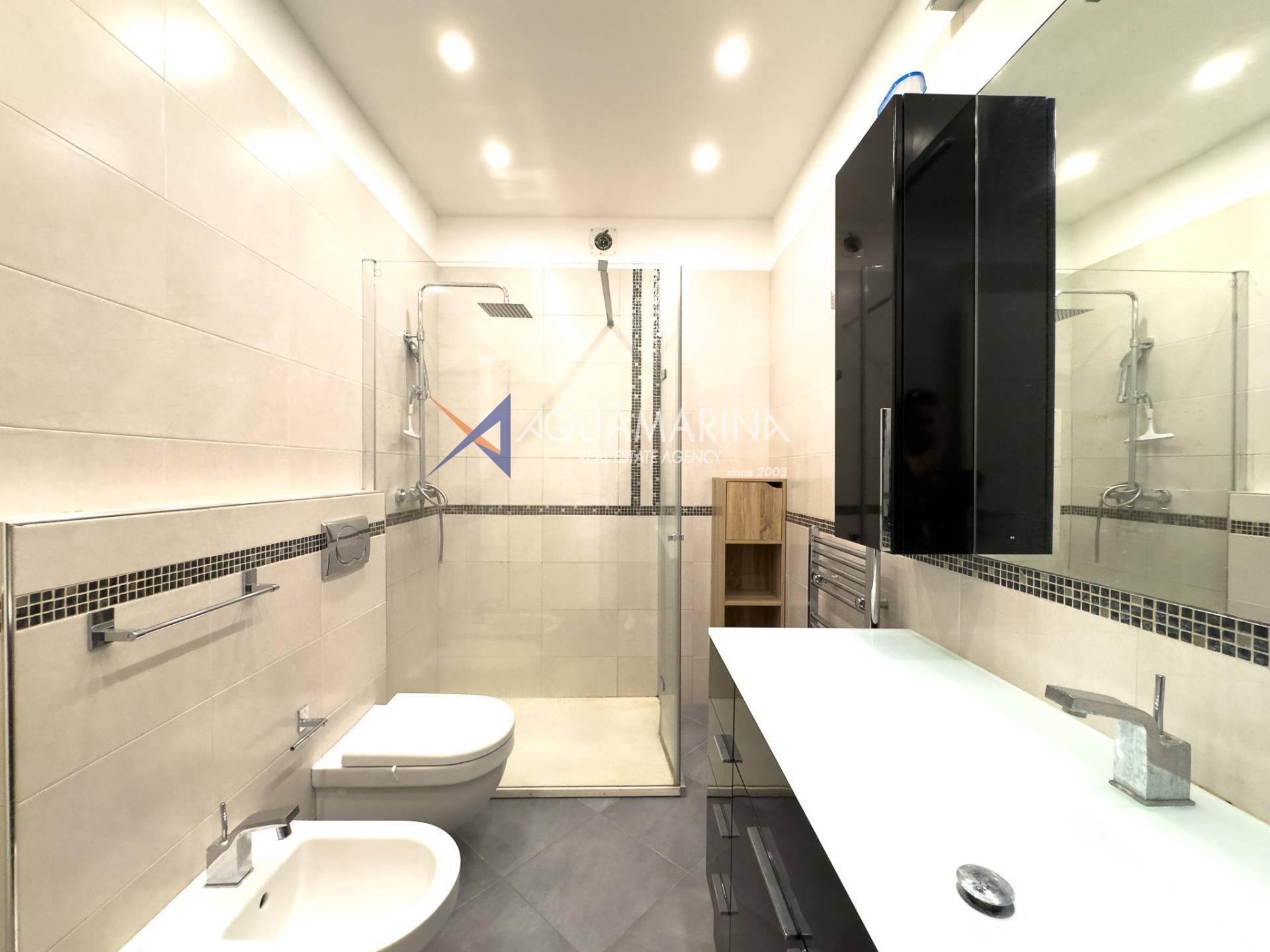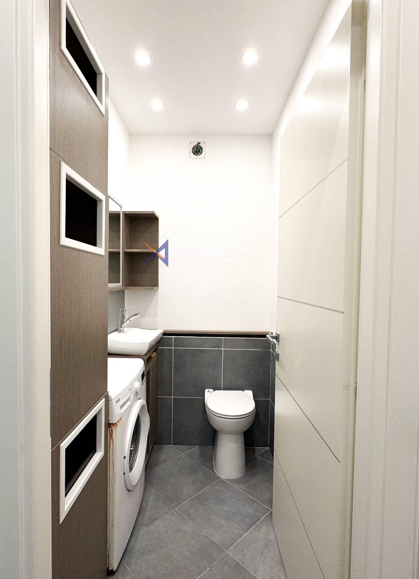 La propriété est entièrement rénovée, équipée de deux chambres, deux salles de bains et un séjour lumineux, terrasse avec vue mer, balcon avec vue panoramique sur la montagne.