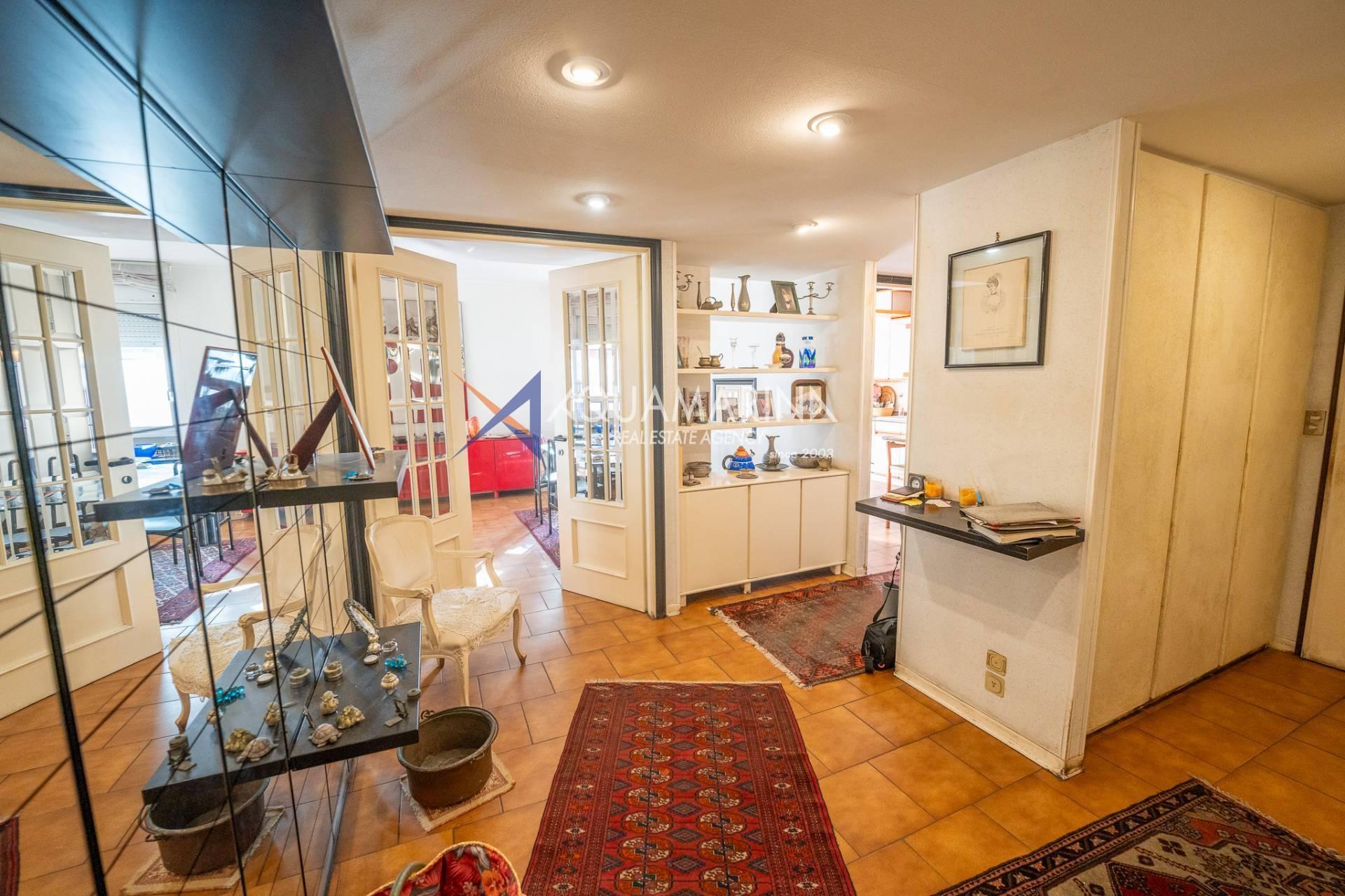L'appartement, en état d'origine, se compose d'un grand hall d'entrée avec placards intégrés confortables, cuisine dînatoire avec balcon, double séjour avec cheminée et accès à un autre balcon périphérique, trois chambres, placard et deux salles de bains.